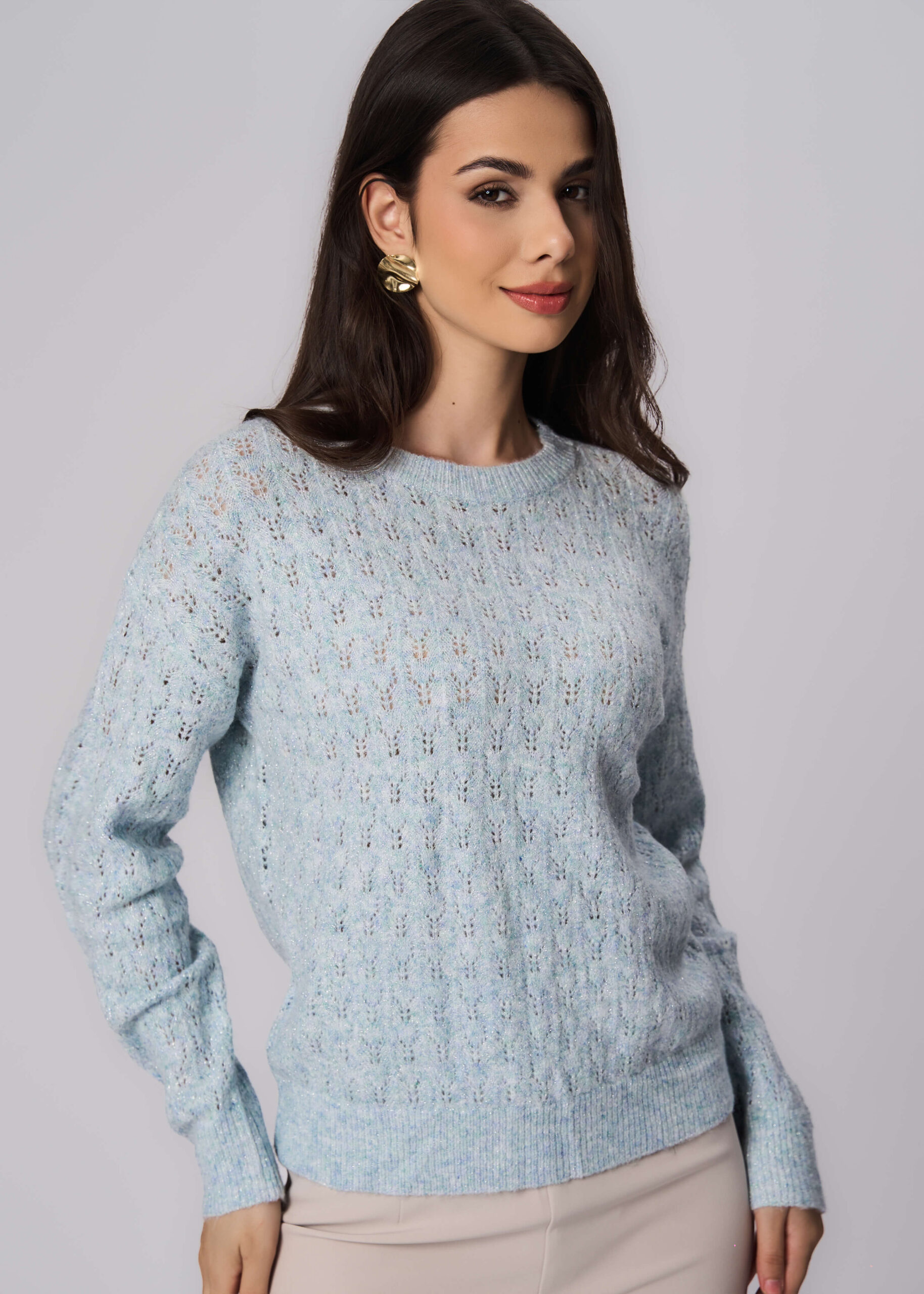 Women blouse, knitted fabric, patterned, round neck, long sleeves, unique and modern