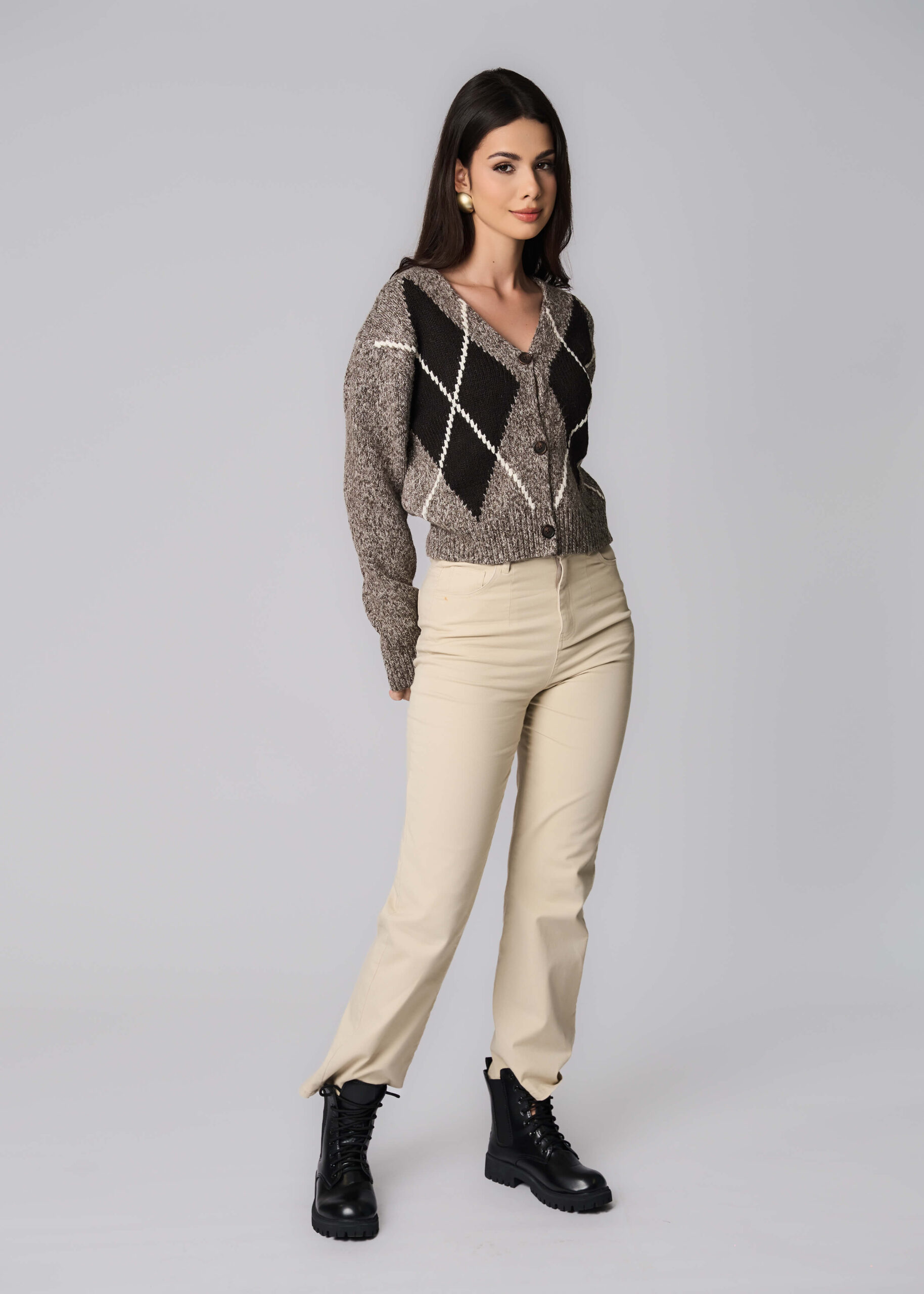 Women jacket, knitted fabric, patterned, V neck, front buttons to close, long sleeves, warm and unique