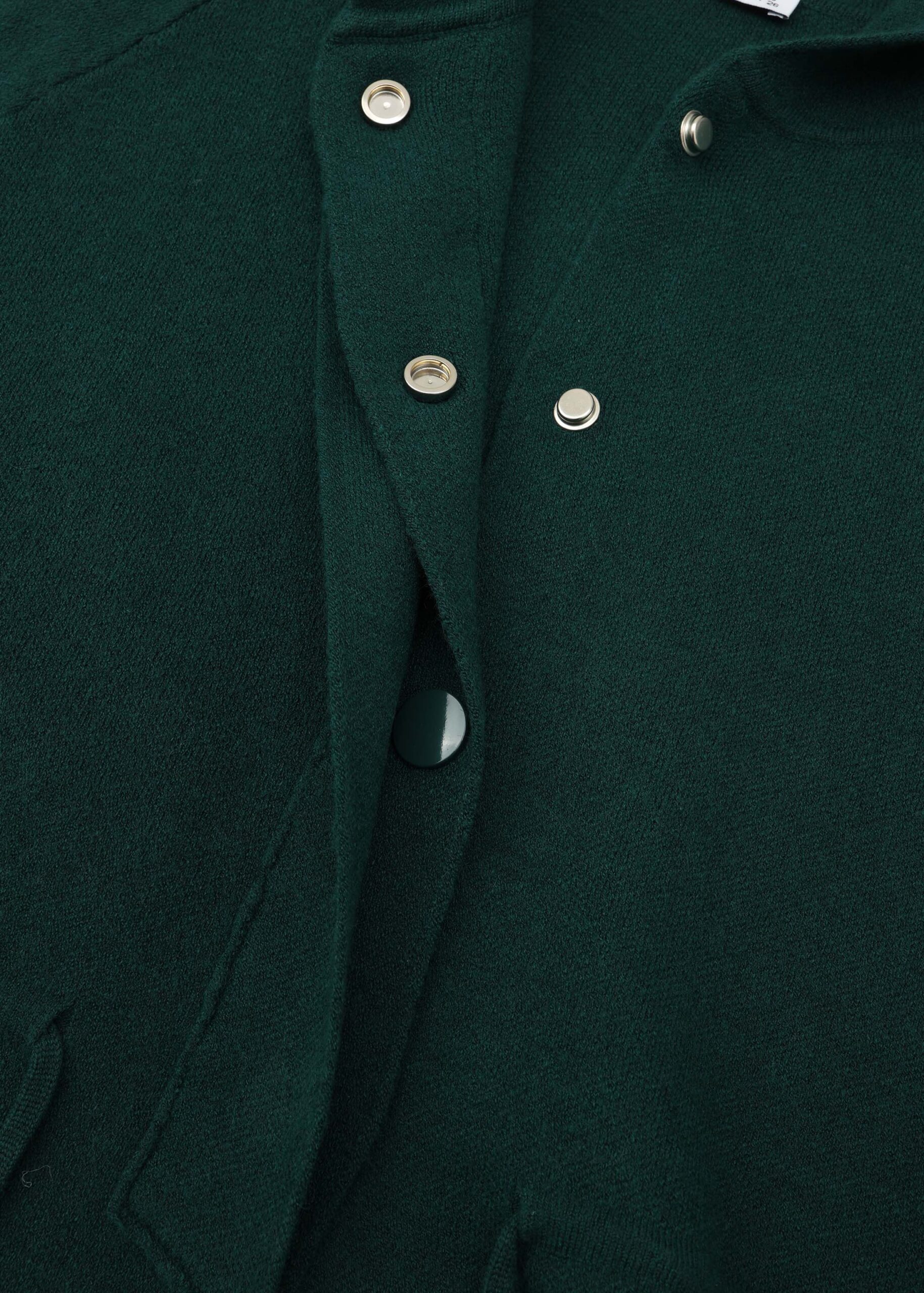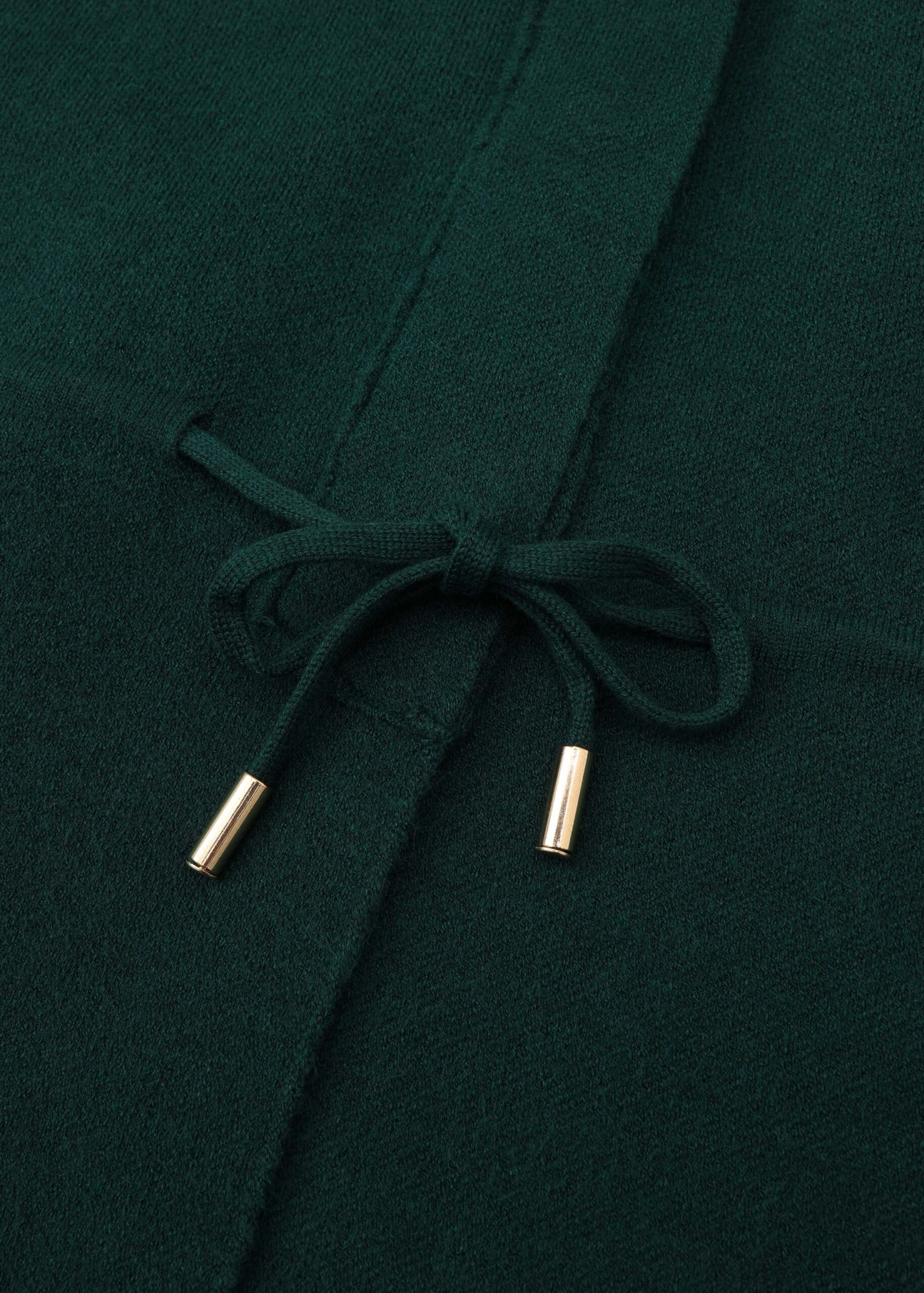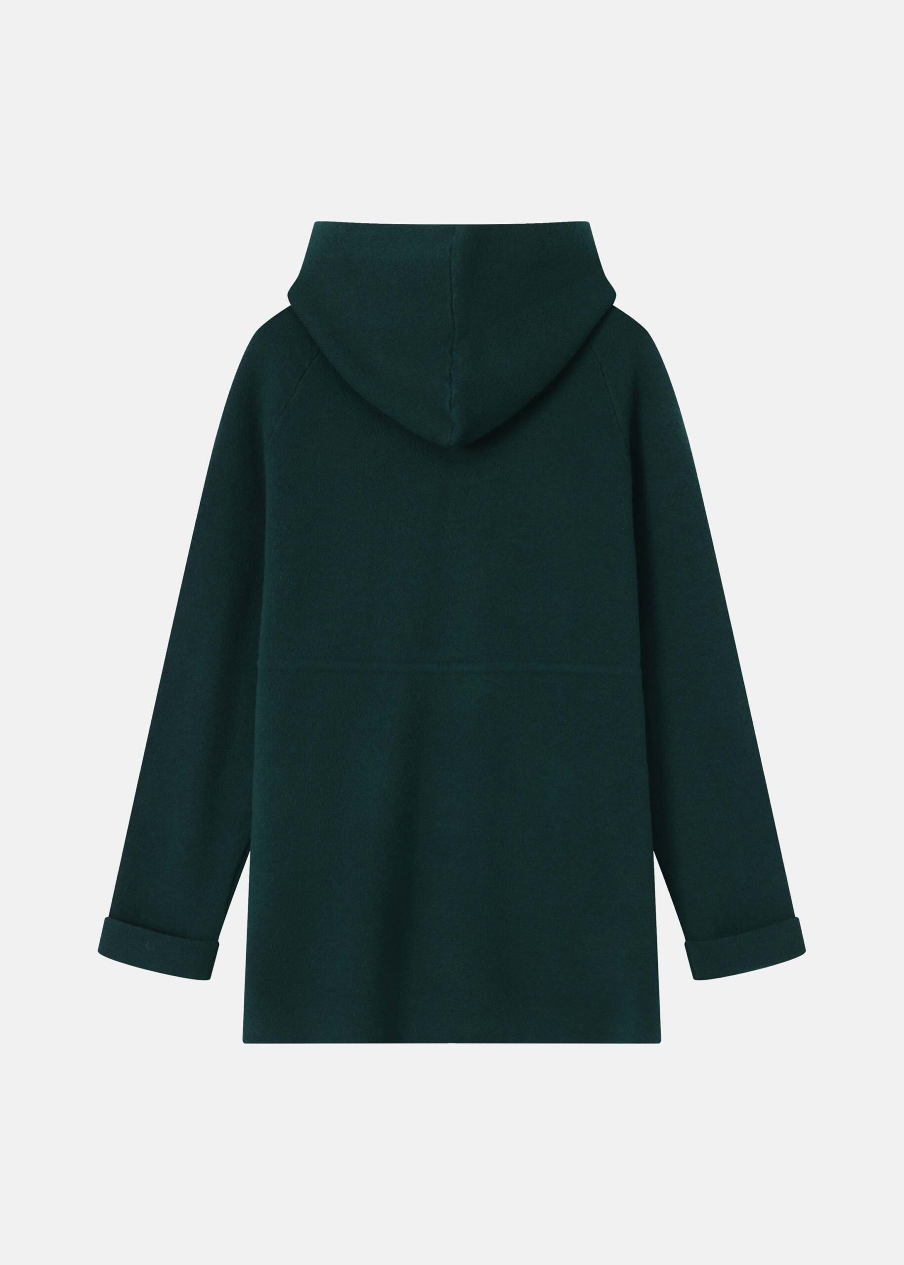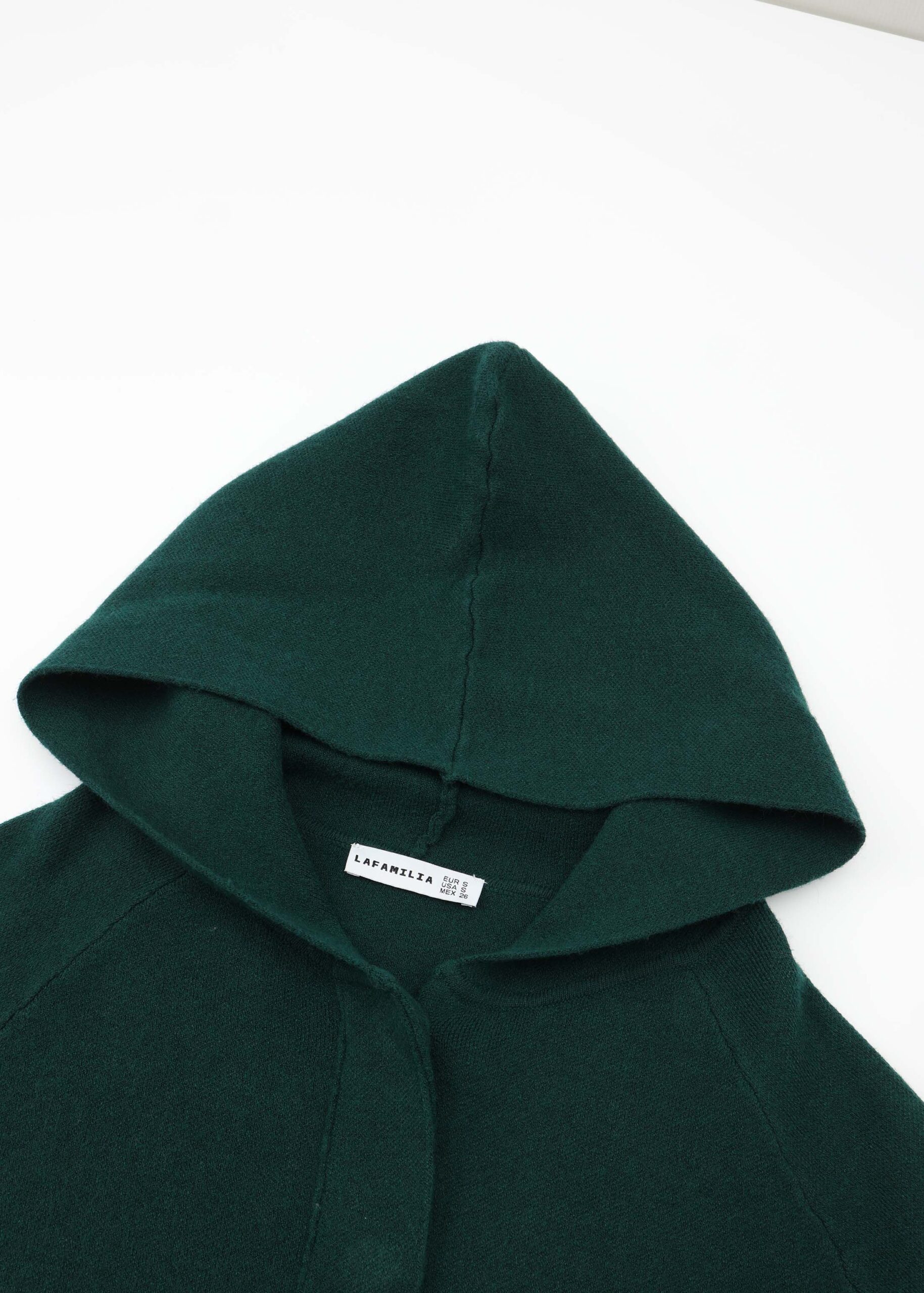 Women jacket, knitted fabric, plain, long, hood with front buttons to close, waist tie, long sleeves, unique and modern