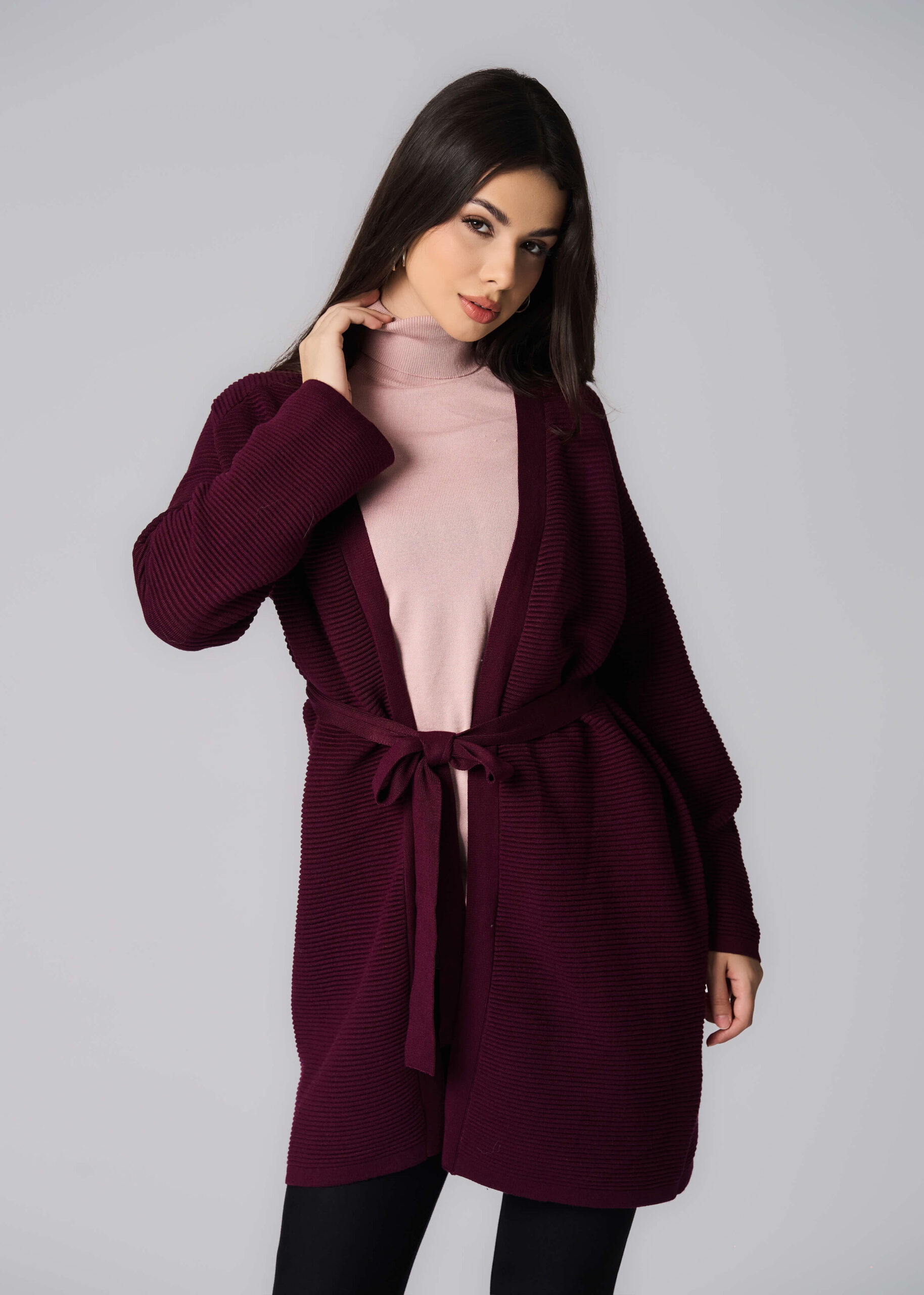 Women cardigan, knitted fabric, striped, open, waist belt, long sleeves, unique and suitable with many styles