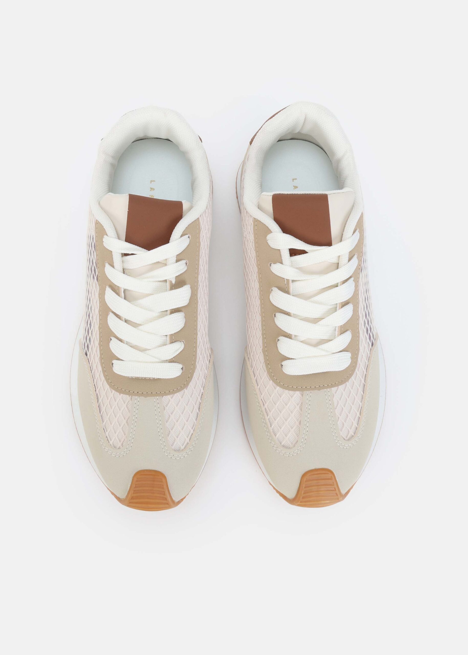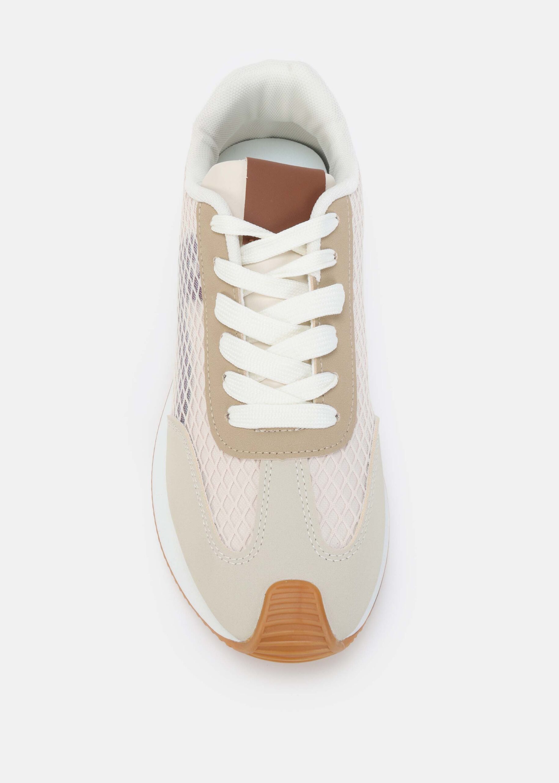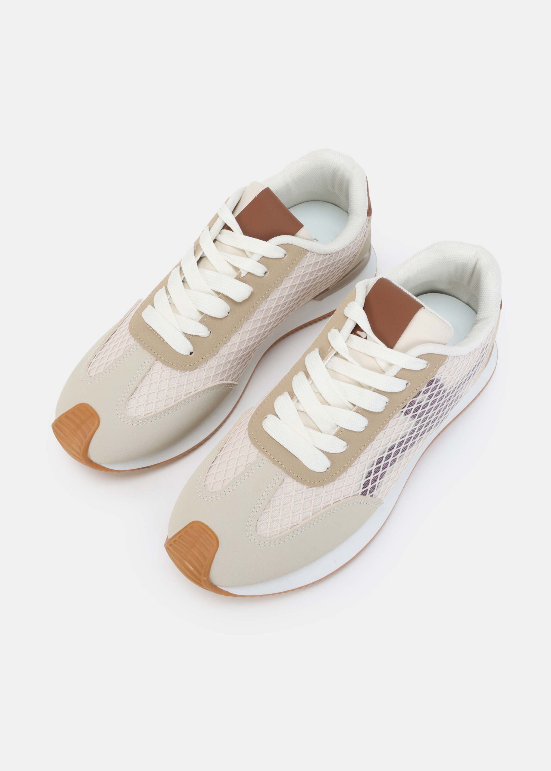 Women sneaker, suede with mesh fabric detail, lace-up, round toe, rubber sole, comfortable and practical