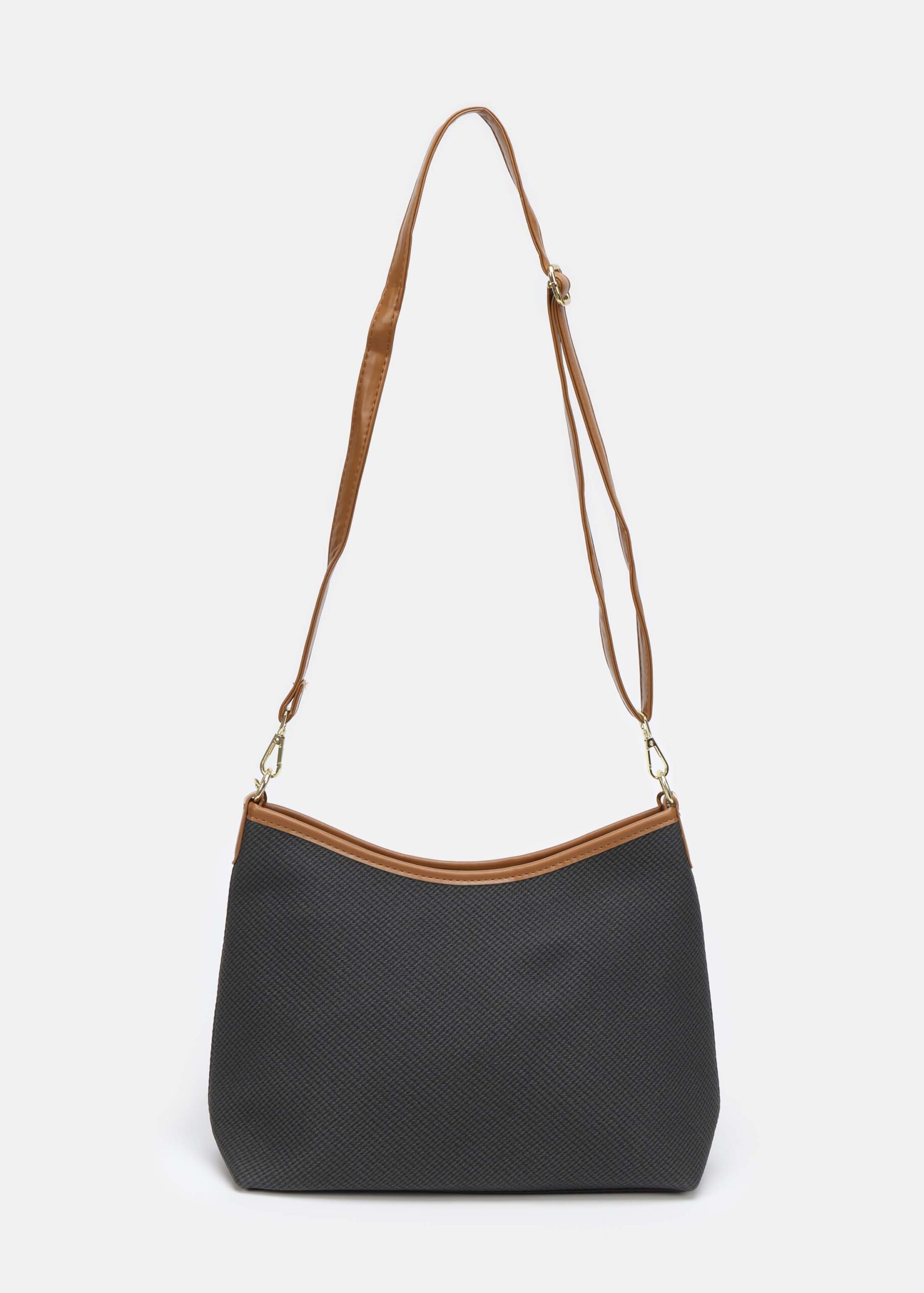 Women bag, fabric and leather, zipper closure, hand strap, adjustable shoulder strap, unique and practical