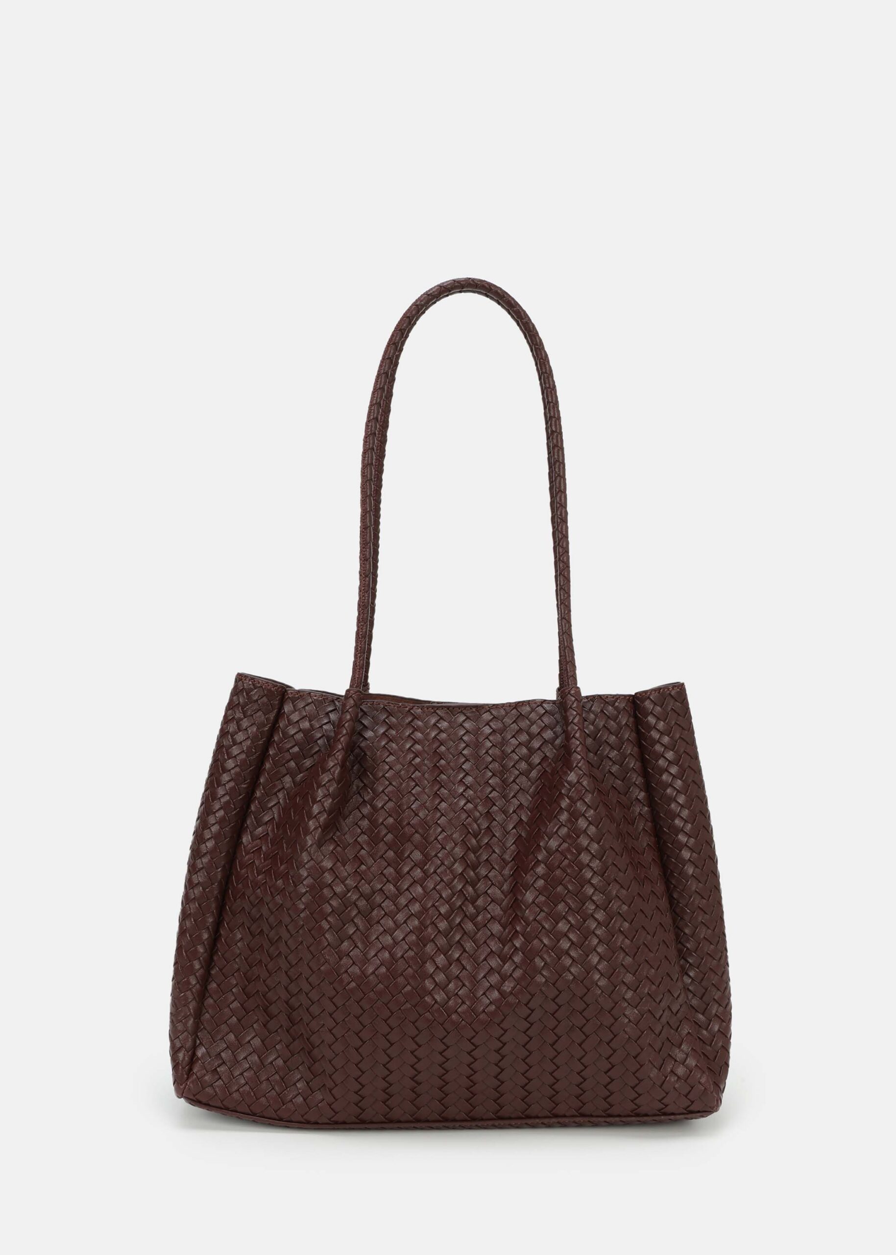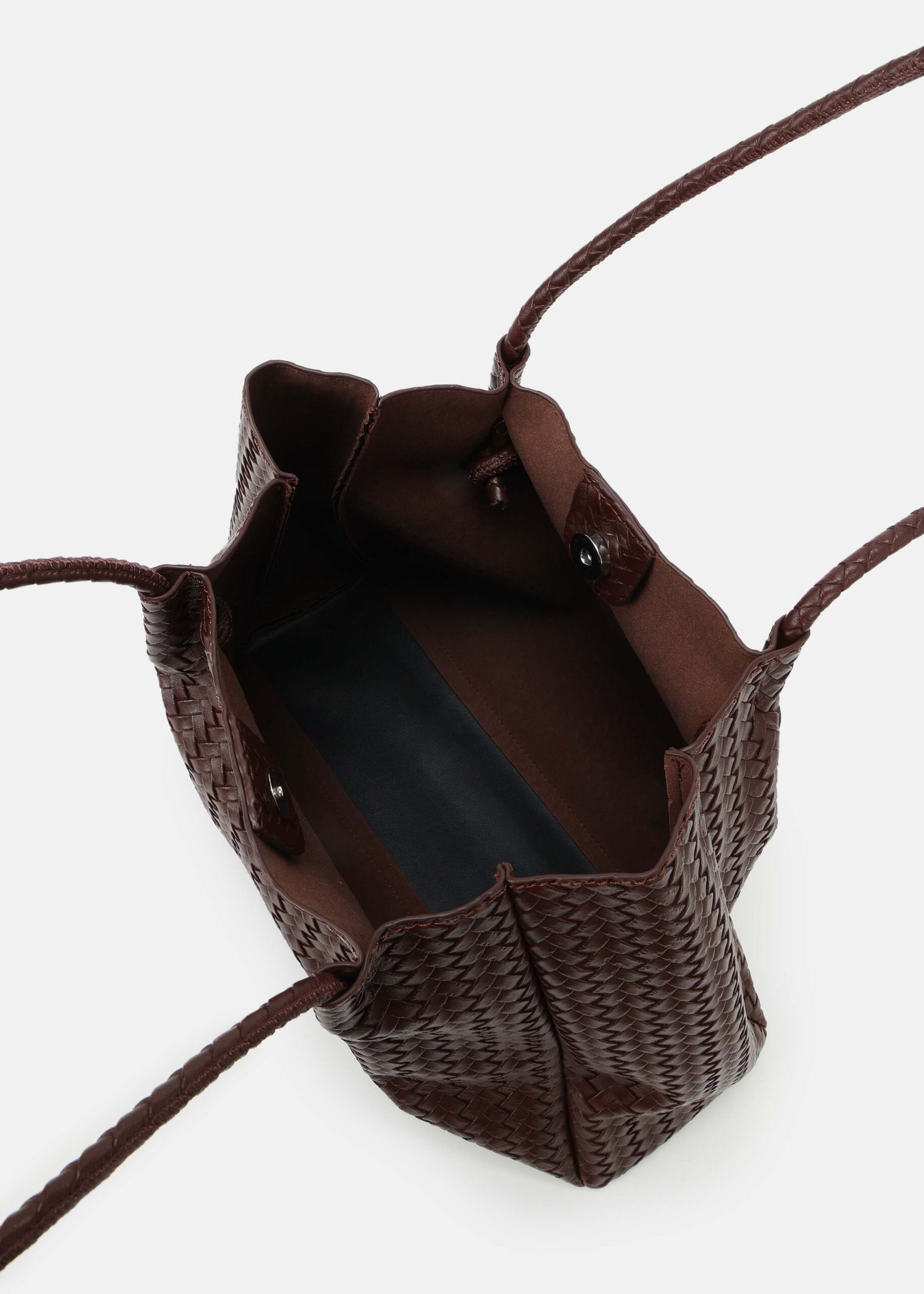 Women bag, leather, briaded patterned, hand straps, snap button to close, inner braided leather bag with zipper closure, unique and practical