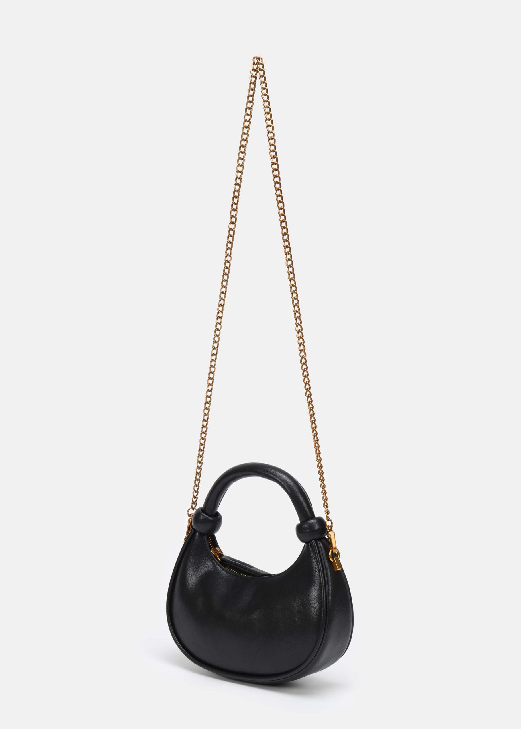 Women bag, leather, zipper closure, hand strap, shoulder chain, unique and modern