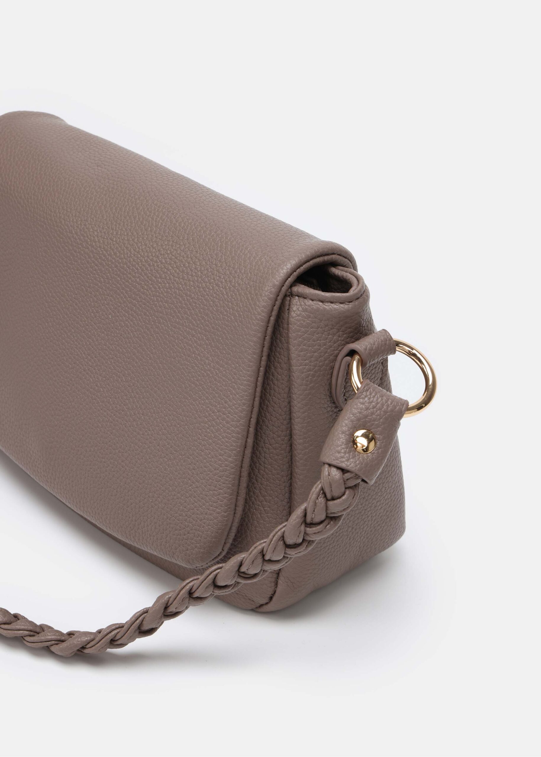 Women bag, leather, zipper closure with front button to close, hand braided strap, adjustable shoulder strap, unique and practical