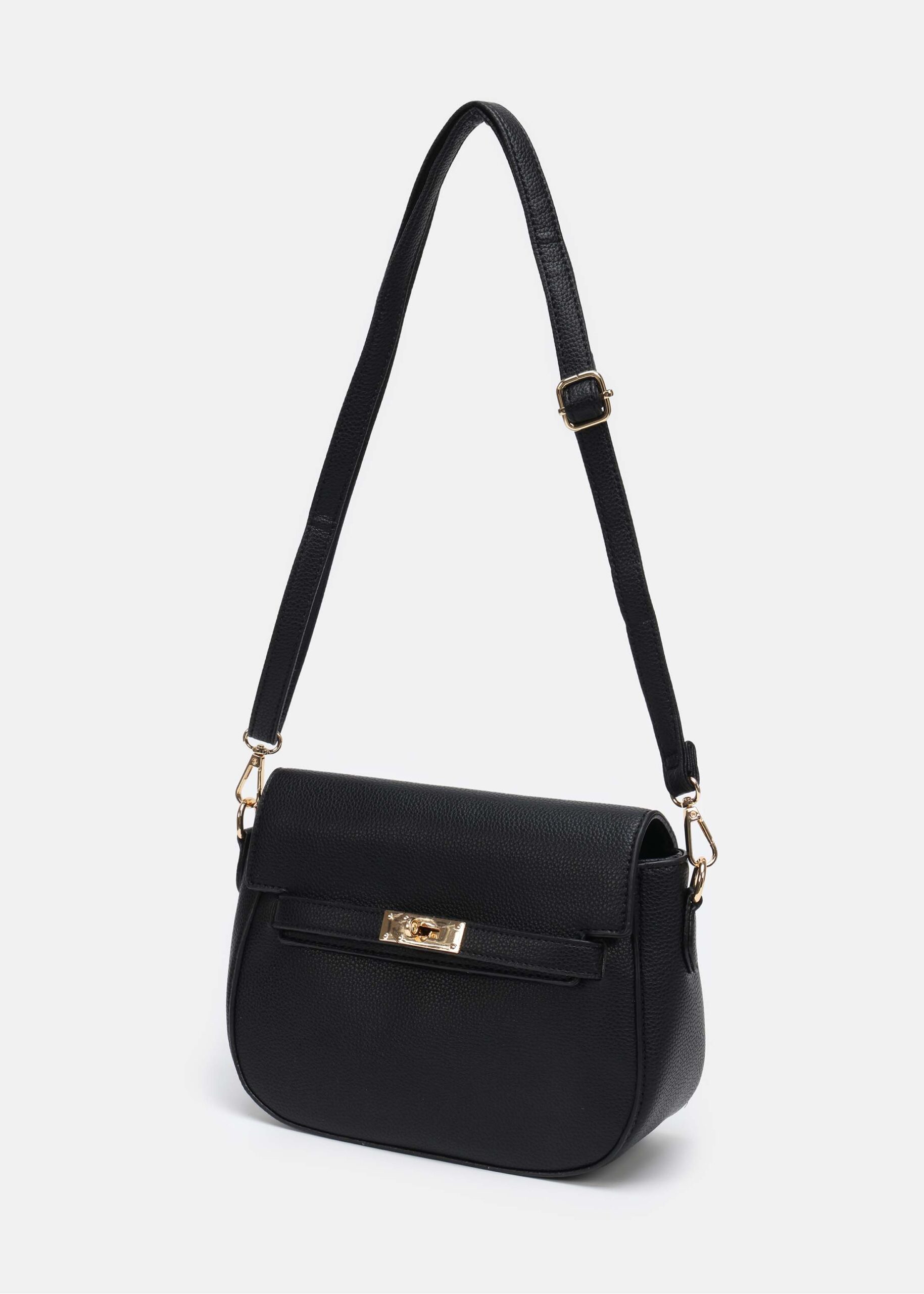 Women bag, leather, zipper closure with front metal buckle to close, adjustable shoulder strap, unique and practical