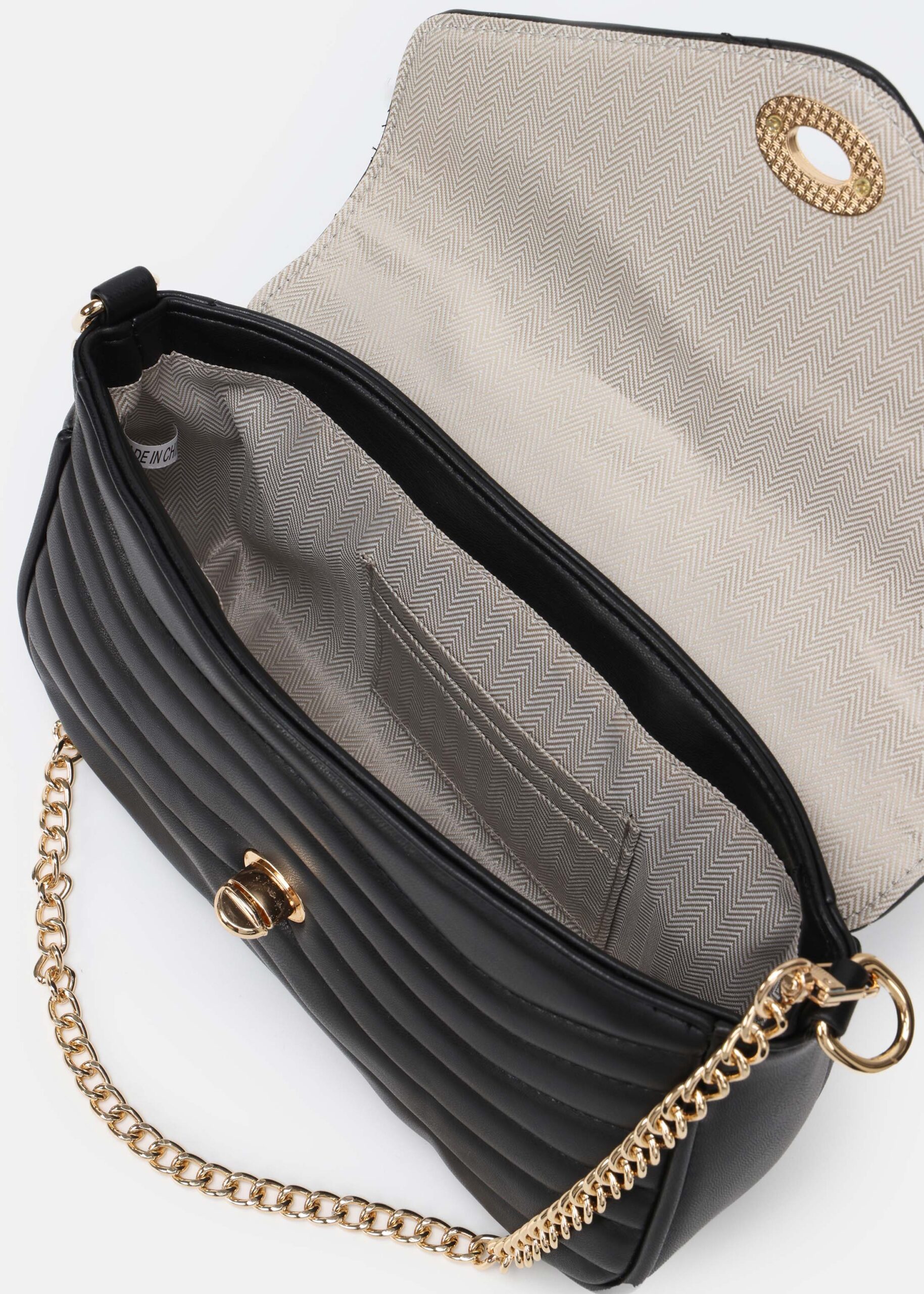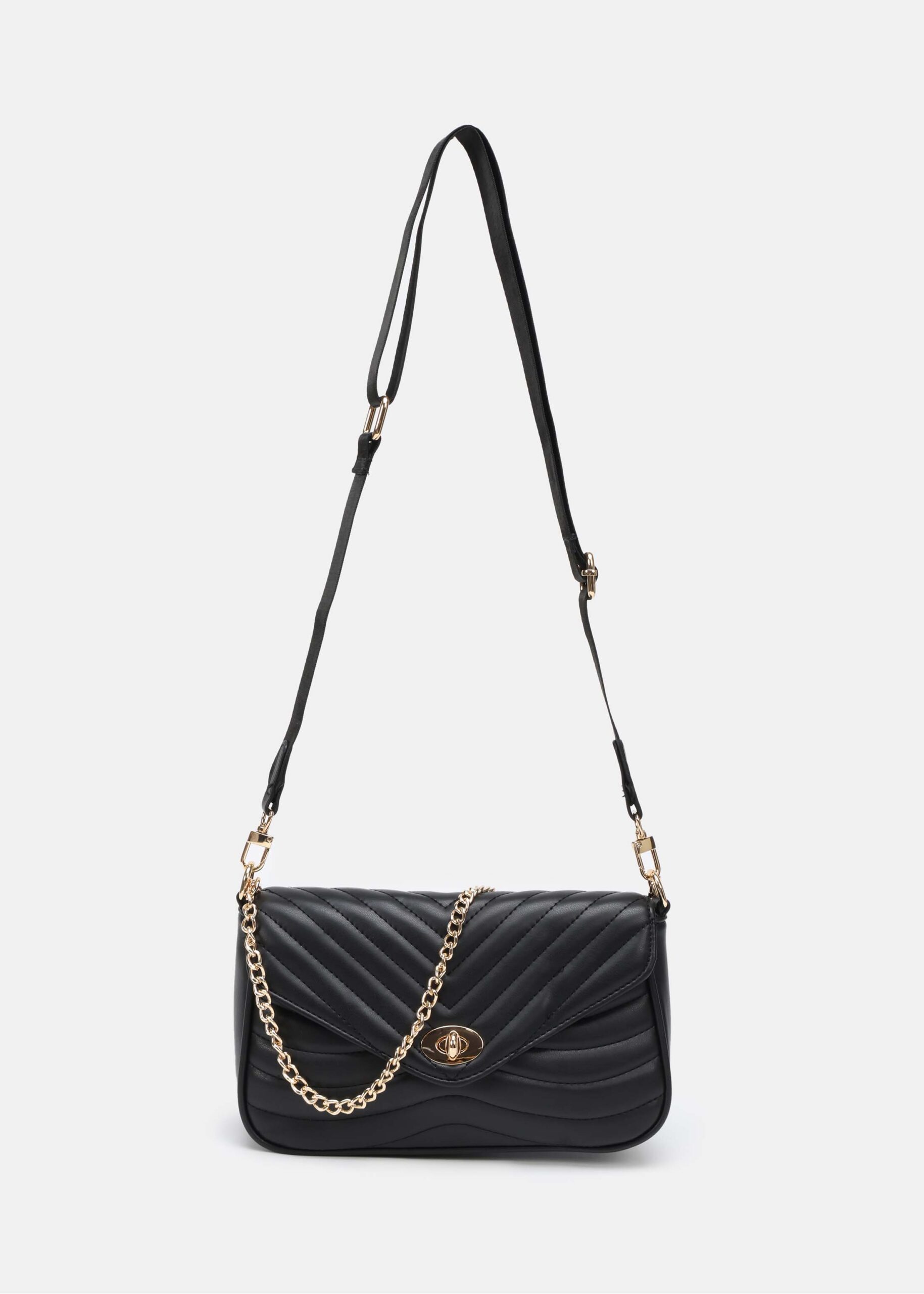 Women bag, leather, front buckle to close, hand chain, adjustable shoulder strap, unique and practical