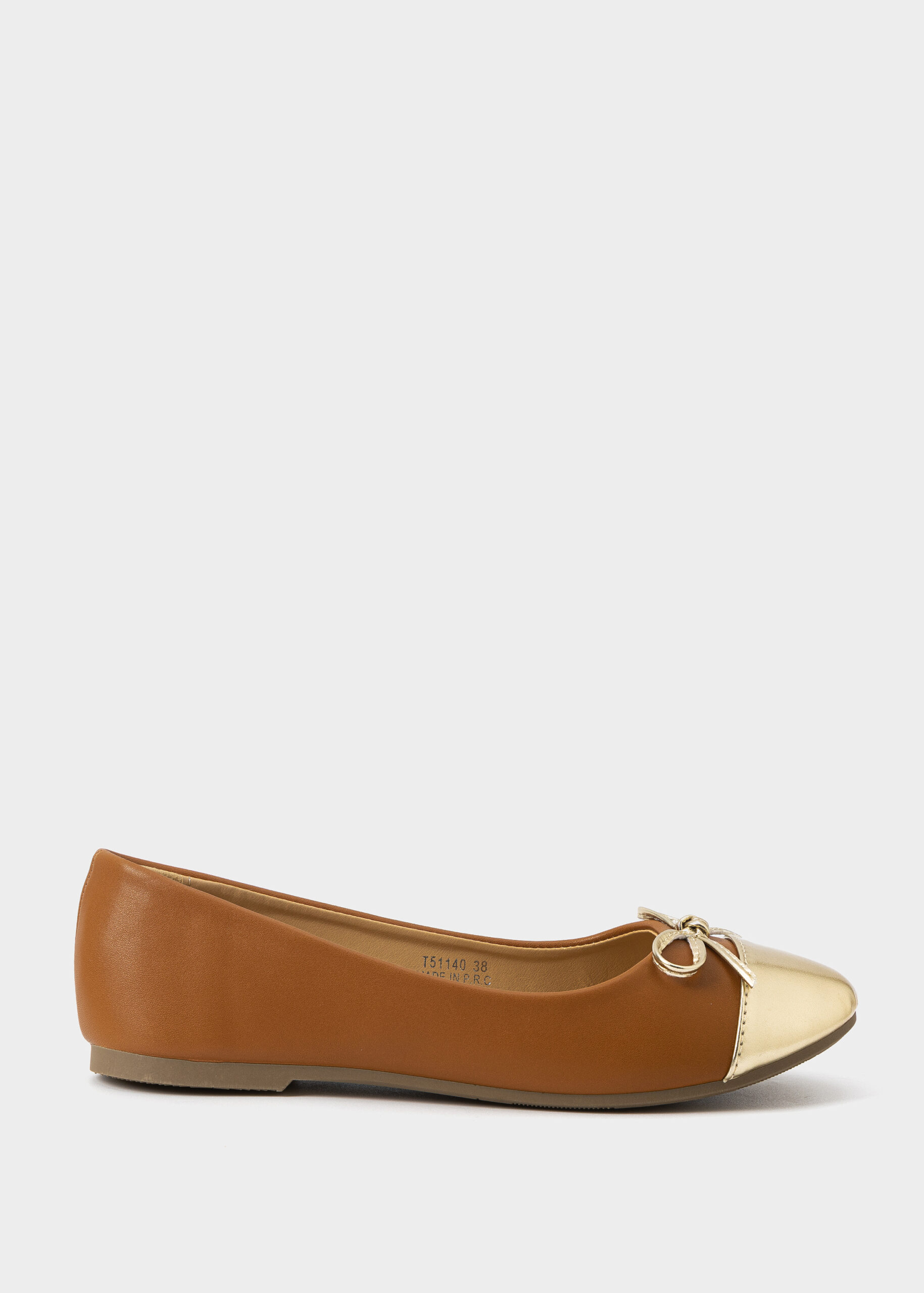 Women shoes, ballerina, leather, round toe, upper bow decor, unique and modern