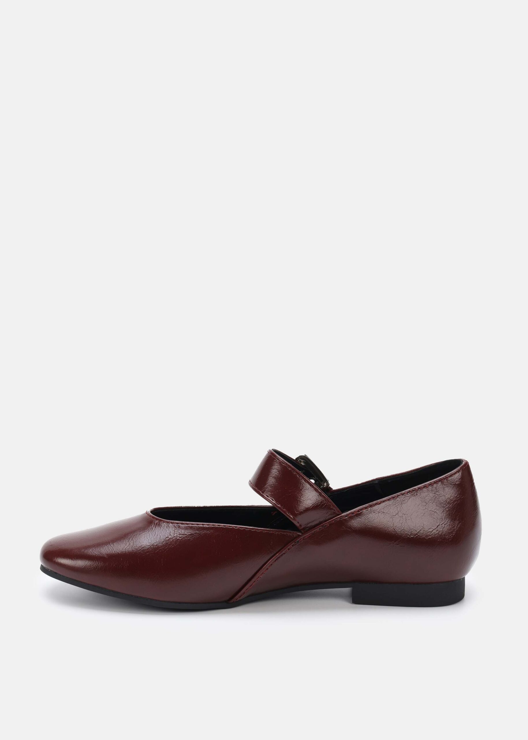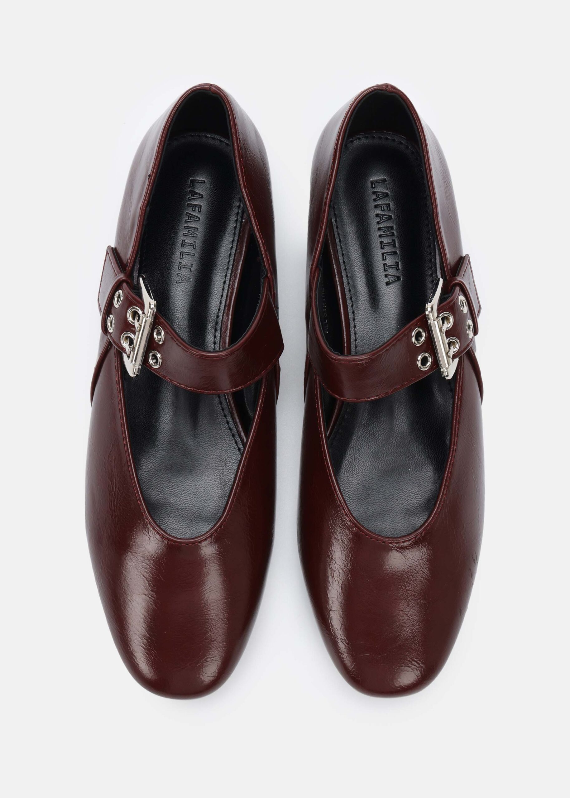 Women ballerina shoes, leather, upper strap with metal buckle, round toe, unique and modern