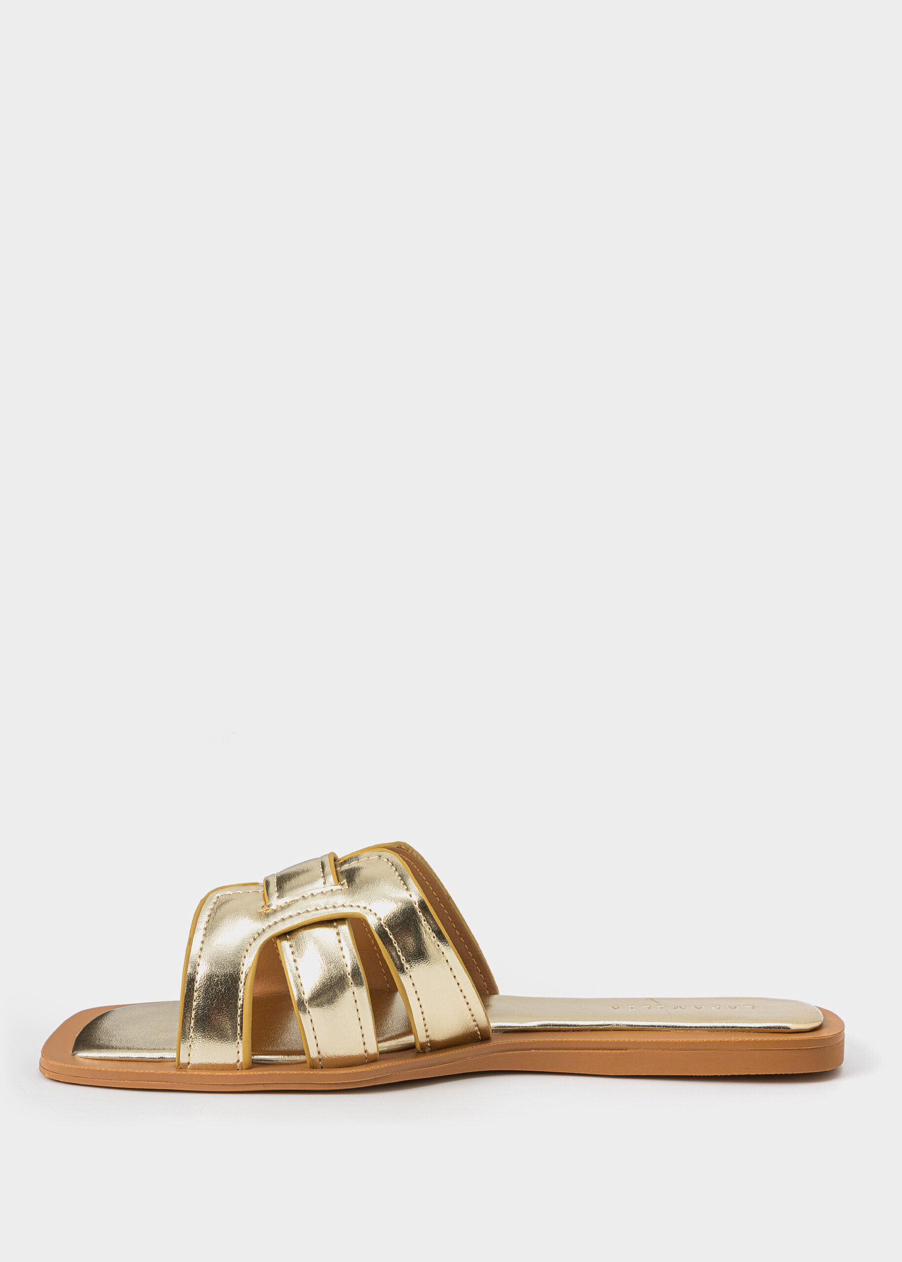 Women slipper, leather, flat, open round toe, upper straps, unique and practical