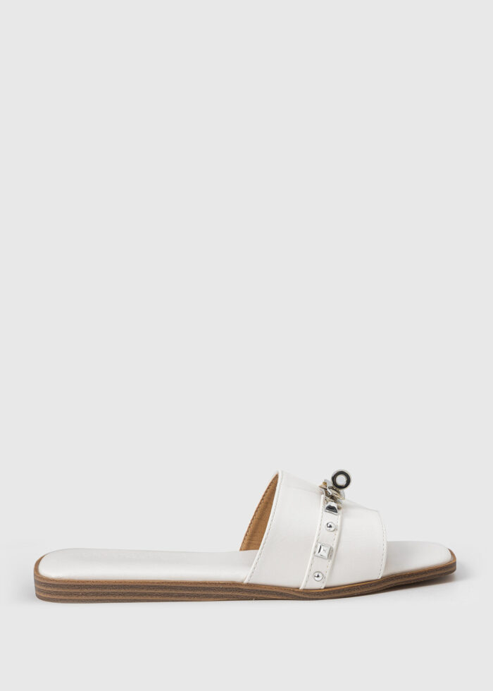 Women slipper, flat, leather, upper buckle decor, open round toe, unique and comfortable