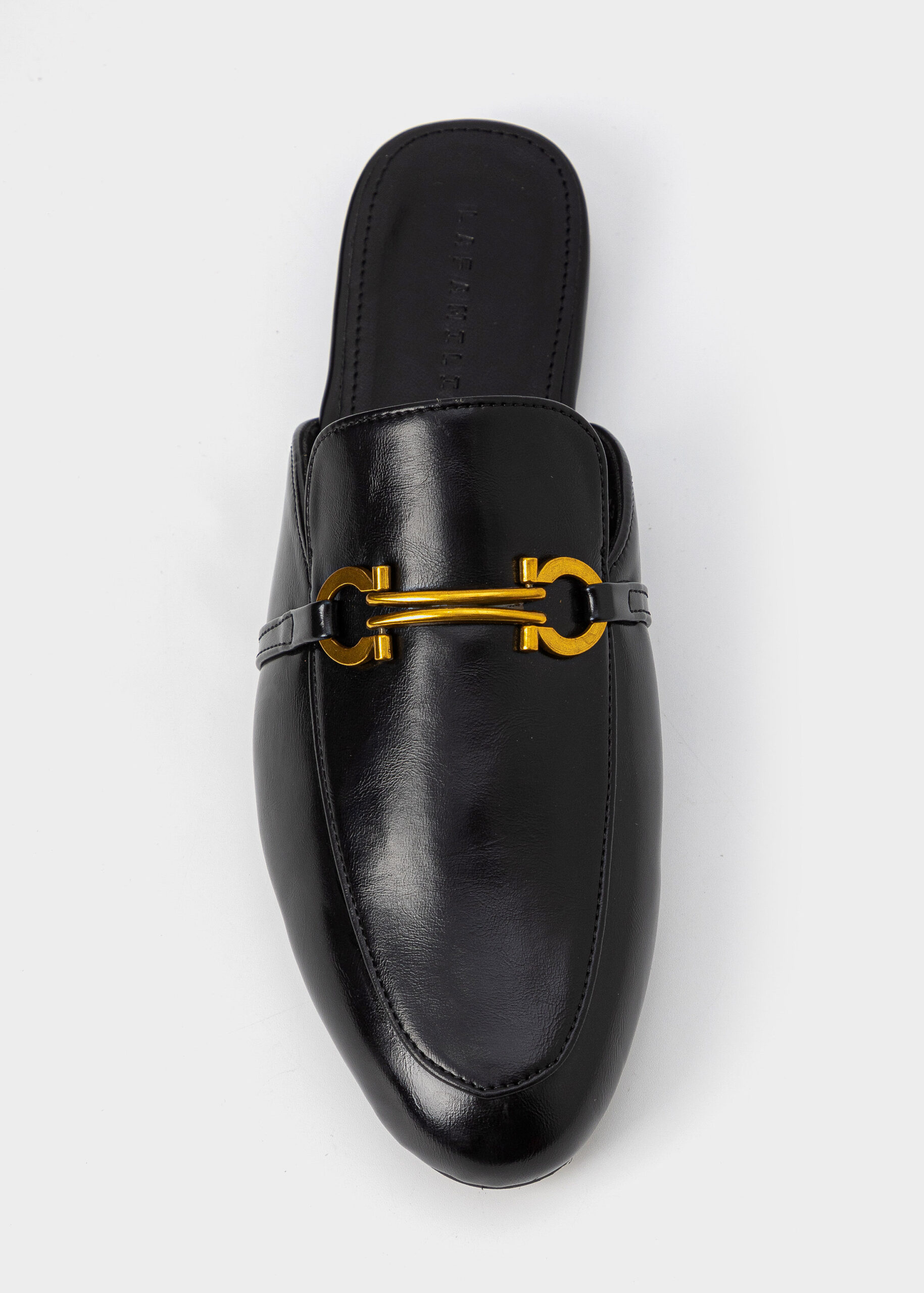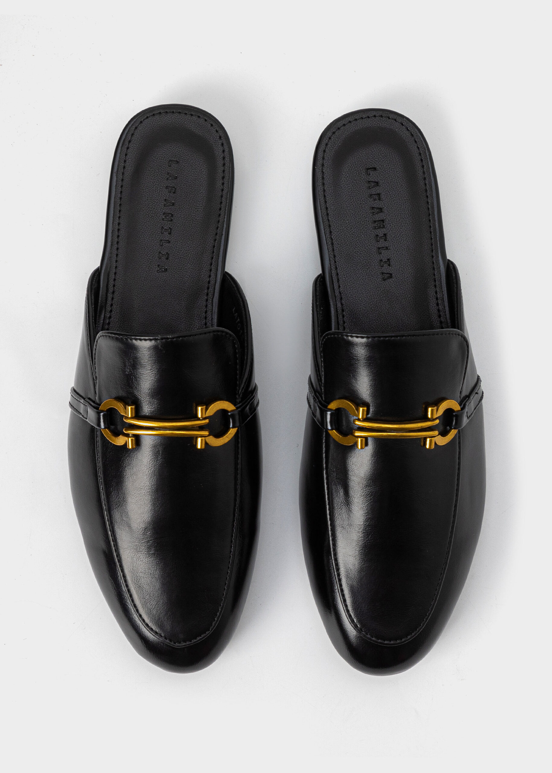 Women slipper, leather, flat, round toe, upper chain decor, unique and modern