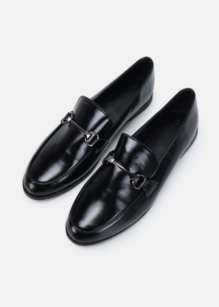 Women topsider, leather, round toe, upper metal chain decor, flat sole, unique and comfortable