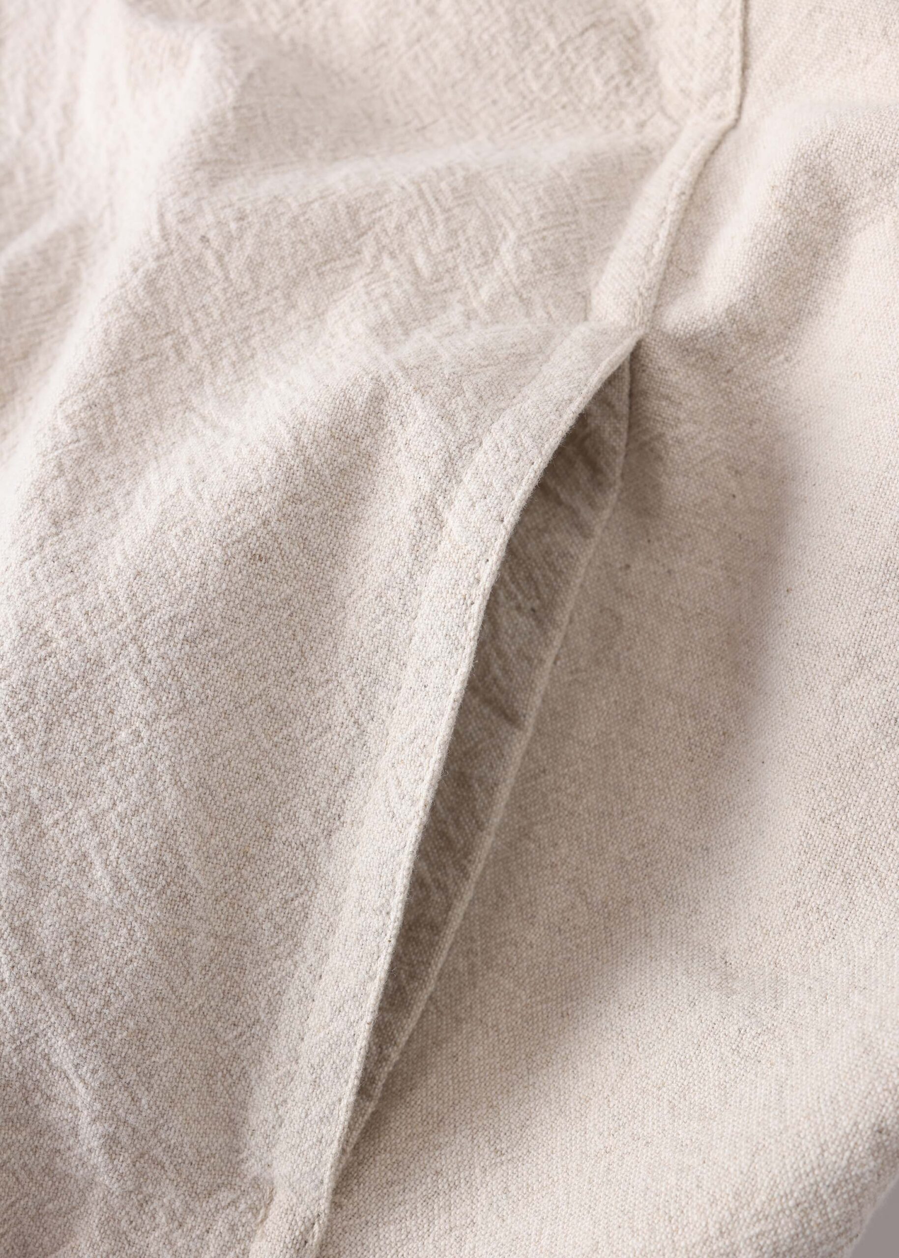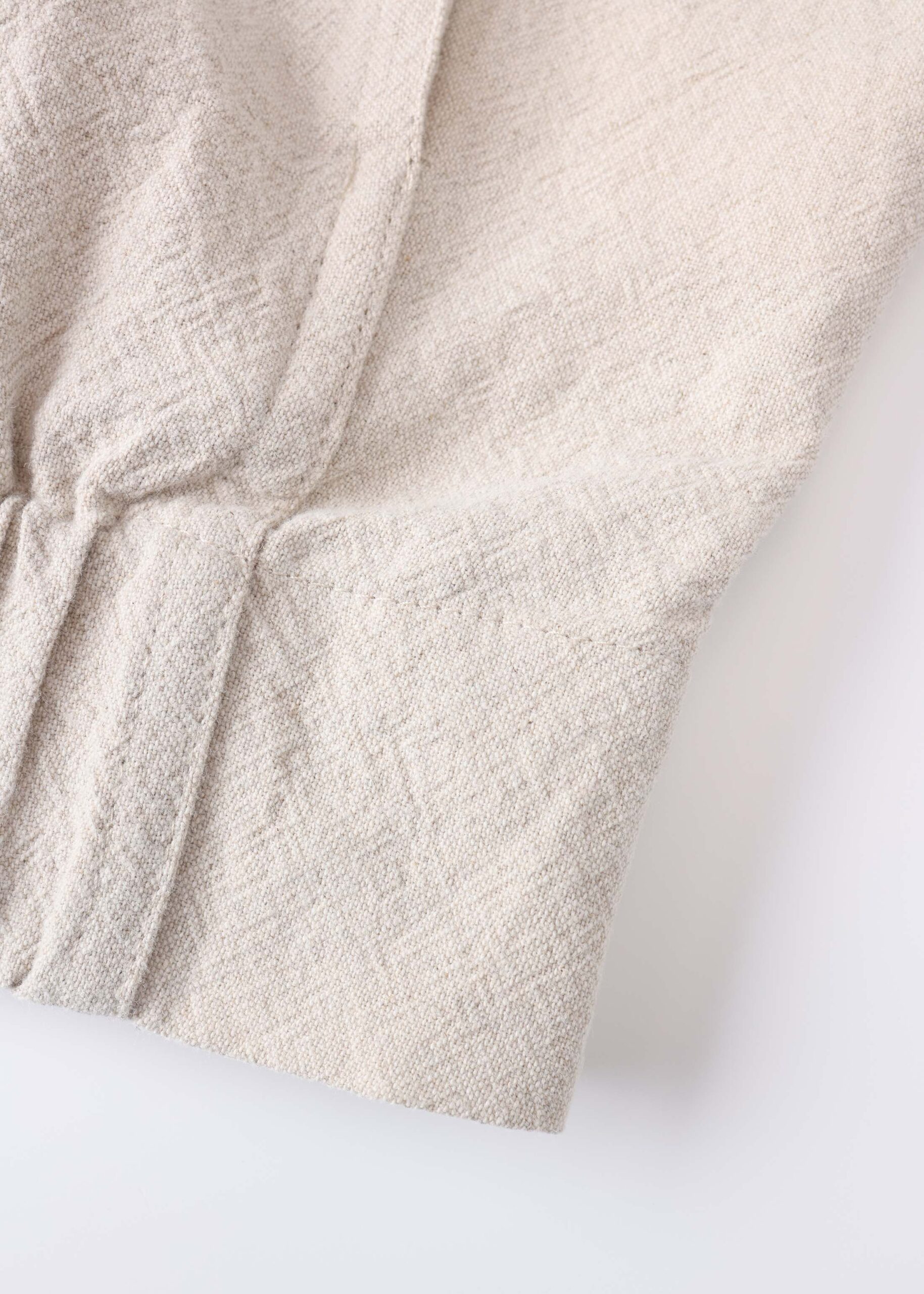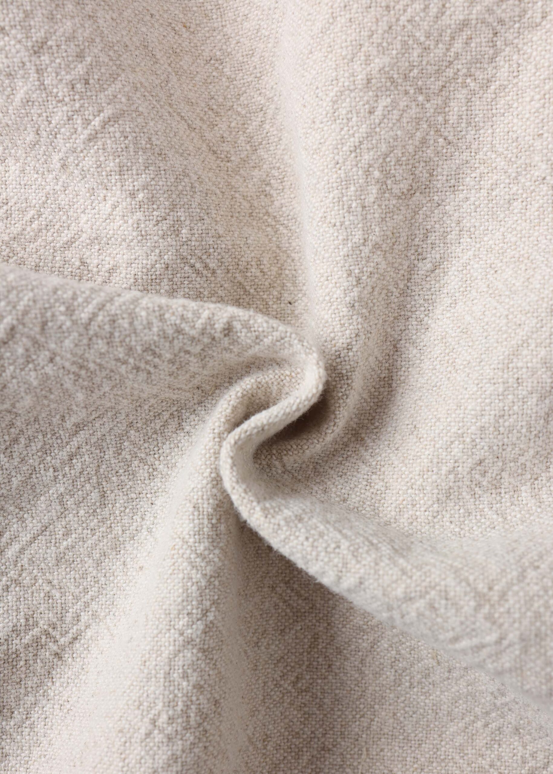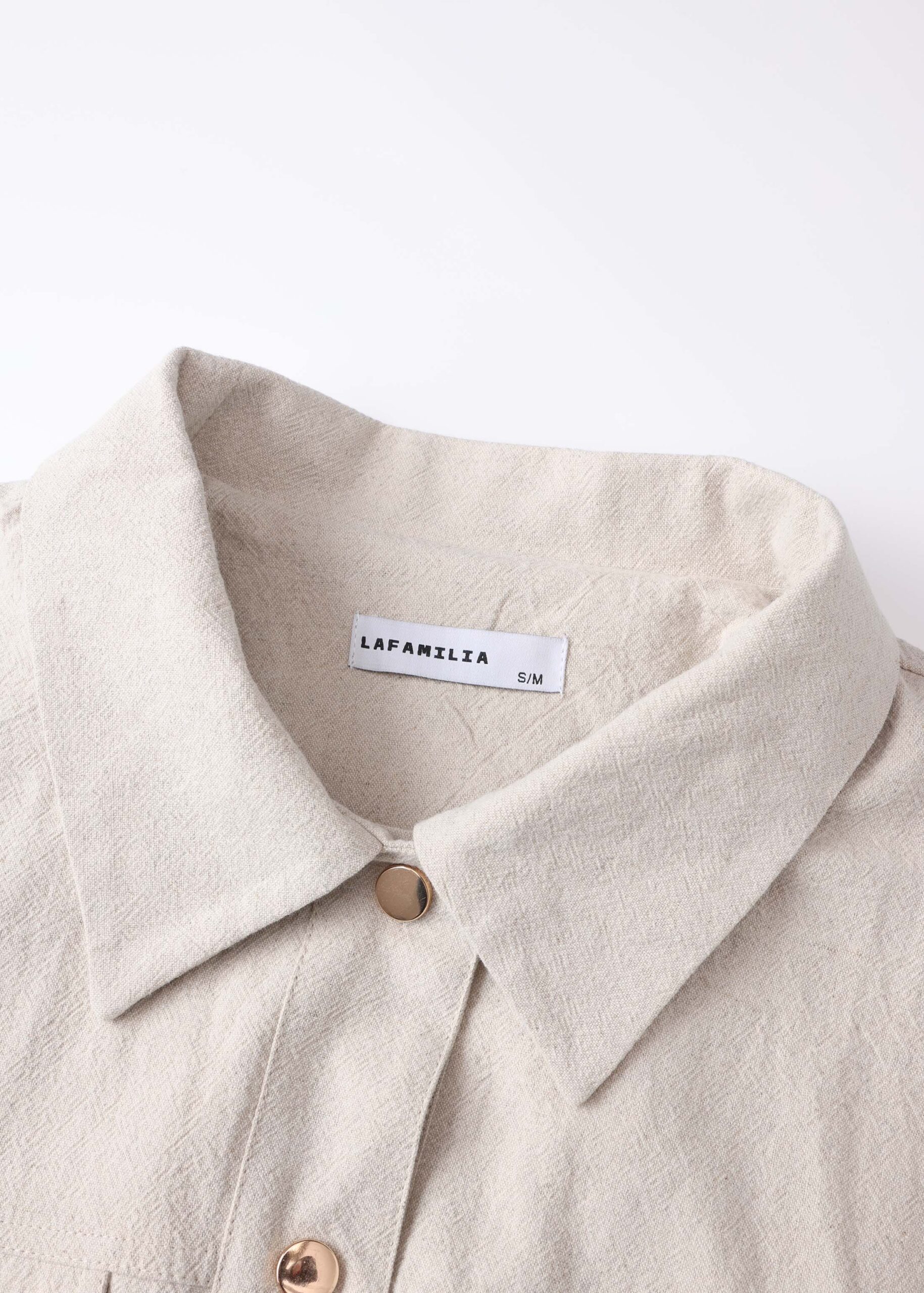 Women jacket, linen, rolled collar, mid-length sleeves, front flap chest pockets, front pockets, elastic hem, front buttons to close, unique and practical