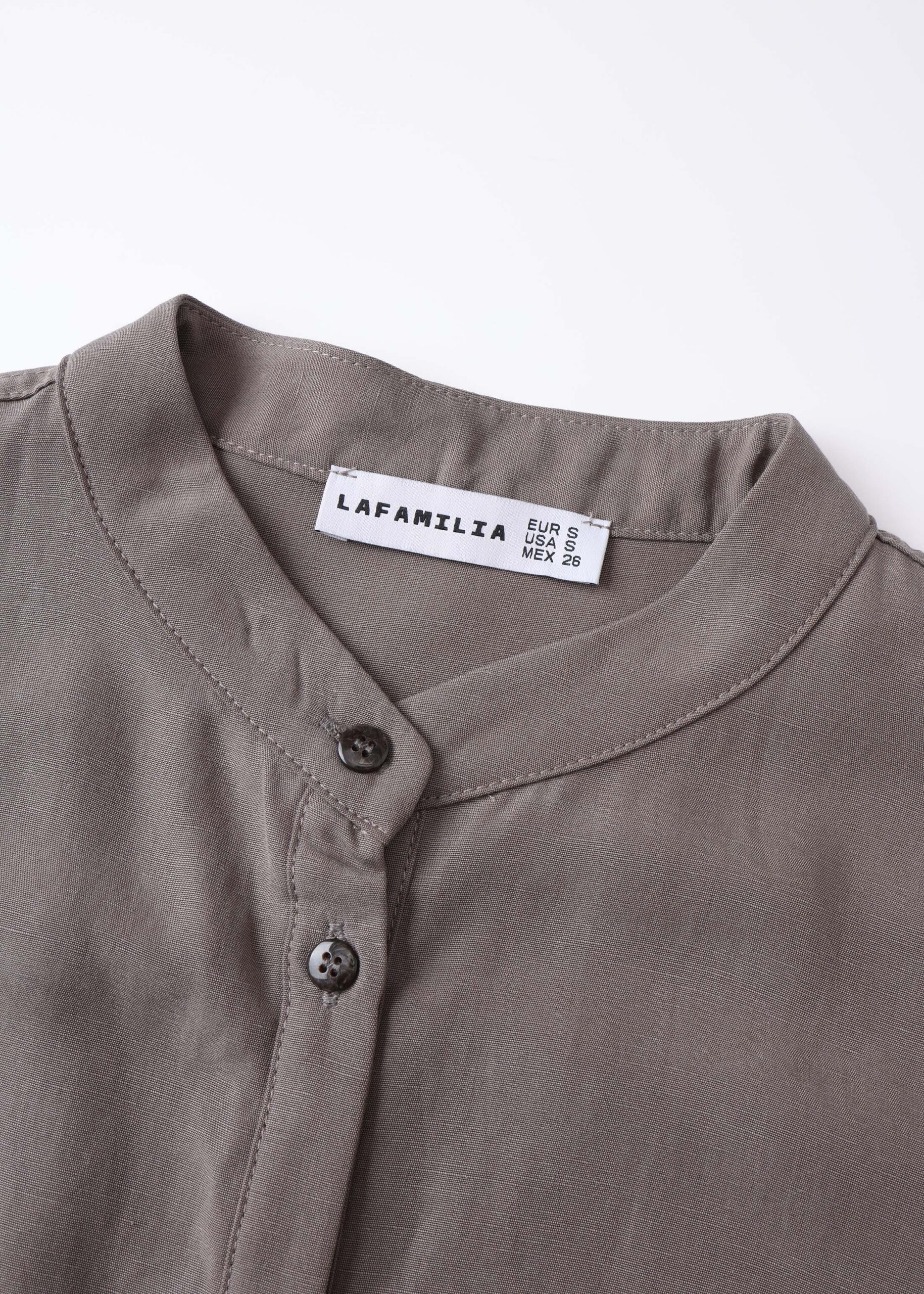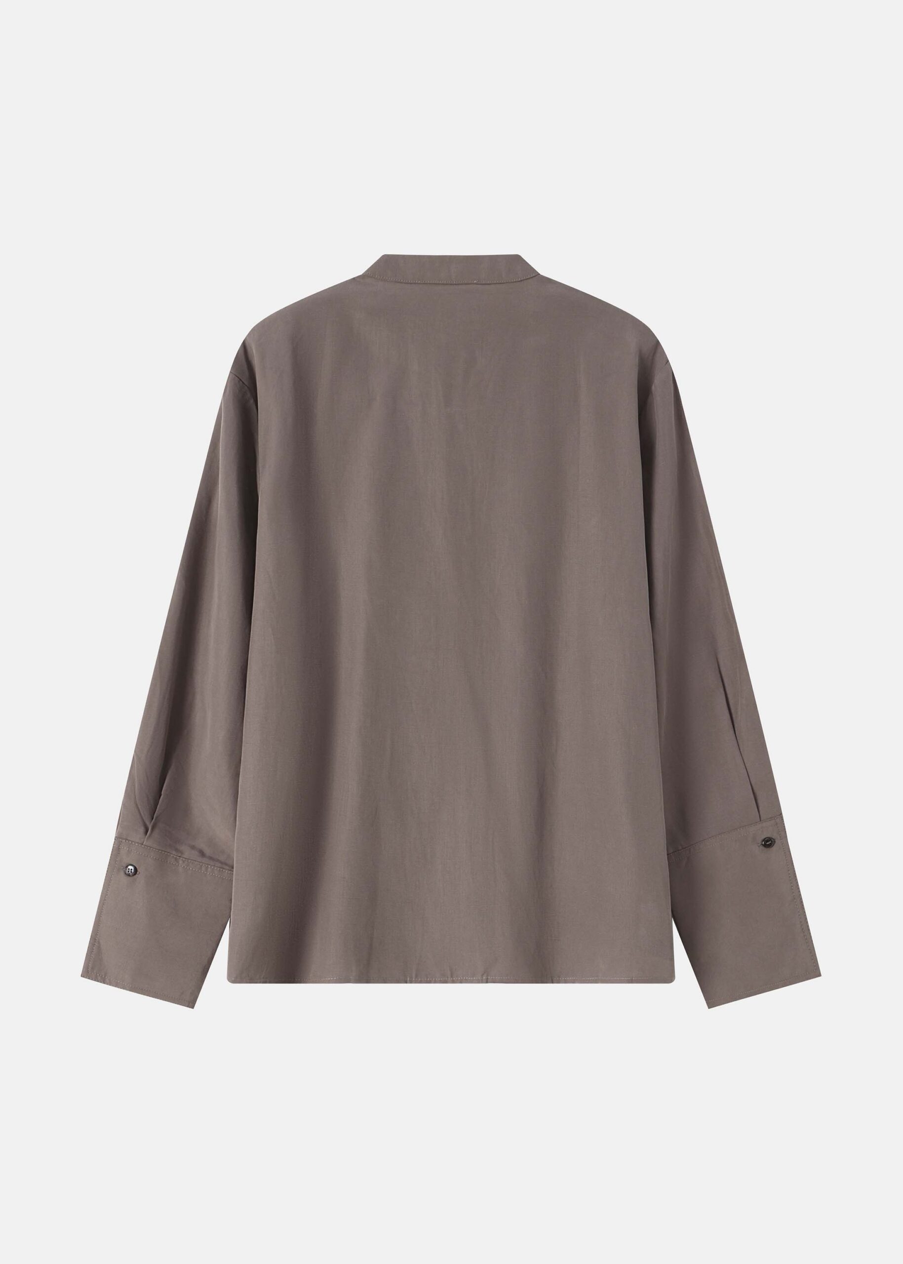 Women shirt, mandarin collar, long sleeves with tight cuff, front buttons to close, unique and modern