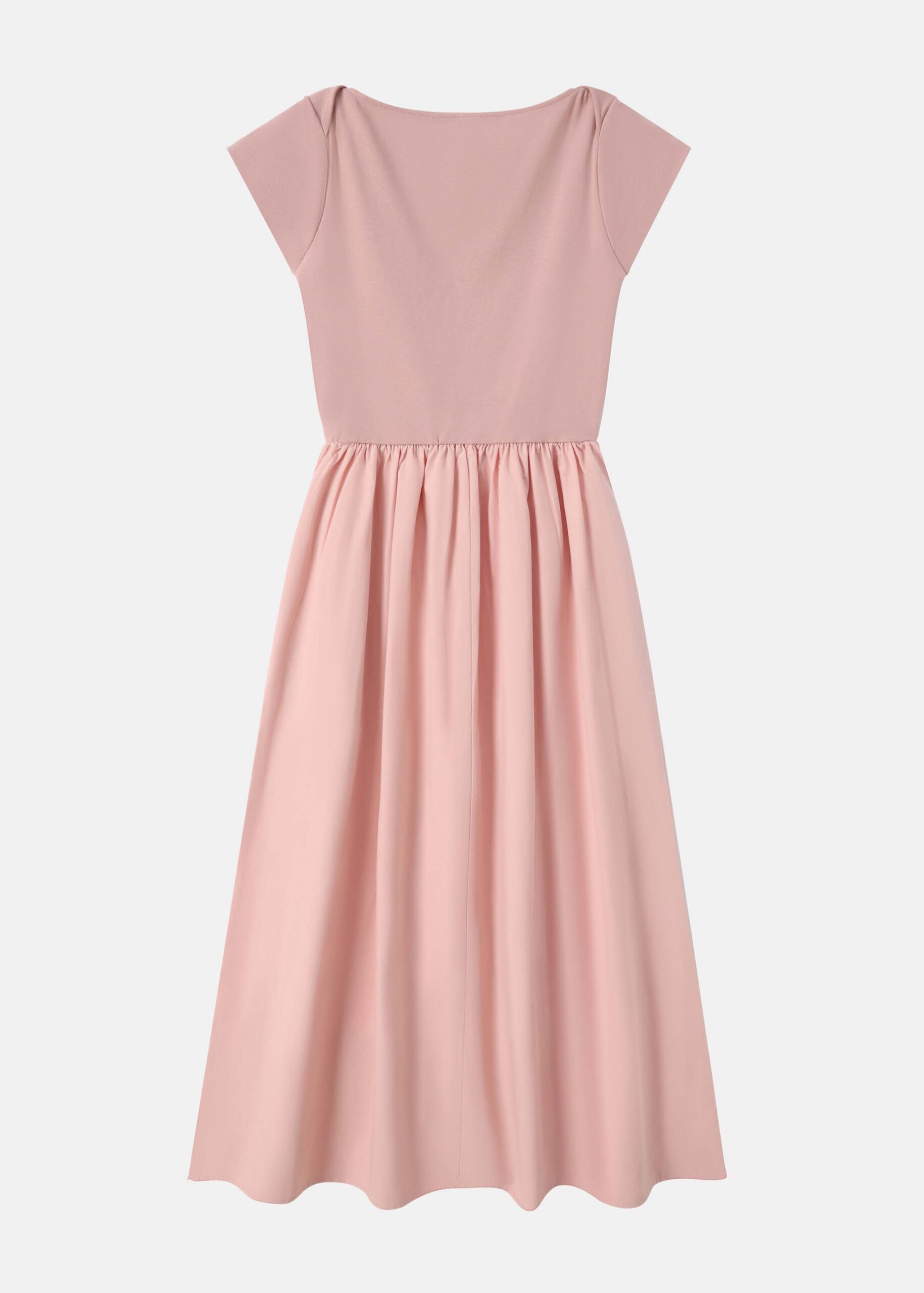 Women dress, maxi, two-tone, plain, boat neck, short sleeves, pleated waist, unique and practical