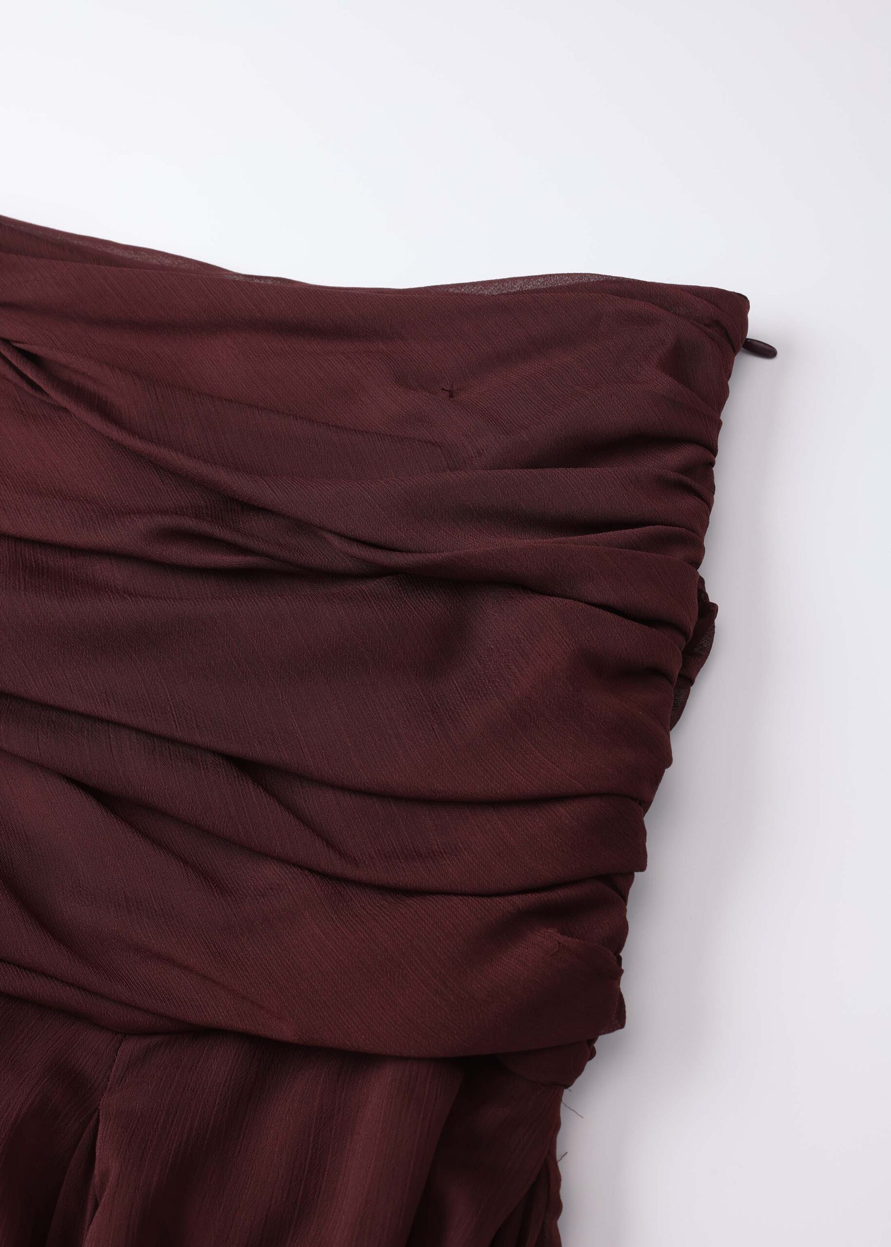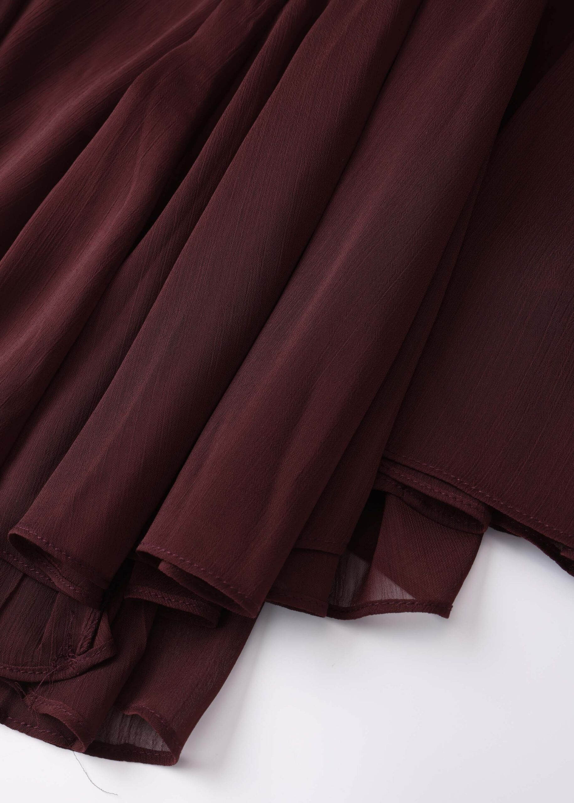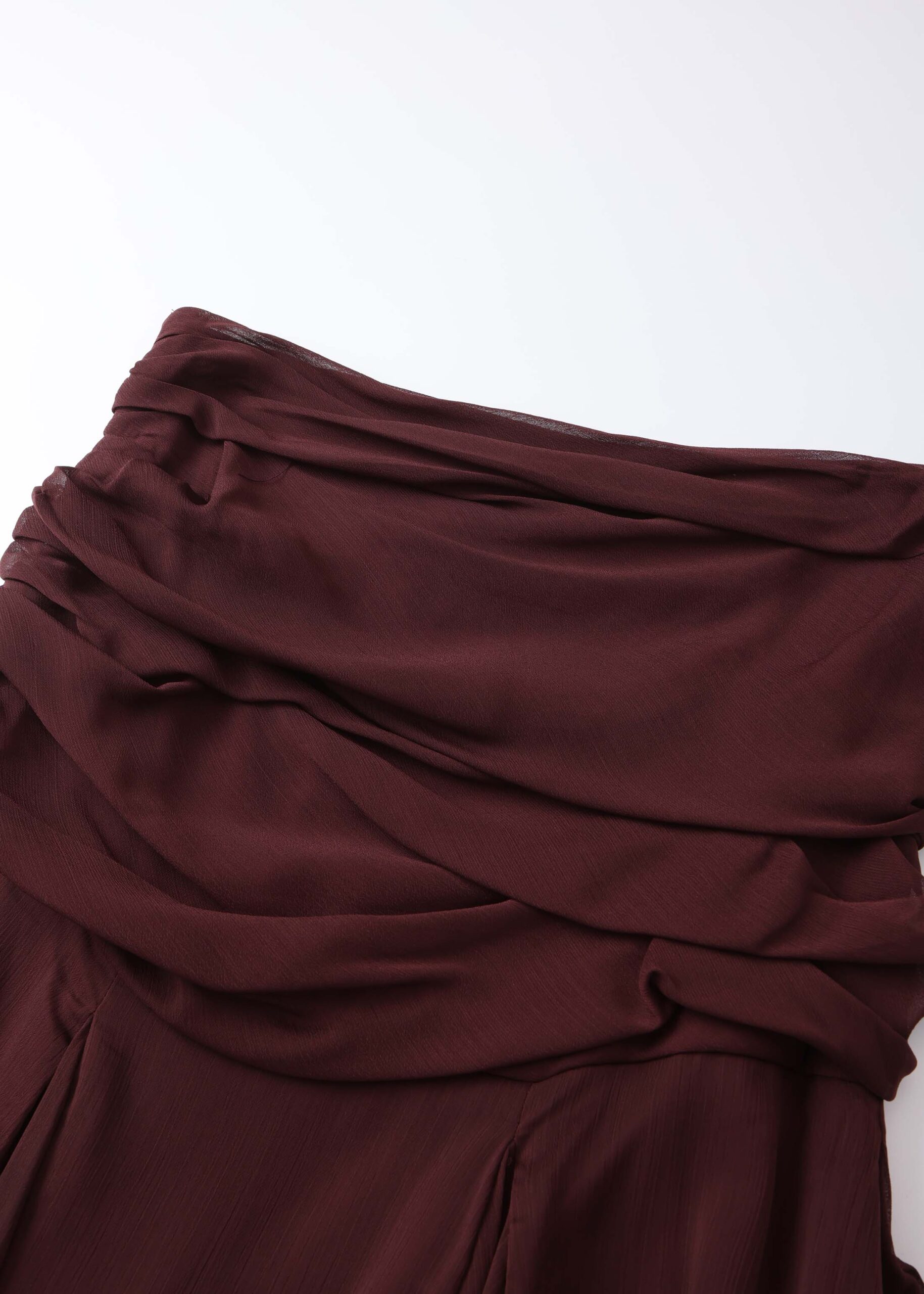 Women skirt, maxi, chiffon, lined, high-waisted, draped design, A-line, flowing pleats, unique and modern