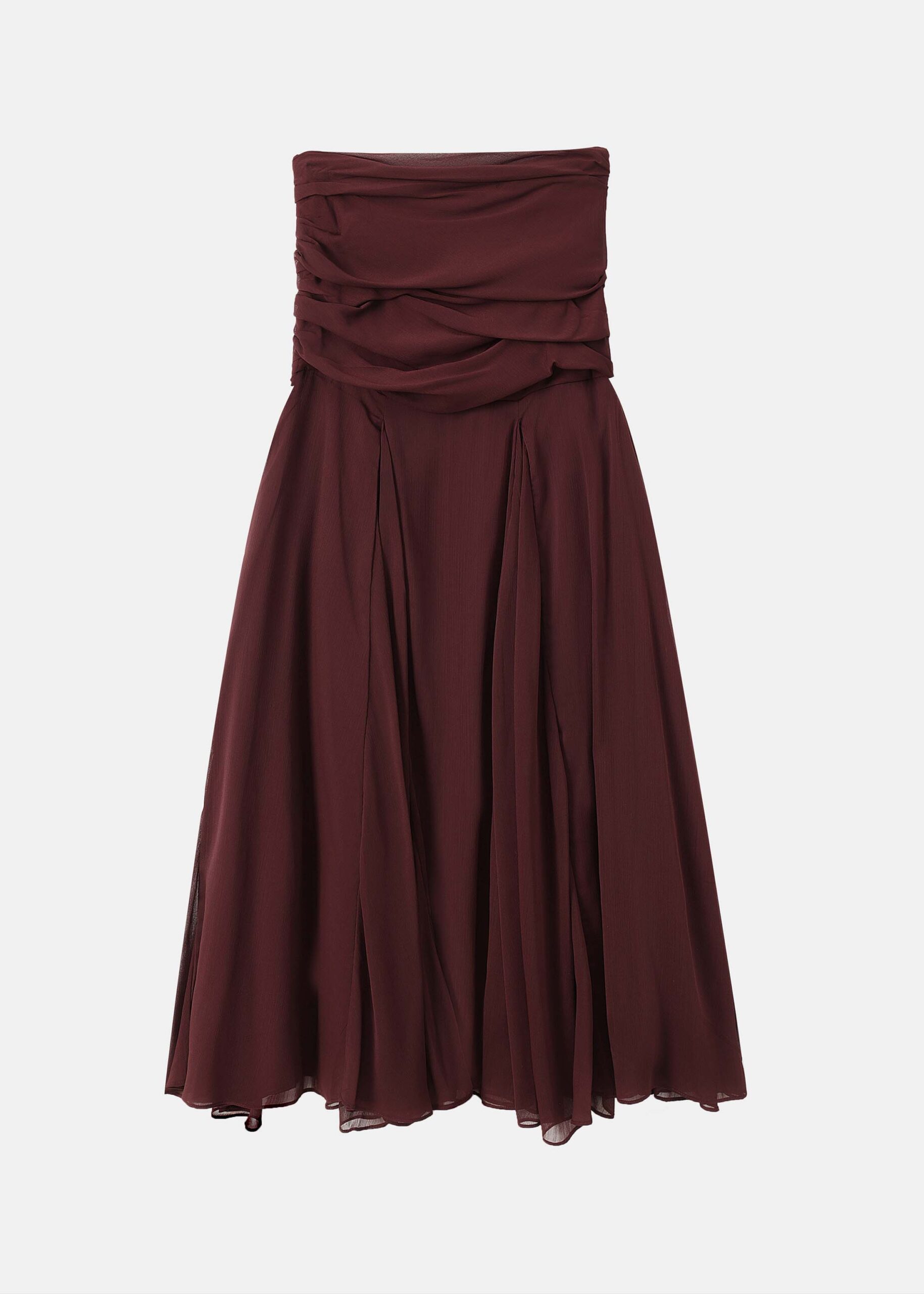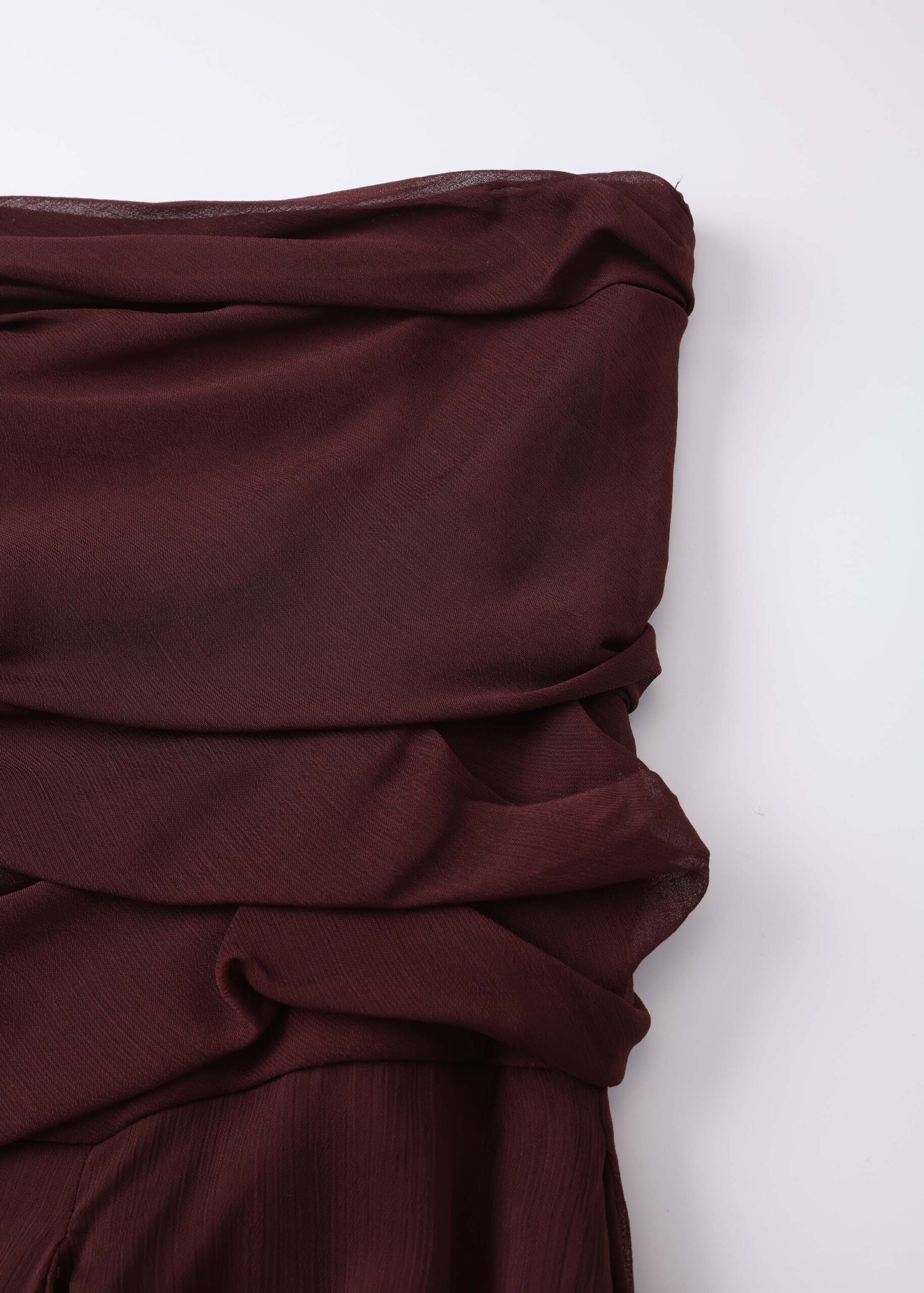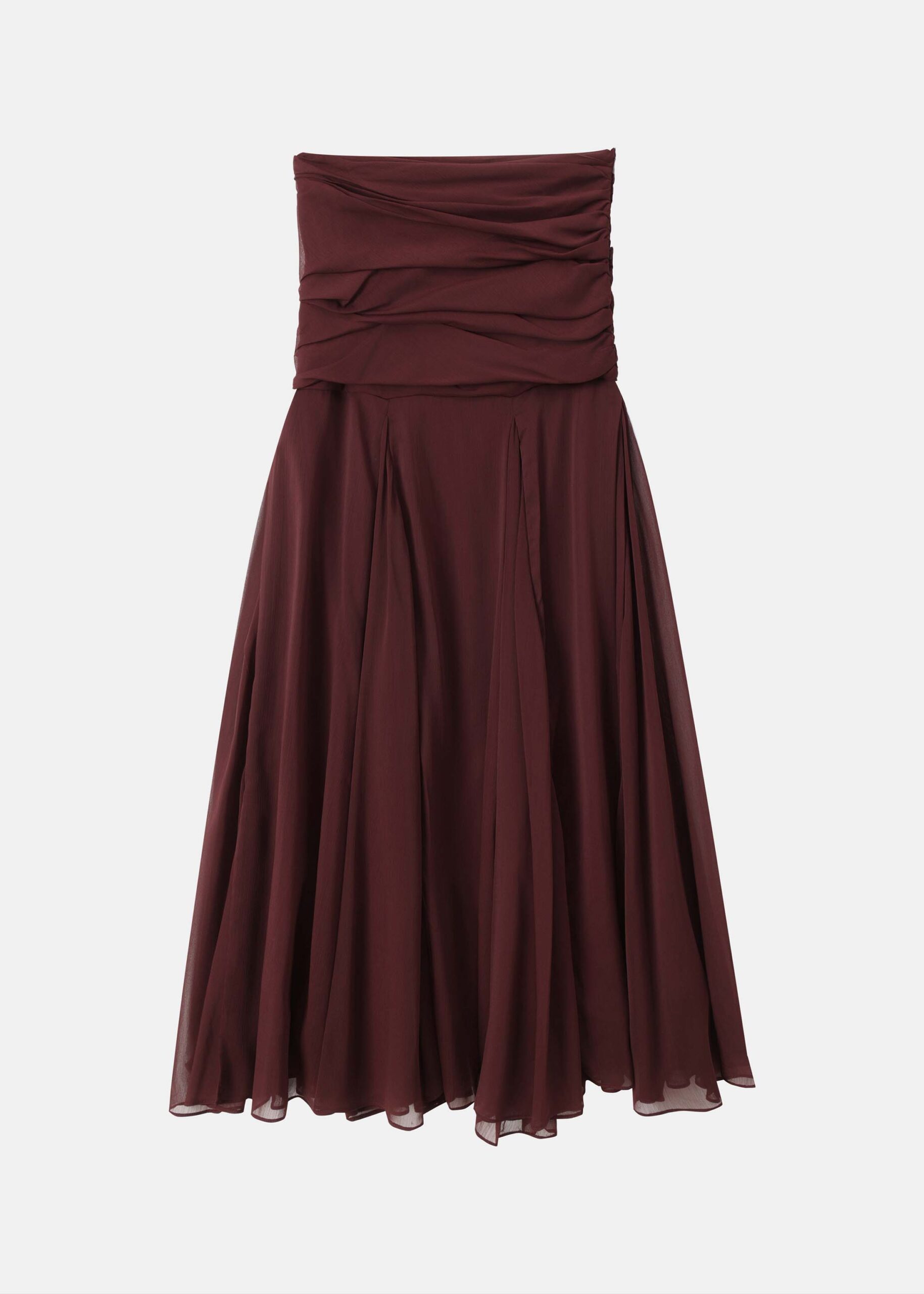 Women skirt, maxi, chiffon, lined, high-waisted, draped design, A-line, flowing pleats, unique and modern