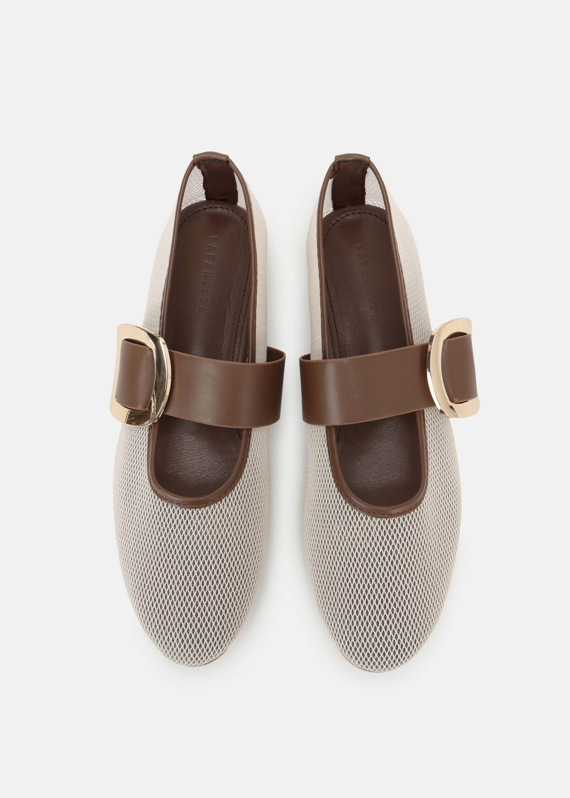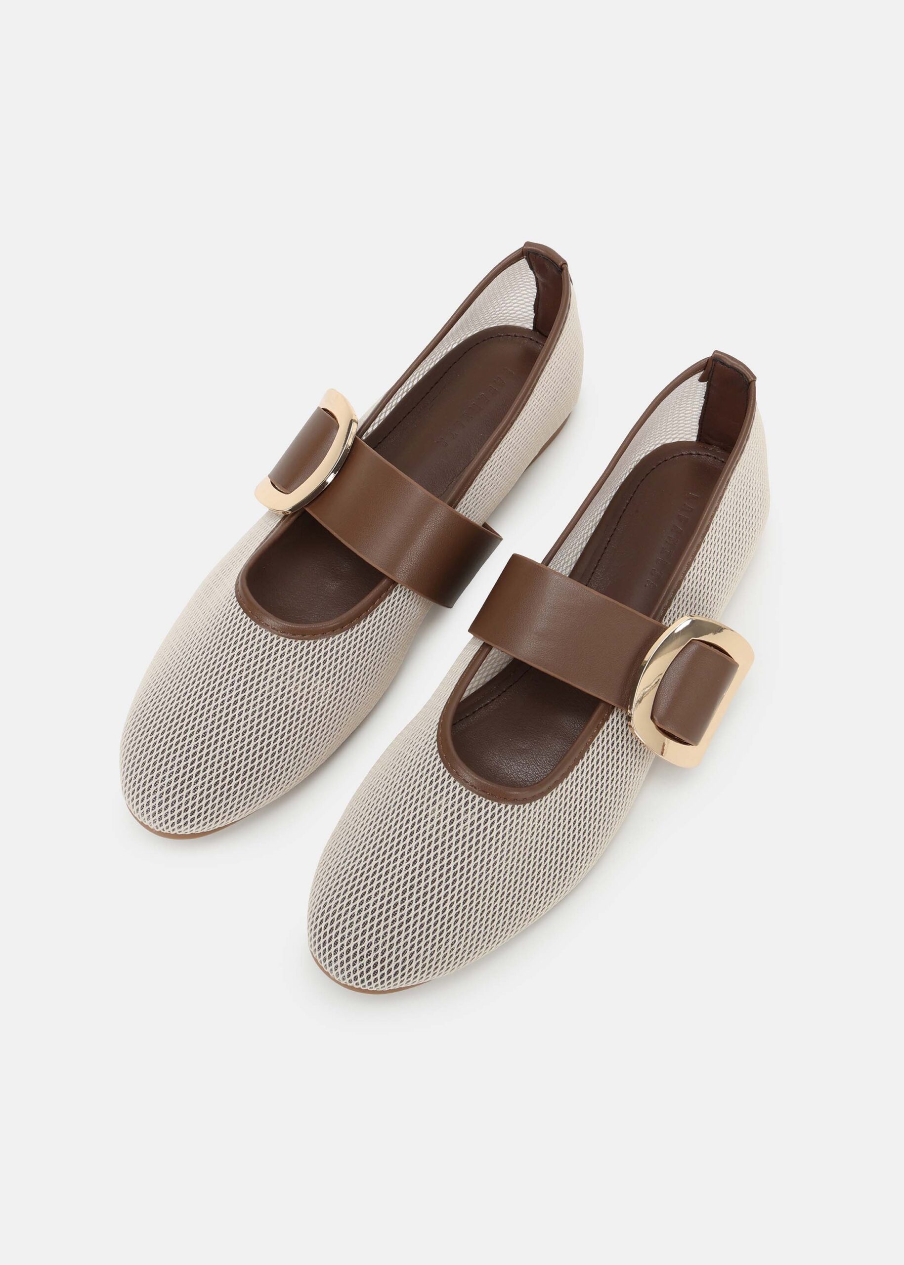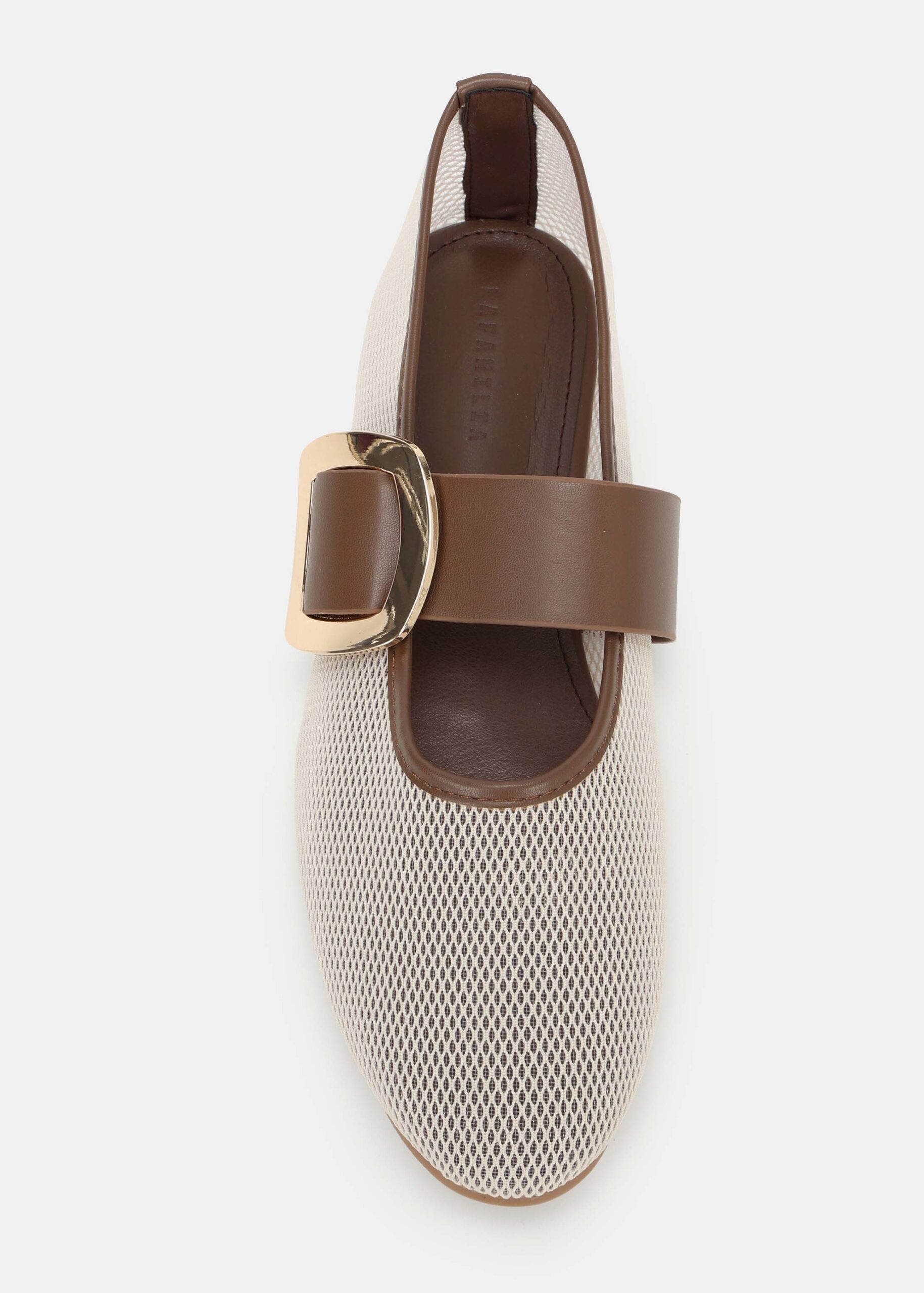 Women shoes, ballerina, flat sole, mesh fabric, leather strap with side metal buckle, rounded toe, comfortable and elegant design