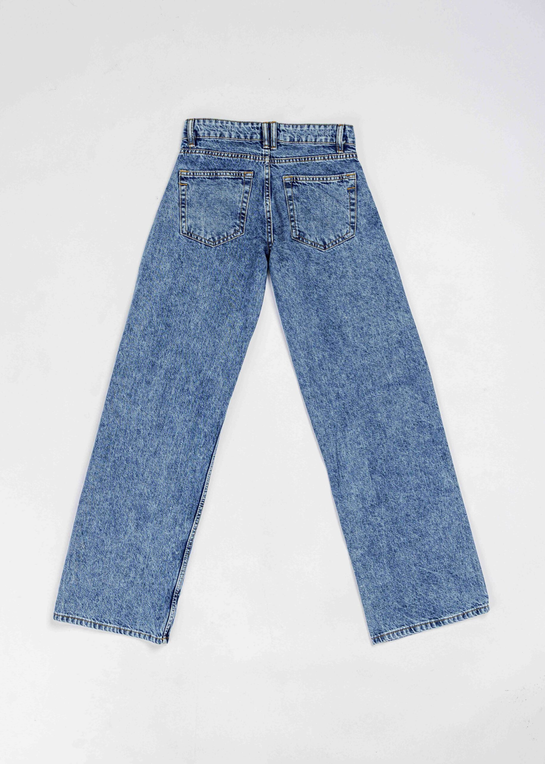 Women trouser, jeans, mid-rise, wide-leg, front button and zipper closure, front and back pockets, unique and modern