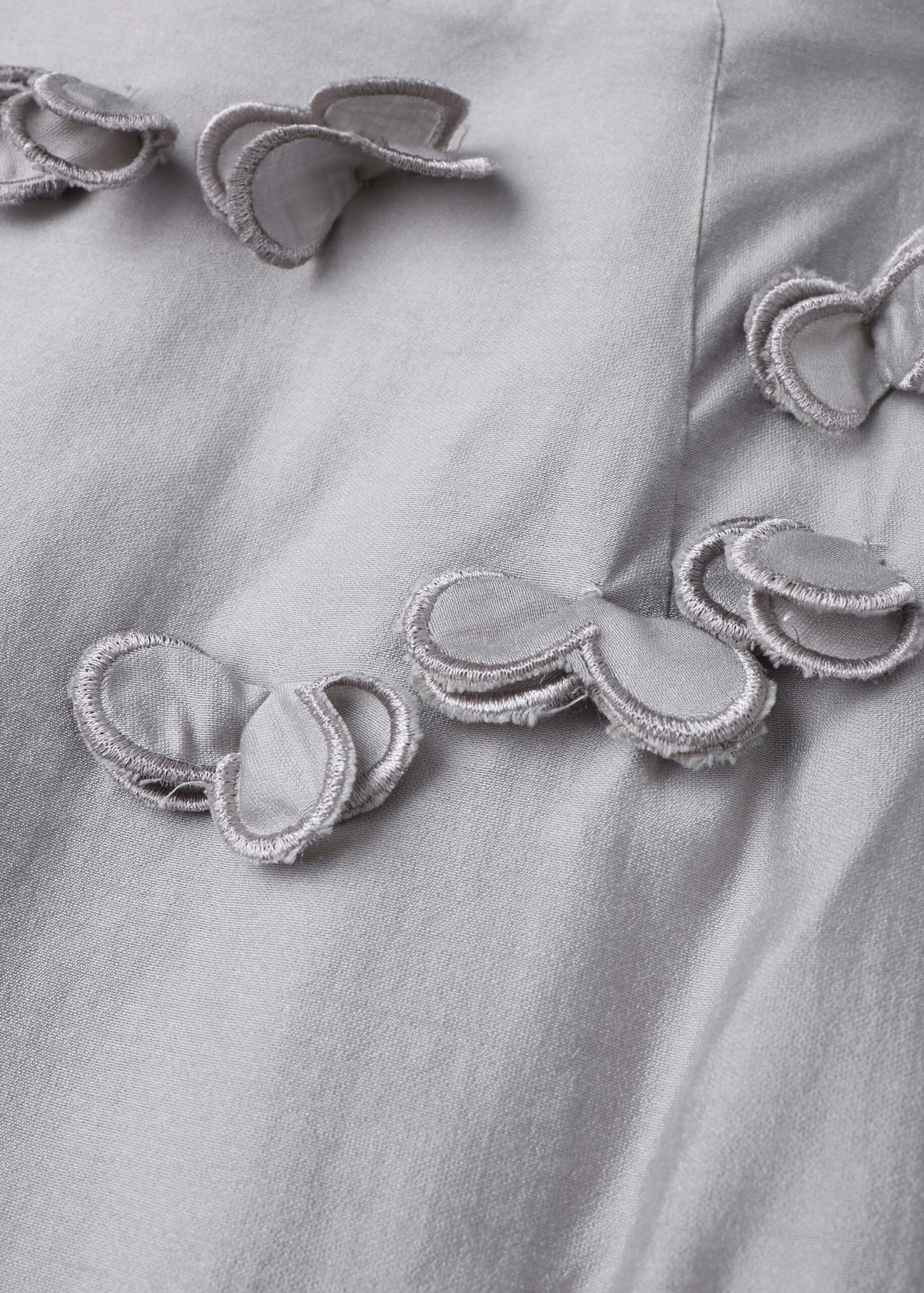 Women skirt, midi, high-waist, floral appliques, back zipper closure, back slit, unique and modern
