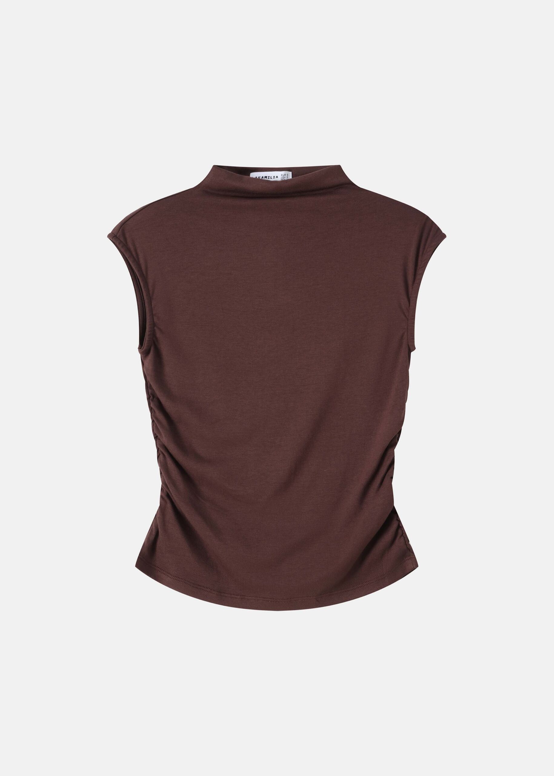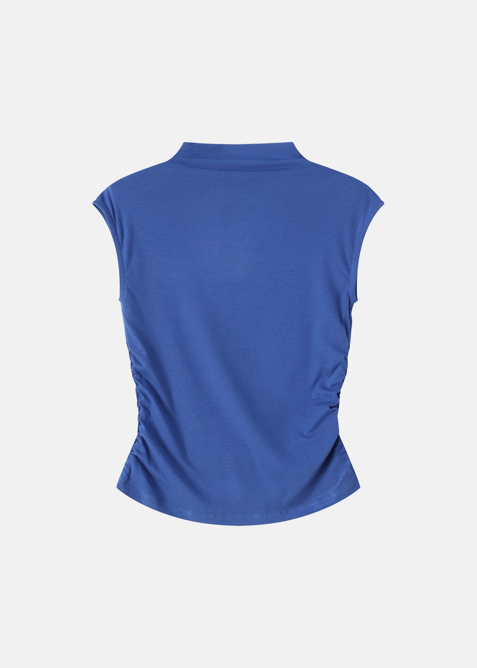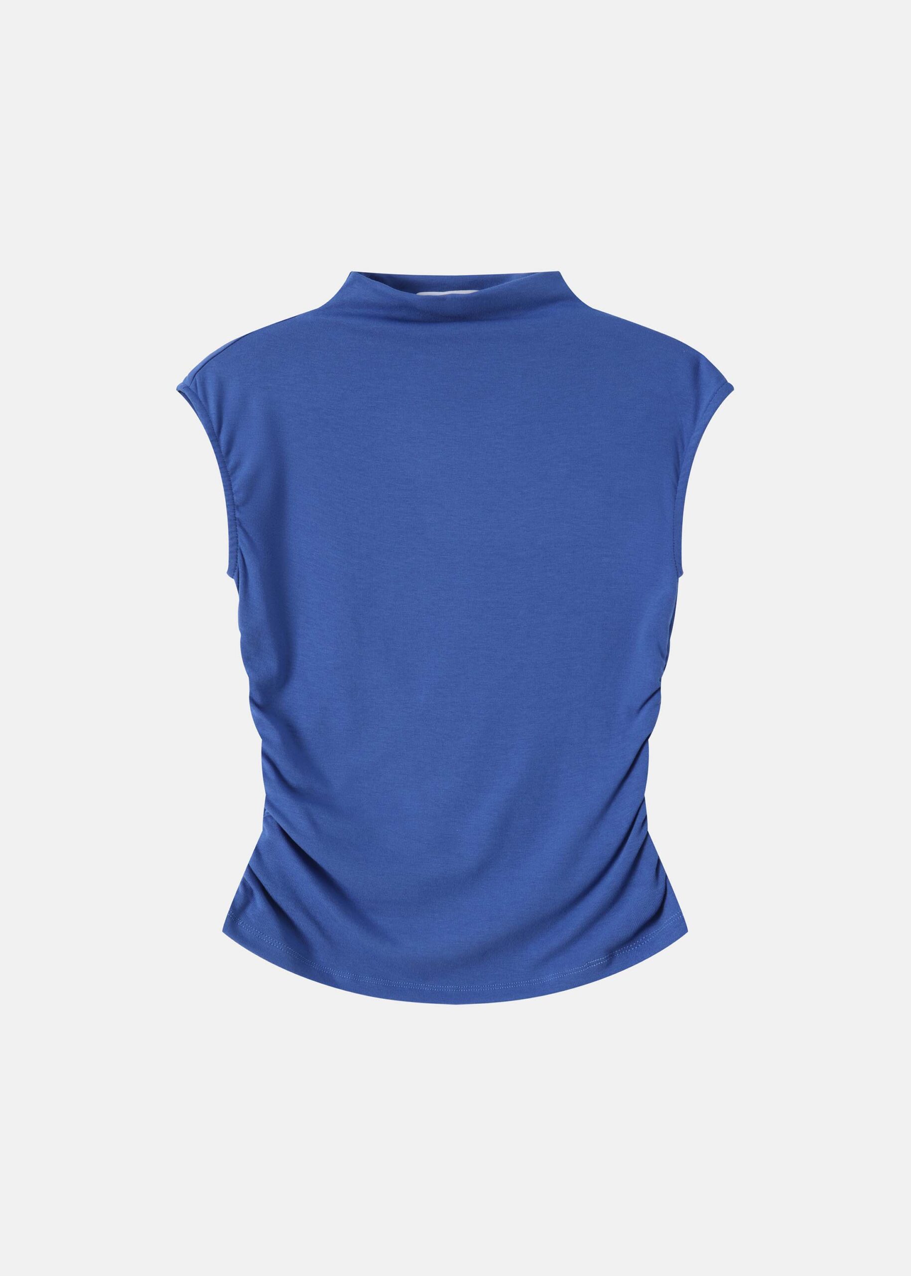 Women top, mock-neck, sleeveless, side pleats, unique and modern