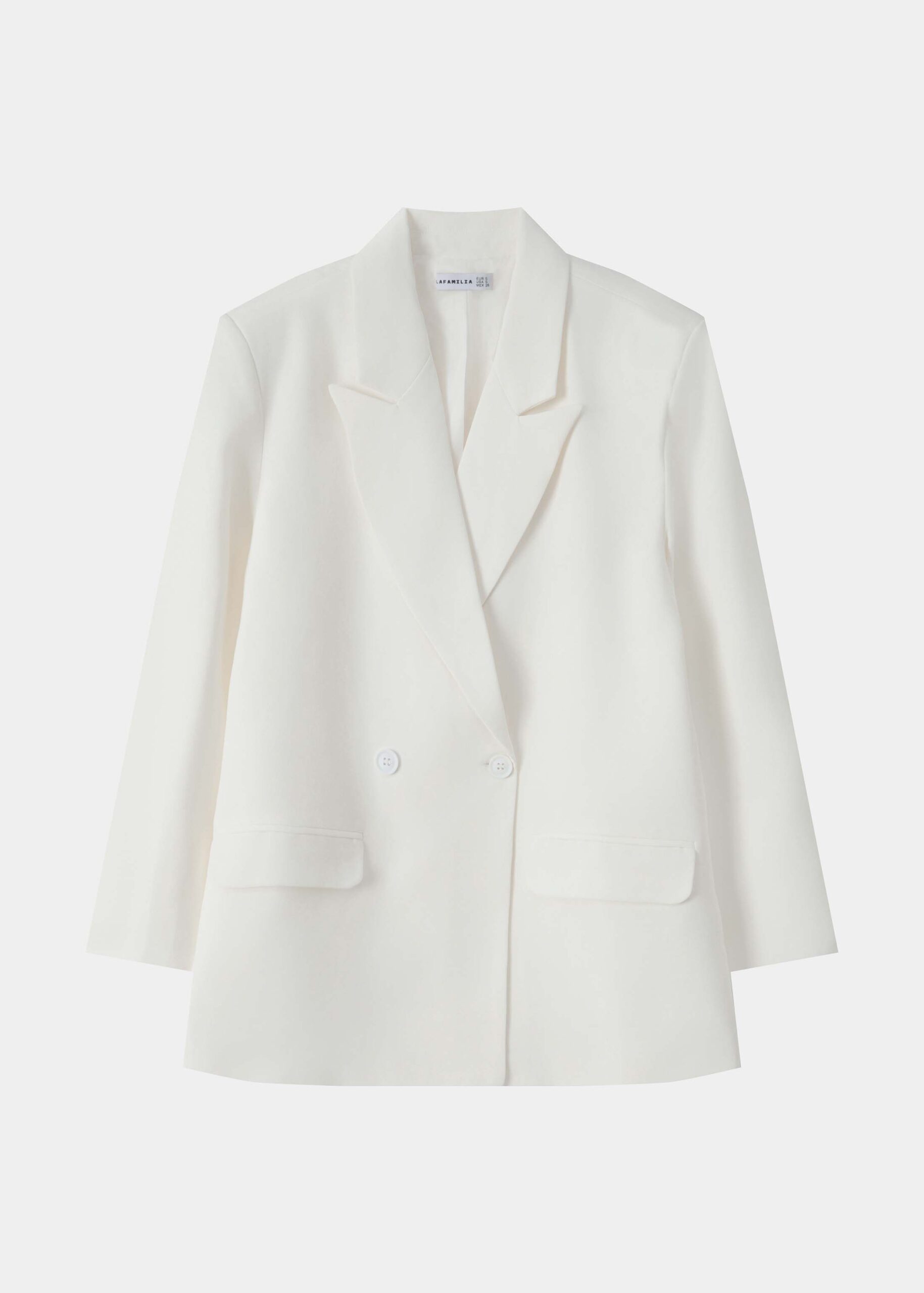 Women blazer, plain, lapel collar, front buttons to close, long sleeves, front flap pockets, unique and modern