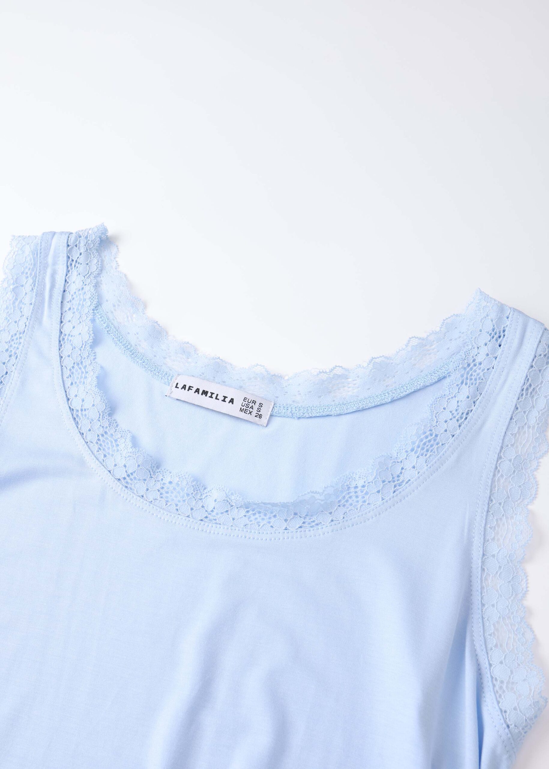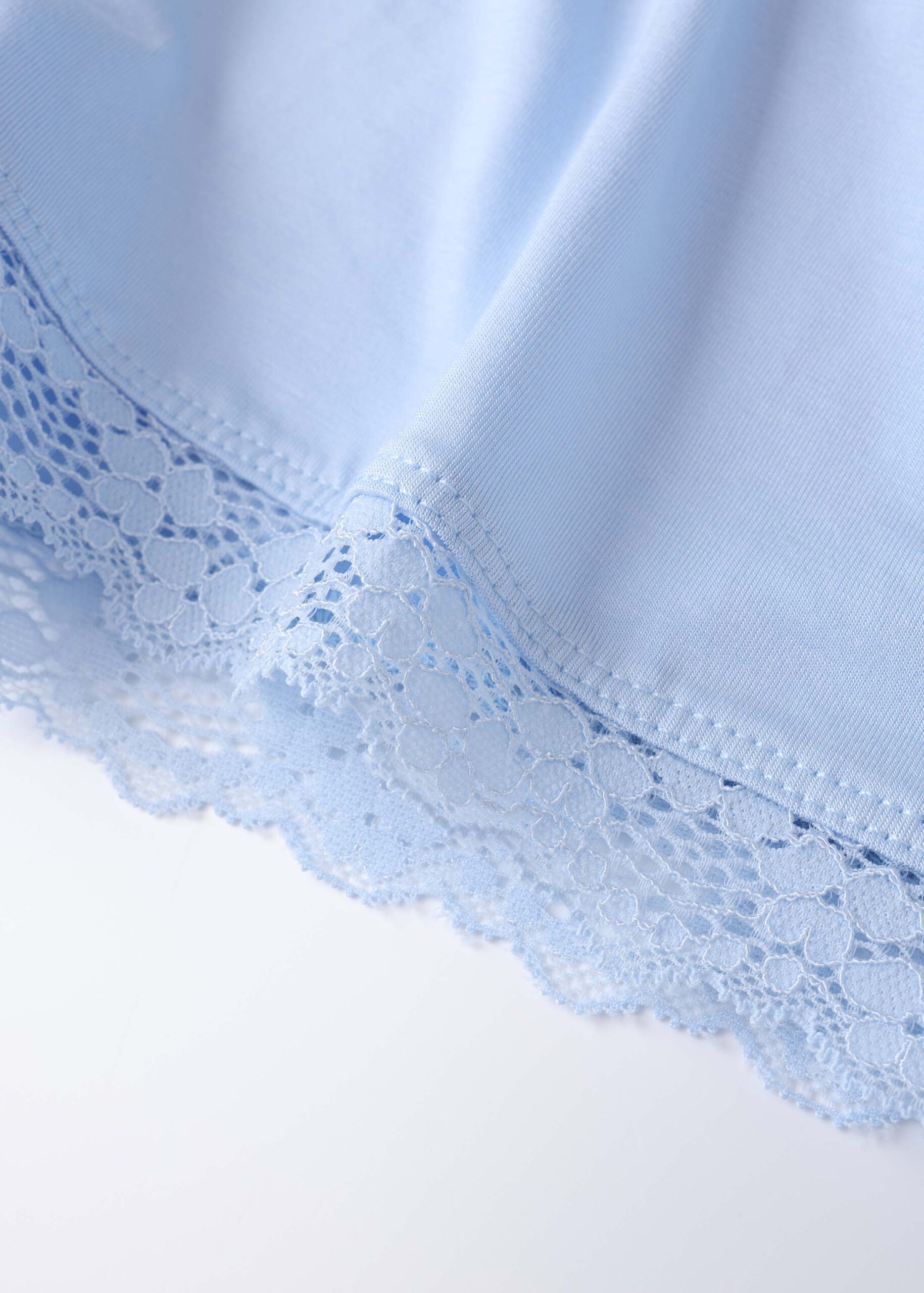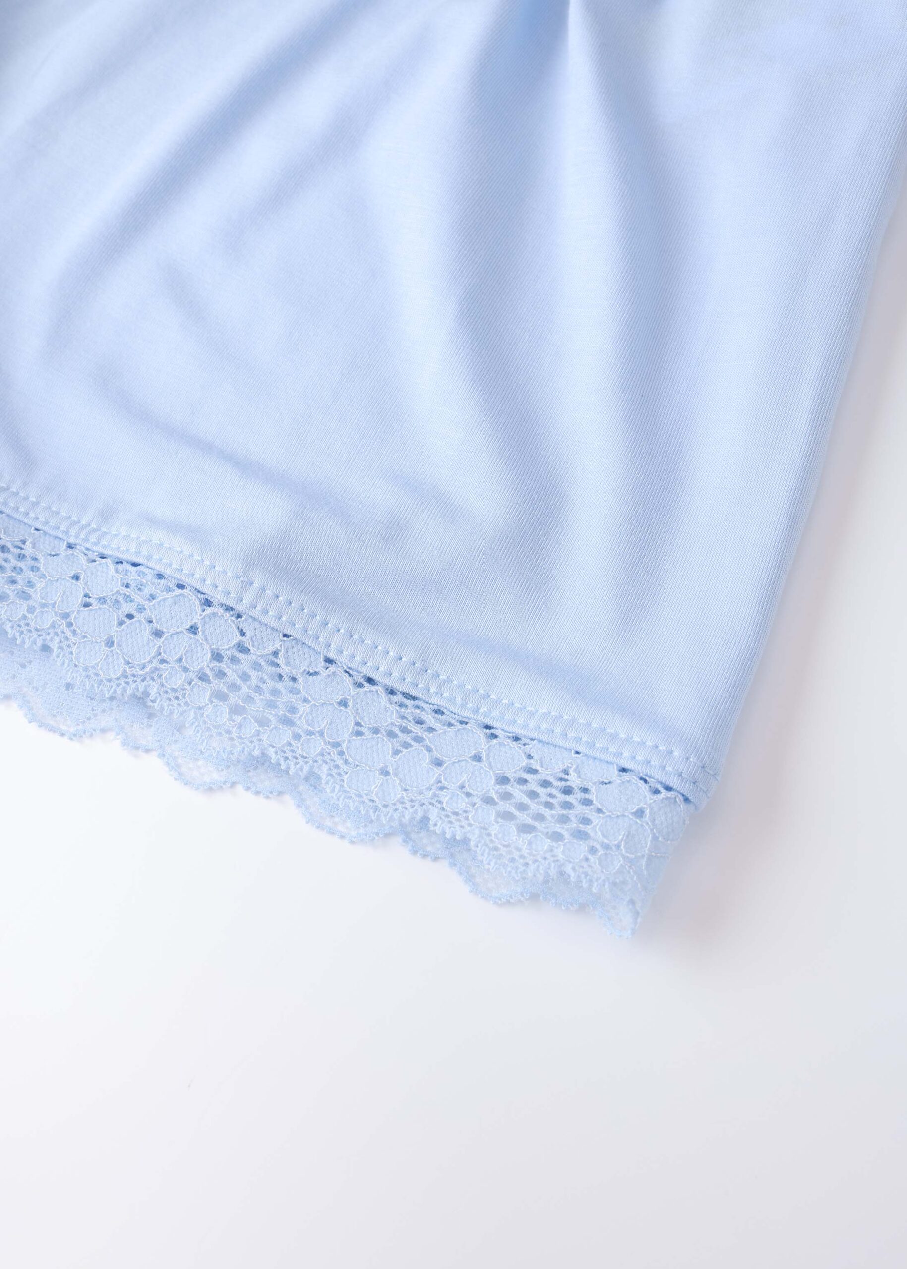 Women pajama, two-pieces, top, sleeveless, round neck, lace-trim detail, short, elastic waist, comfortable and practical