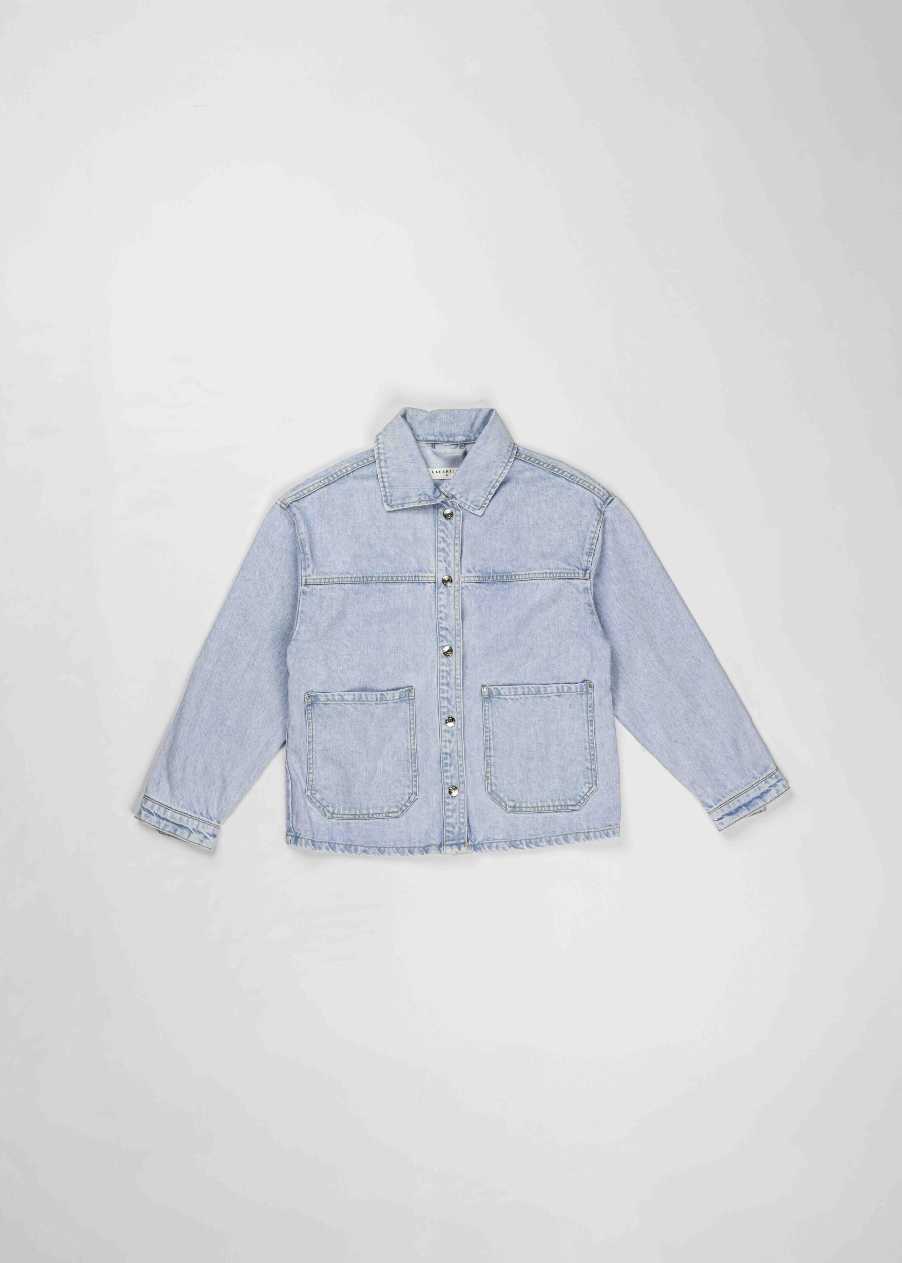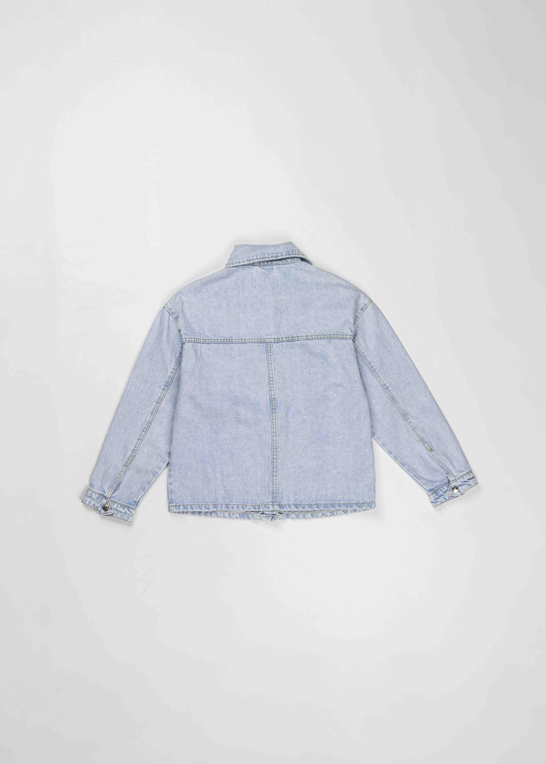 Women jacket, denim, rolled collar, long sleeves with tight cuff, front patch pockes, unique and practical