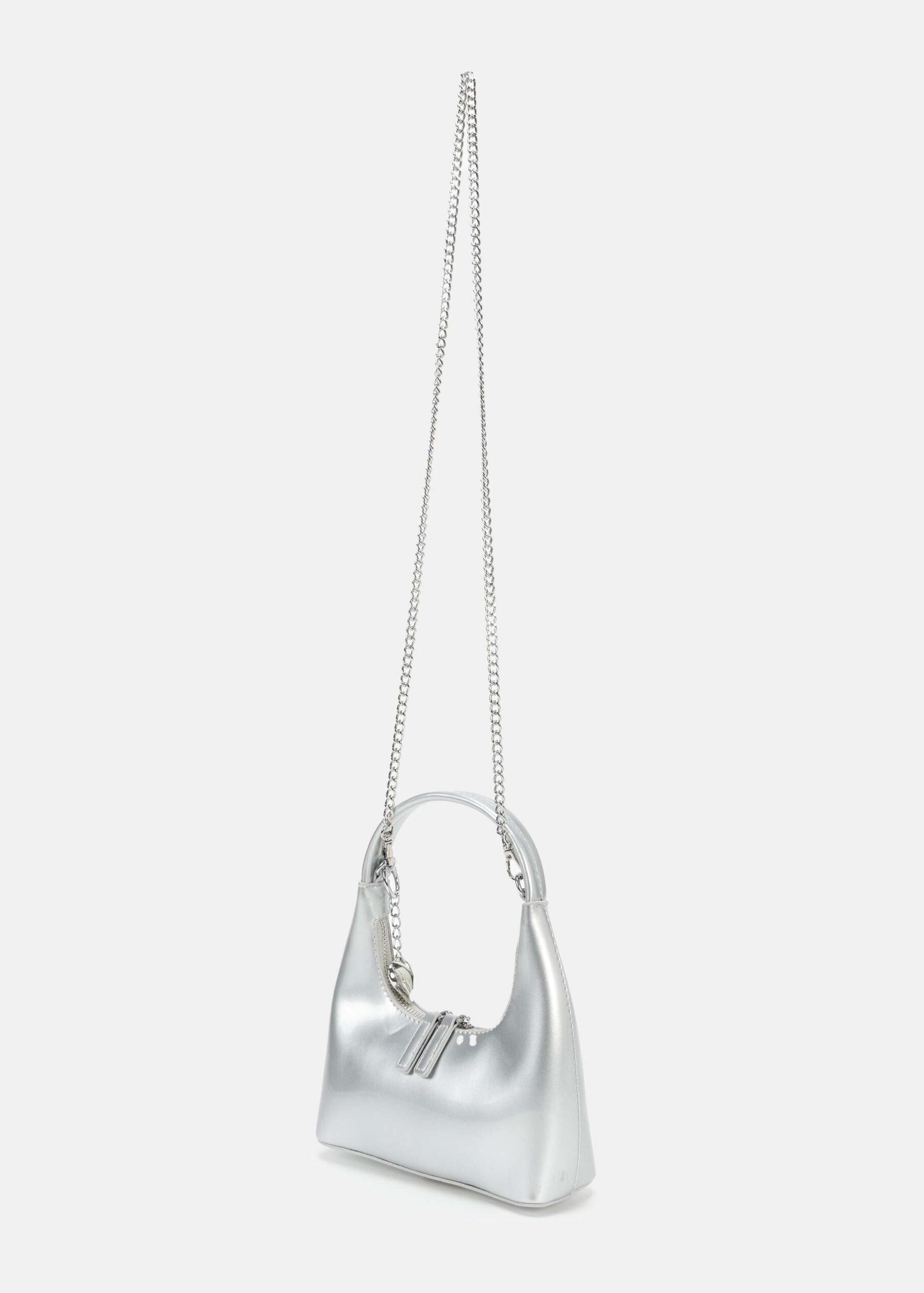Women bag, patent-leather, upper zip closure,hand strap, chain shoulder strap, unique and modern