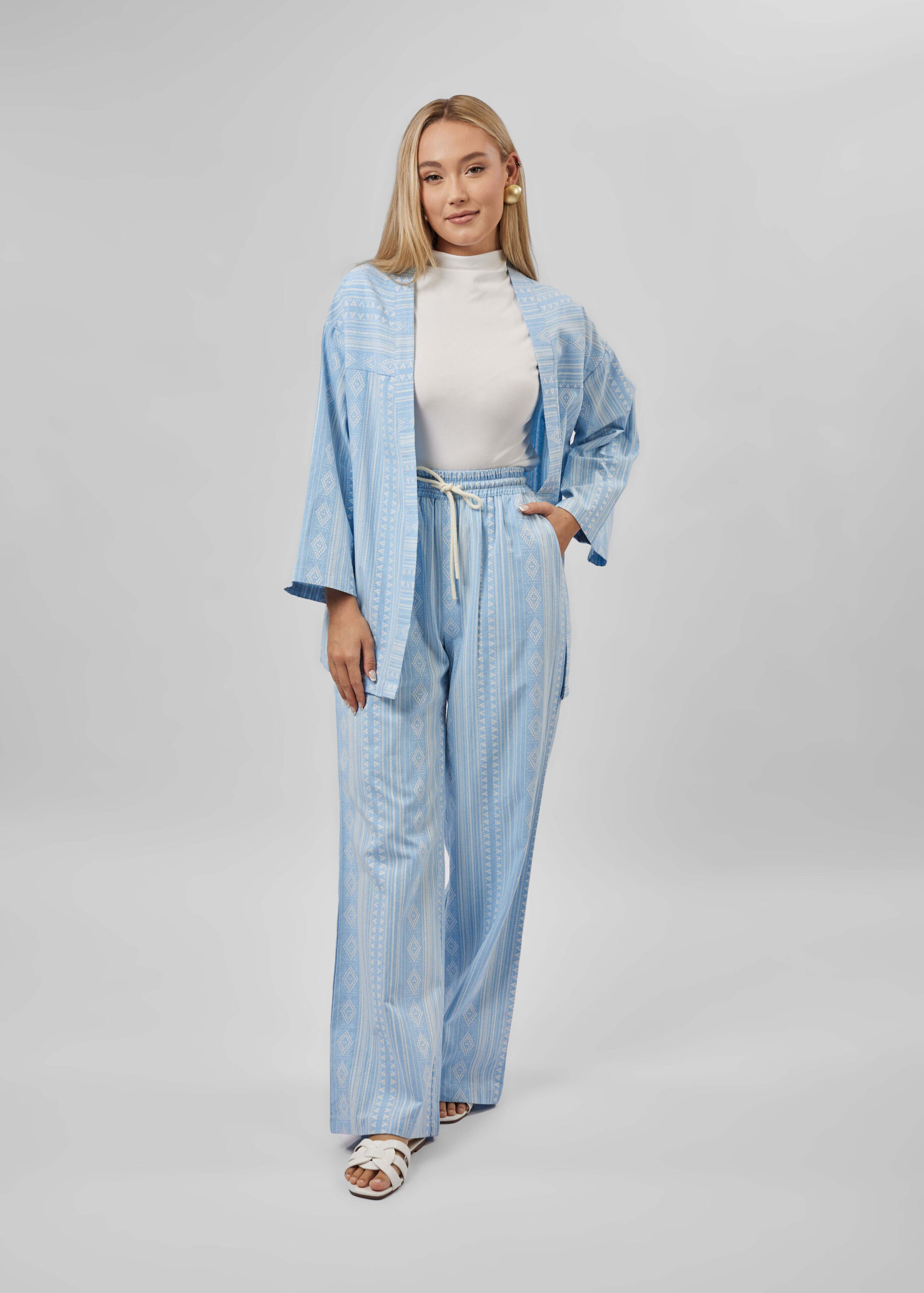Women trouser, flow, patterned, elastic waist with front tie, front pockets, practical and unique