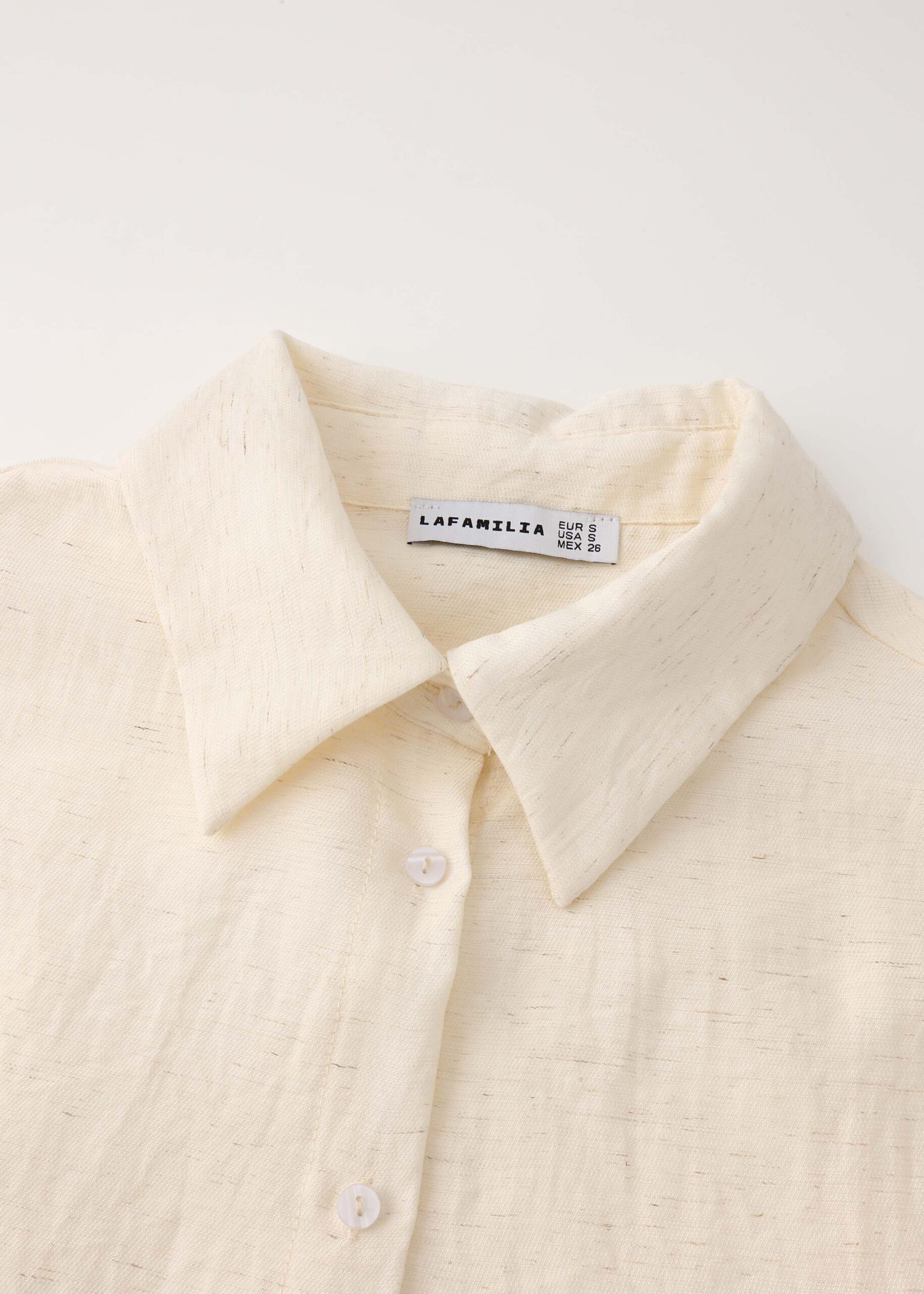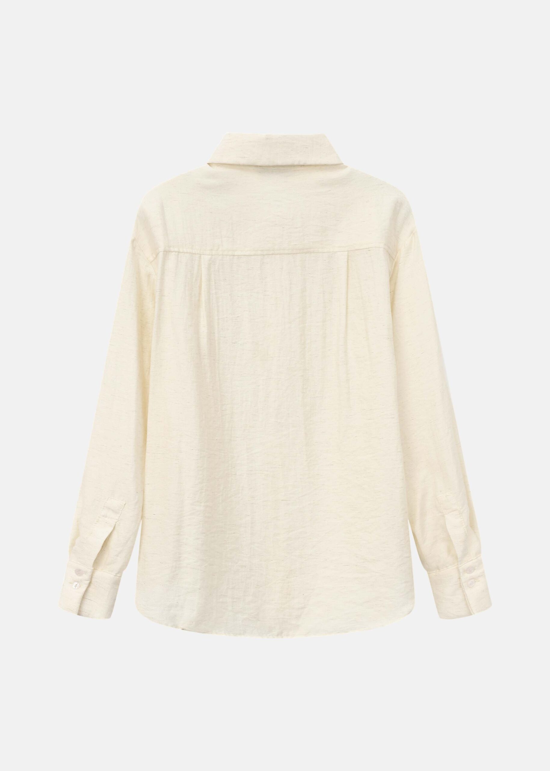 Women shirt, patterned, front buttons to close, rolled collar with front button, long sleeves with tight cuff, unique and modern