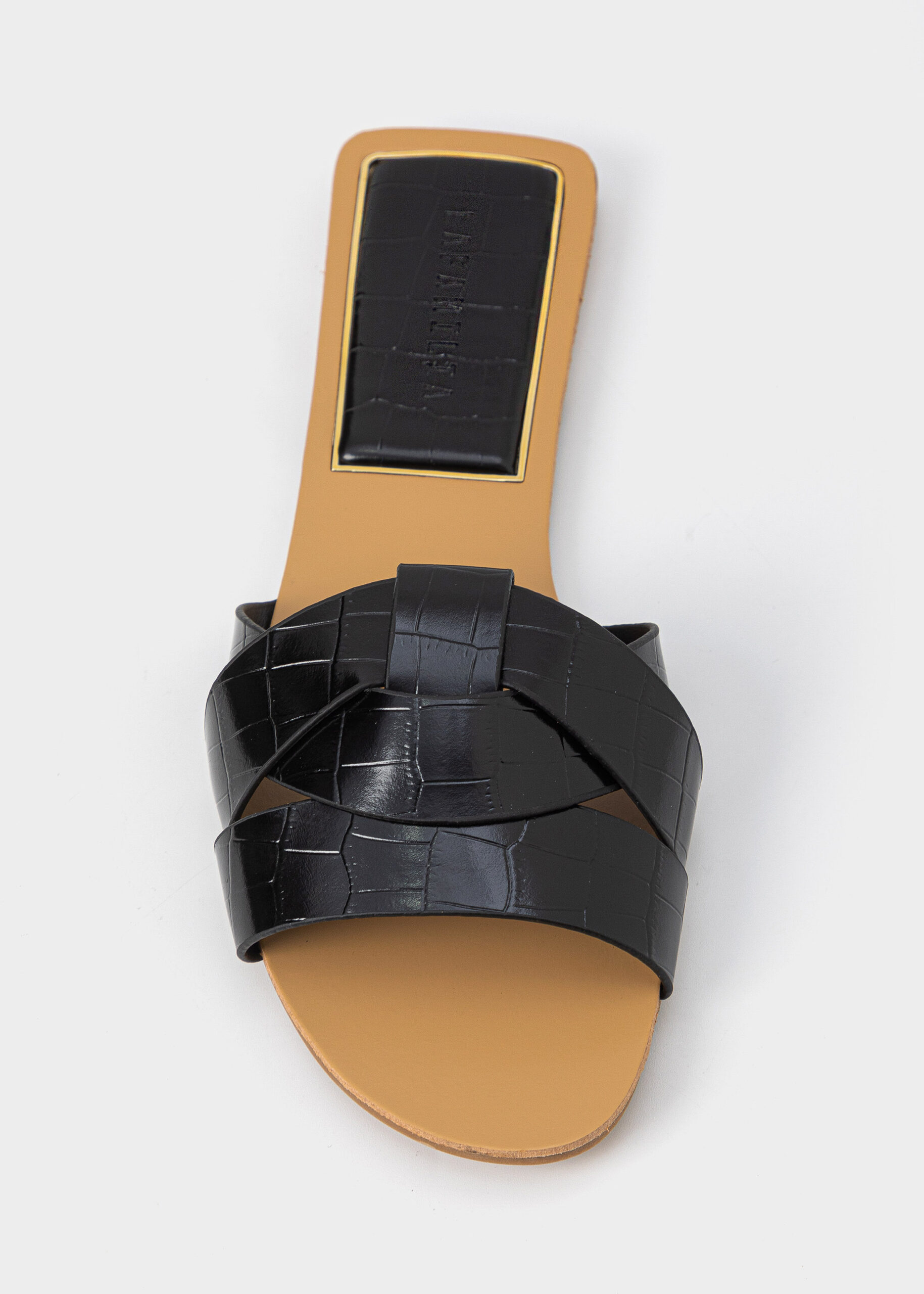 Women slipper, patterned, open round toe, upper straps, flat, unique and comfortable