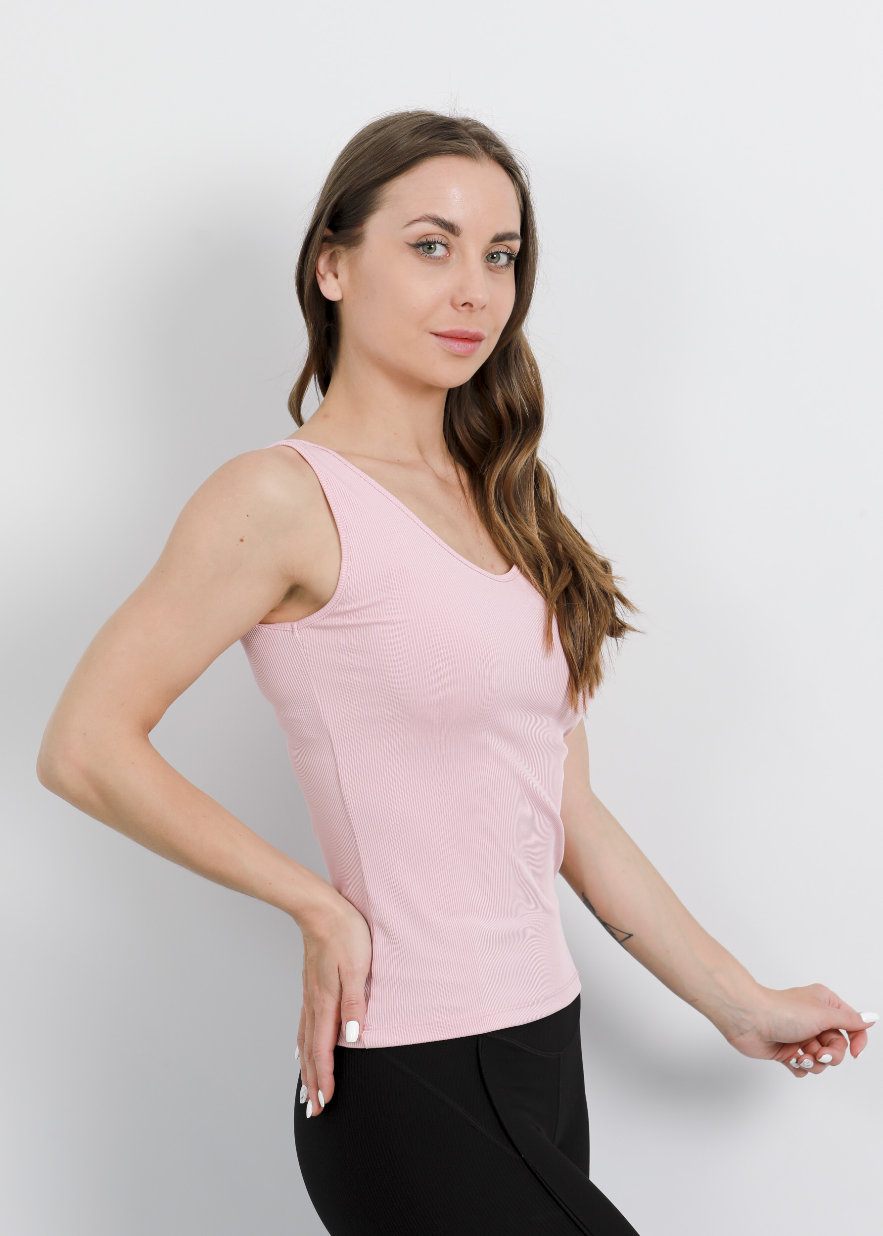 Women top, plain, basic, sleeveless, V neck, ribbed knit, comfortable and practical, 95% Polyester 5% Spandex