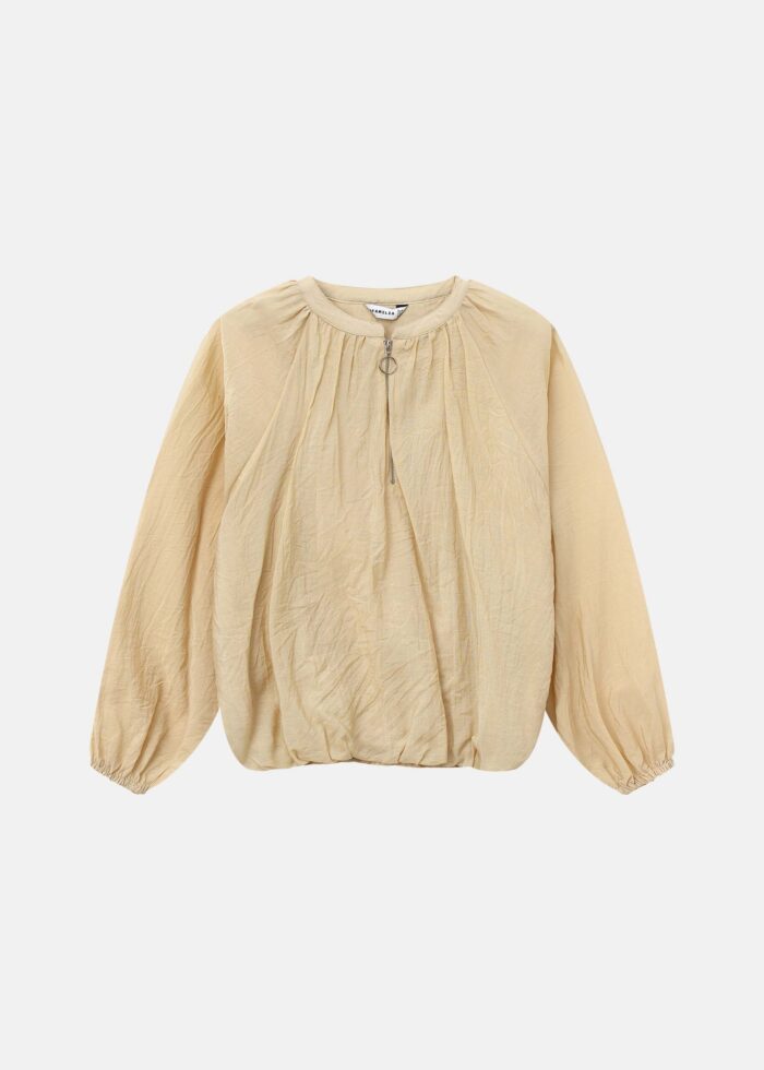 Women blouse, plain, round neck with front zipper closure, long sleeves with tight cuff, practical and unique