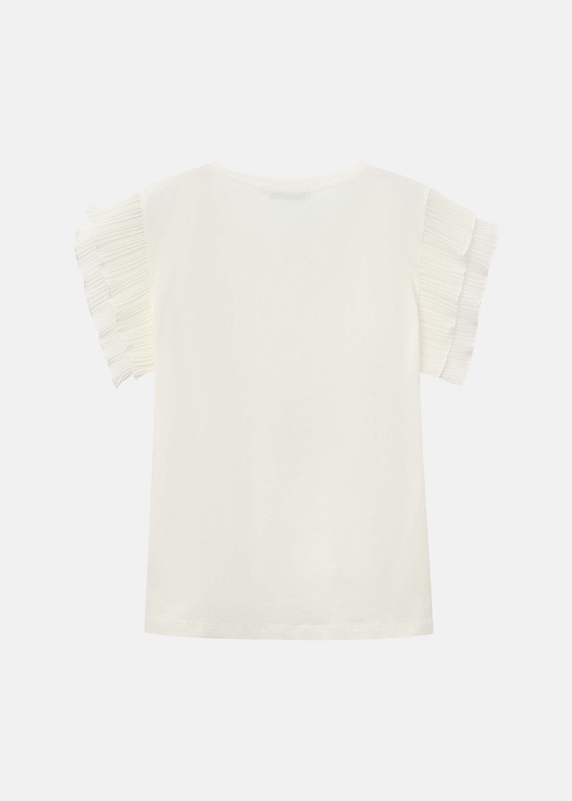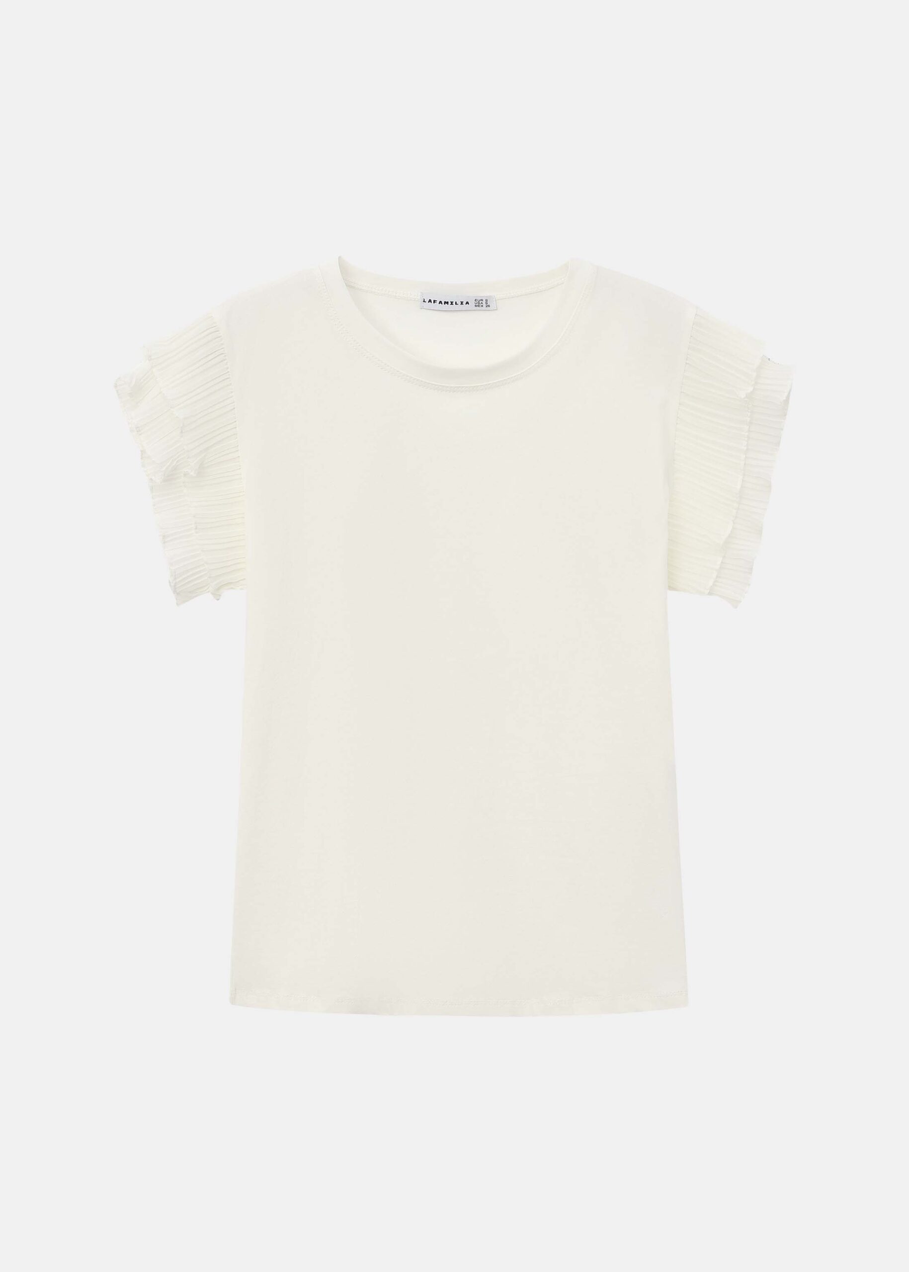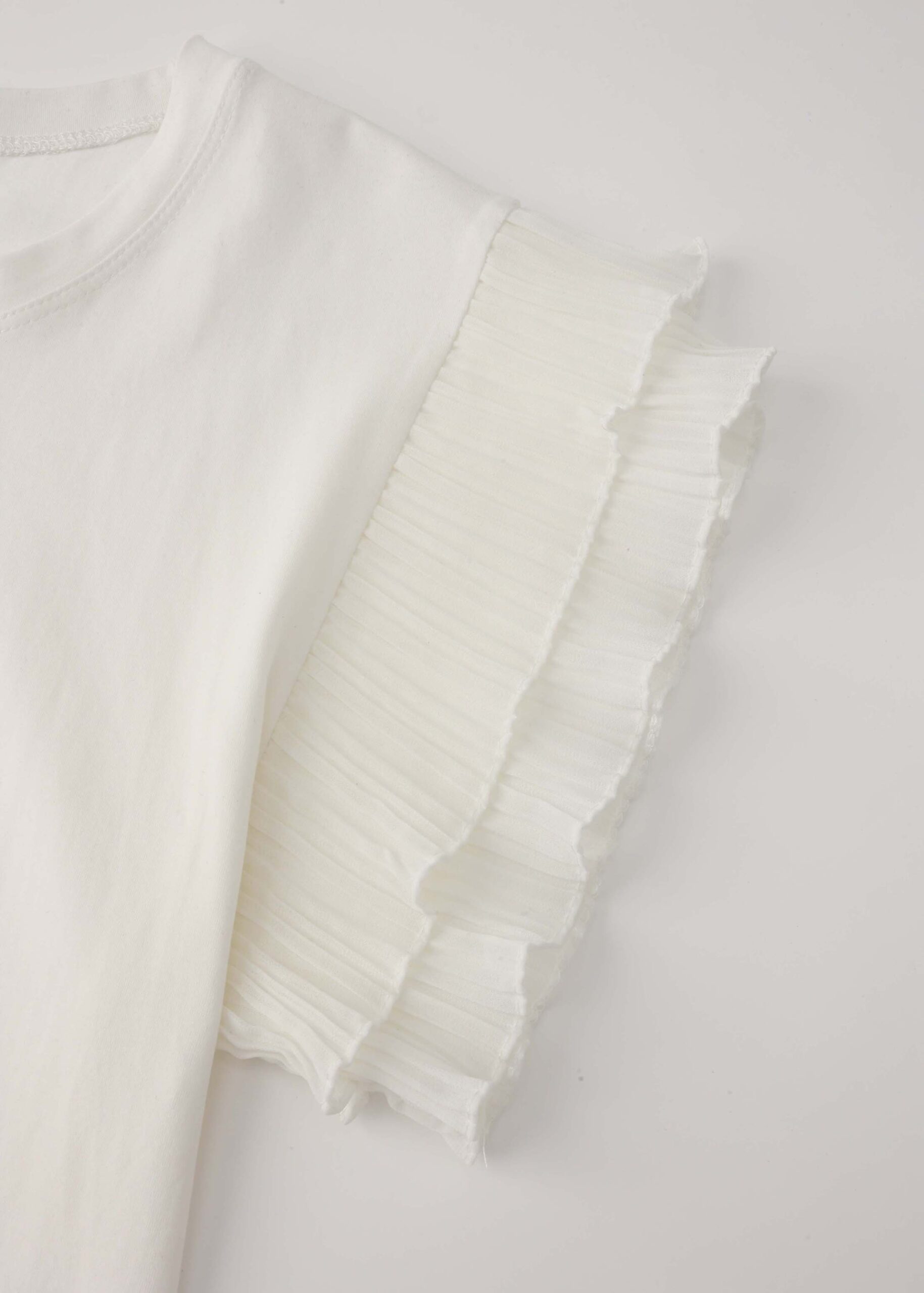 Women blouse, plain, round neck, short ruffled sleeves, unique and practical