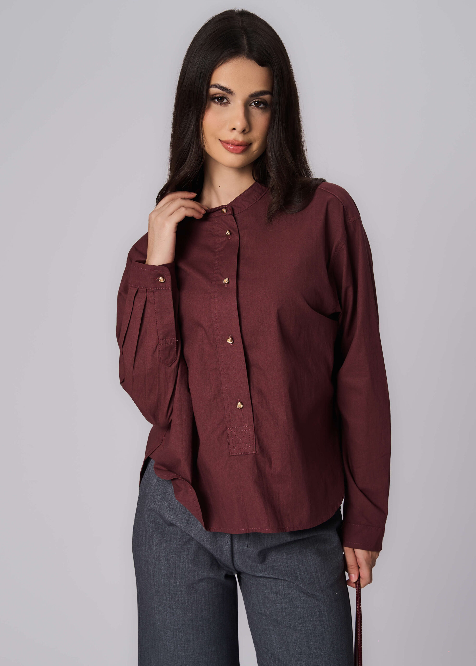 Women blouse, plain, stand collar, front buttons to close, long sleeves, unique and practical