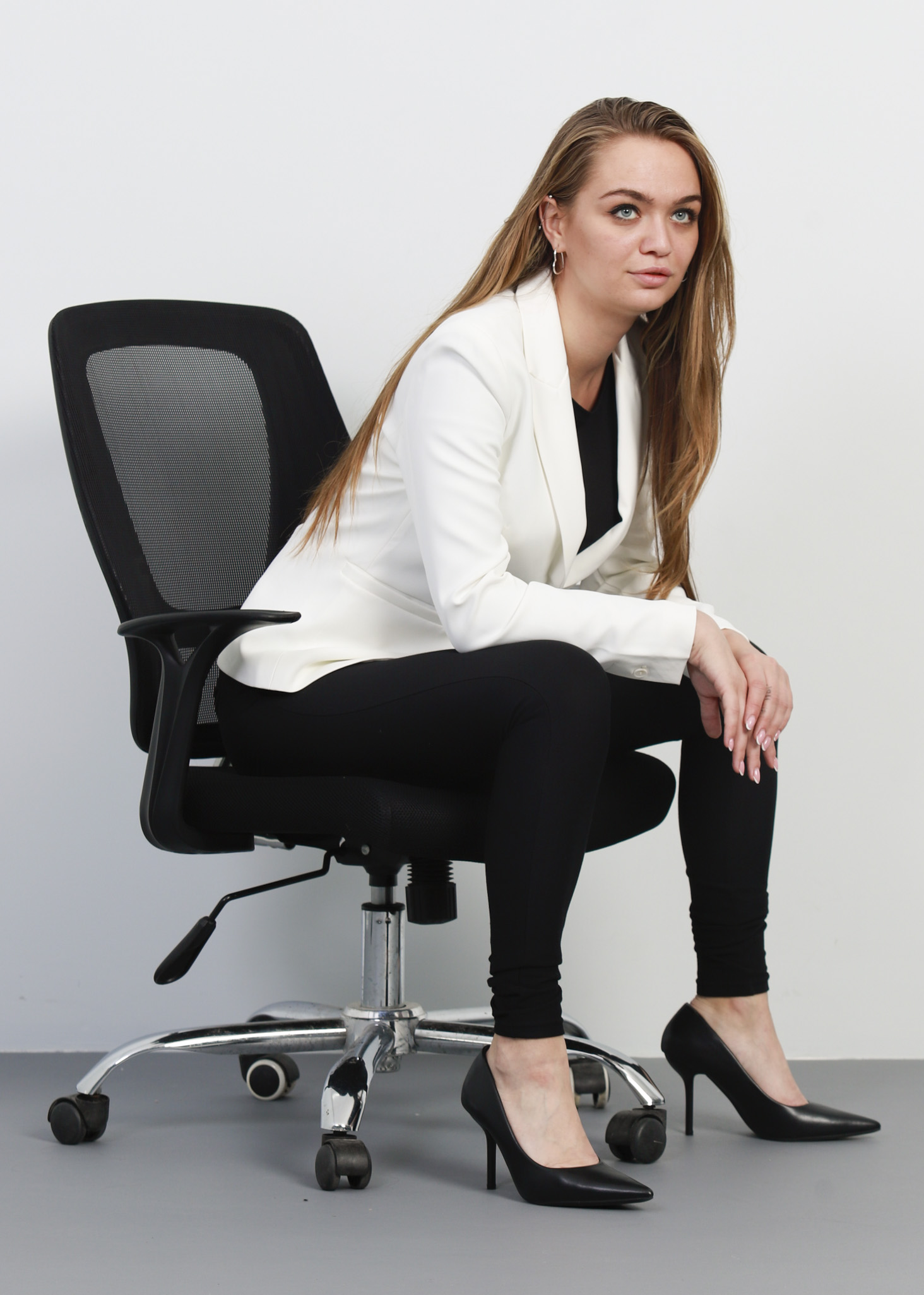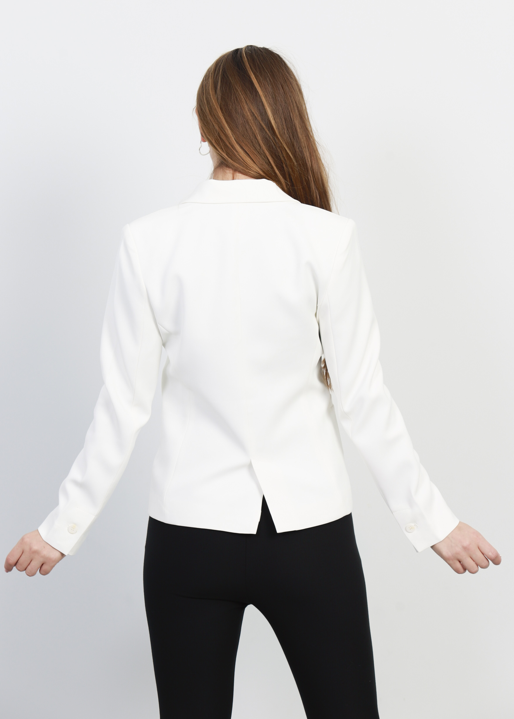 Women blazer, plain, formal, long sleeves with fake button, front button to close, V neck, rolled collar, fake pockets, unique and modern, 95% Polyester 5% Spandex