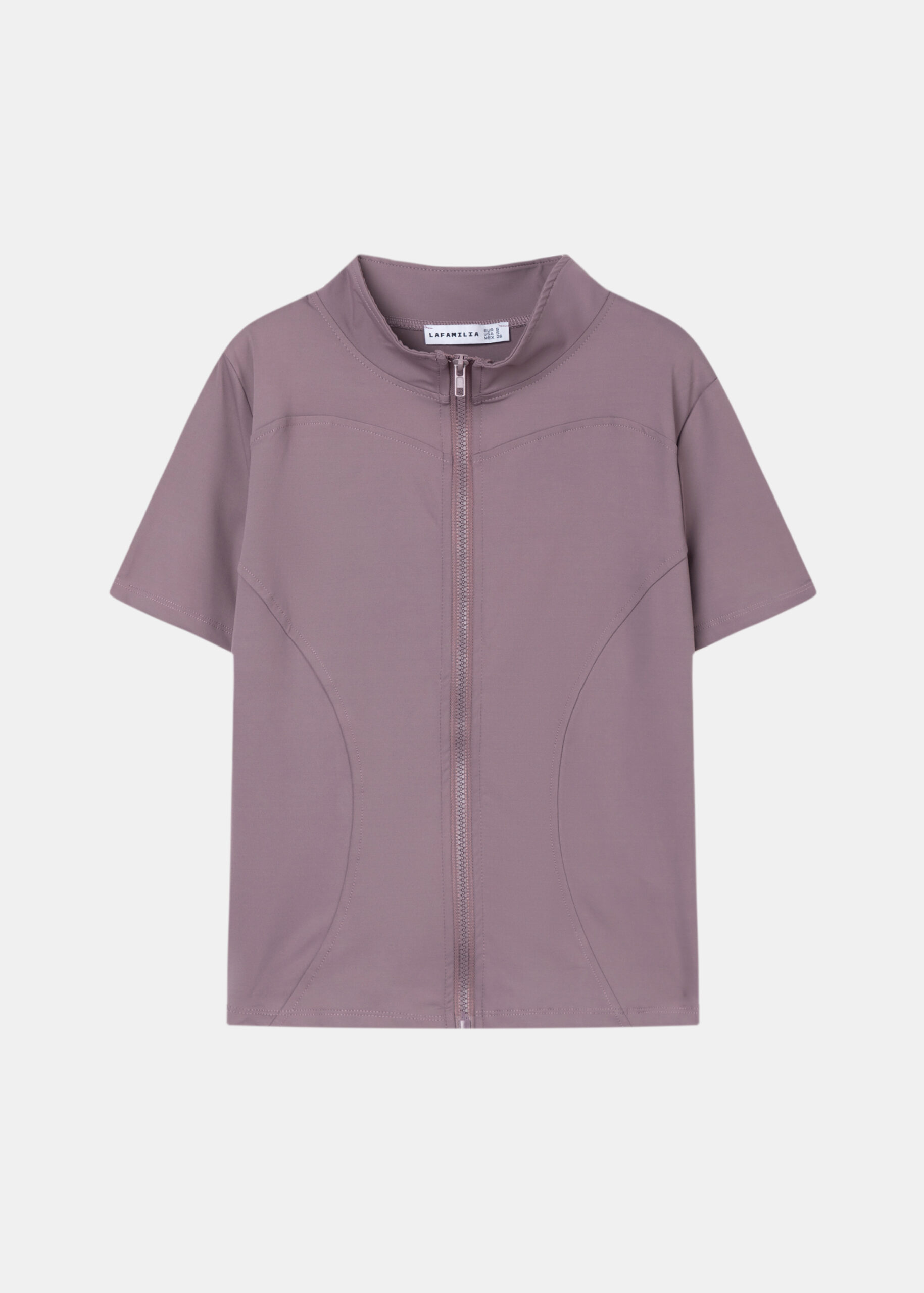 Women jacket, plain, front zipper closure, stand collar, short sleeves, practiacl and comfortable