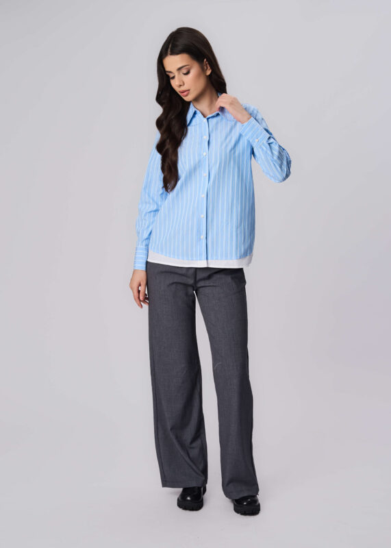 Women blouse, plain, knitted design, long sleeves, high neck, unique, 60% Viscose 40% Nylon
