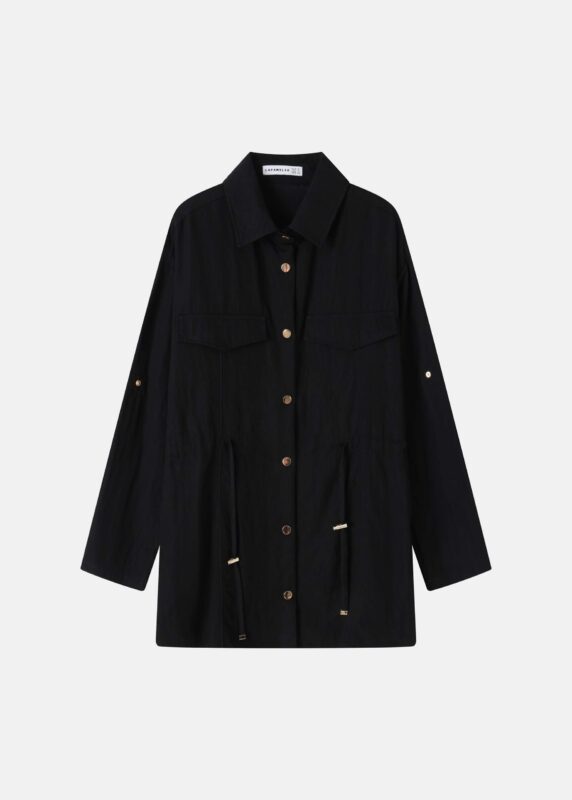 Women blouse, plain, long, round neck, long sleeves with tight cuff, front pockets, unique and practical