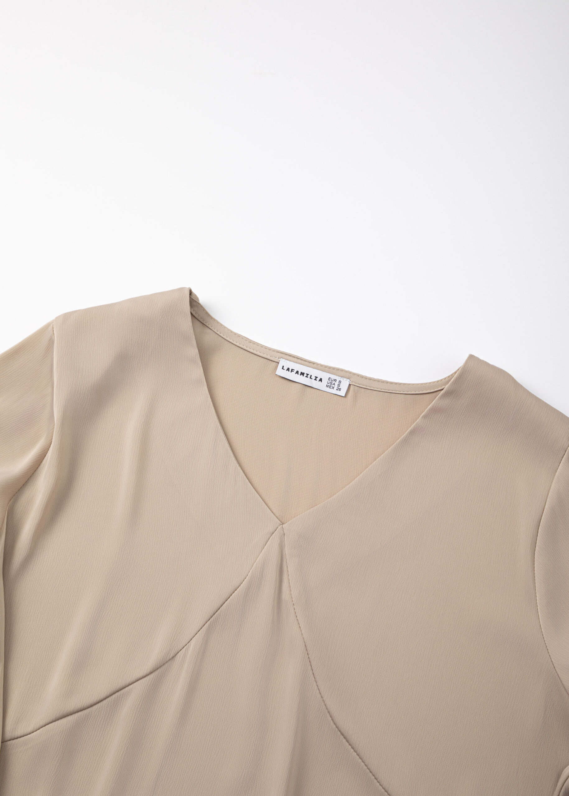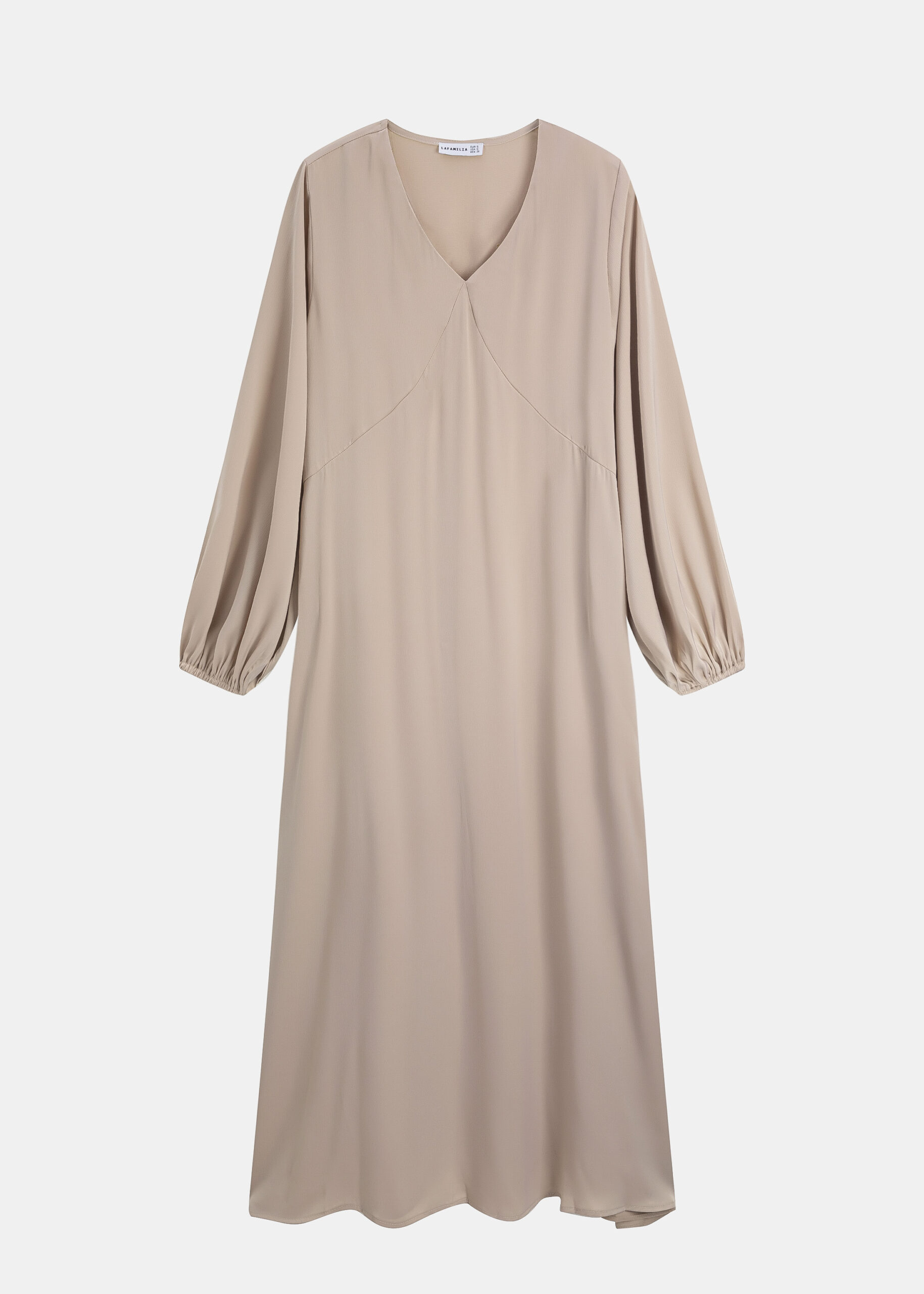Women dress, long, plain, V neck, long sleeves with elastic cuff, practical and unique