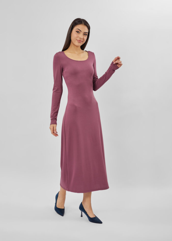 Women dress, long, plain, long sleeves, wide neck, comfortable and practical