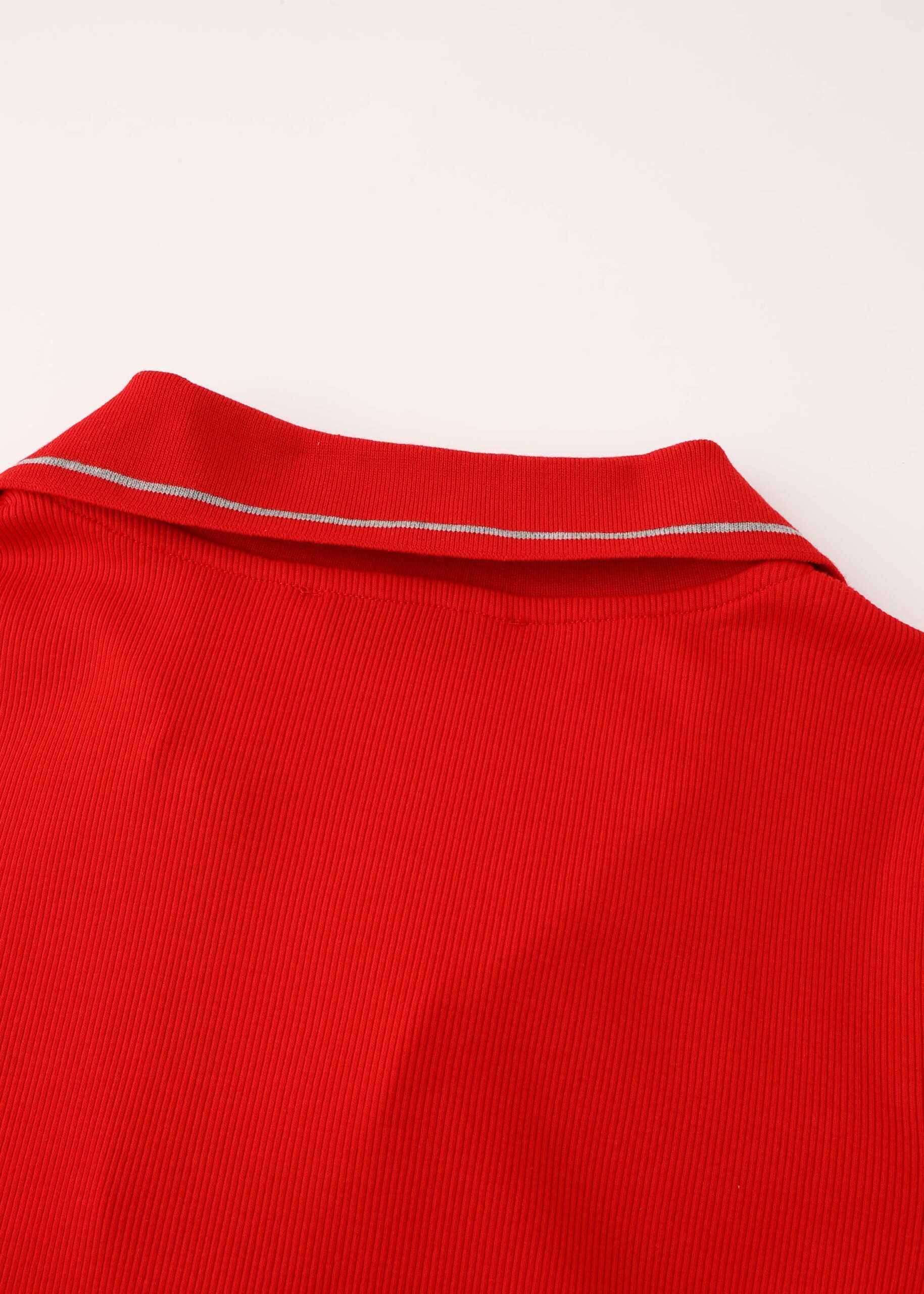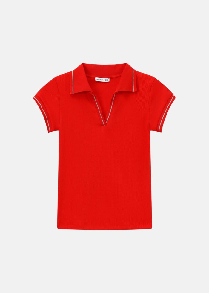 Women polo shirt, plain, rolled collar with V neck, short sleeves, unique and modern