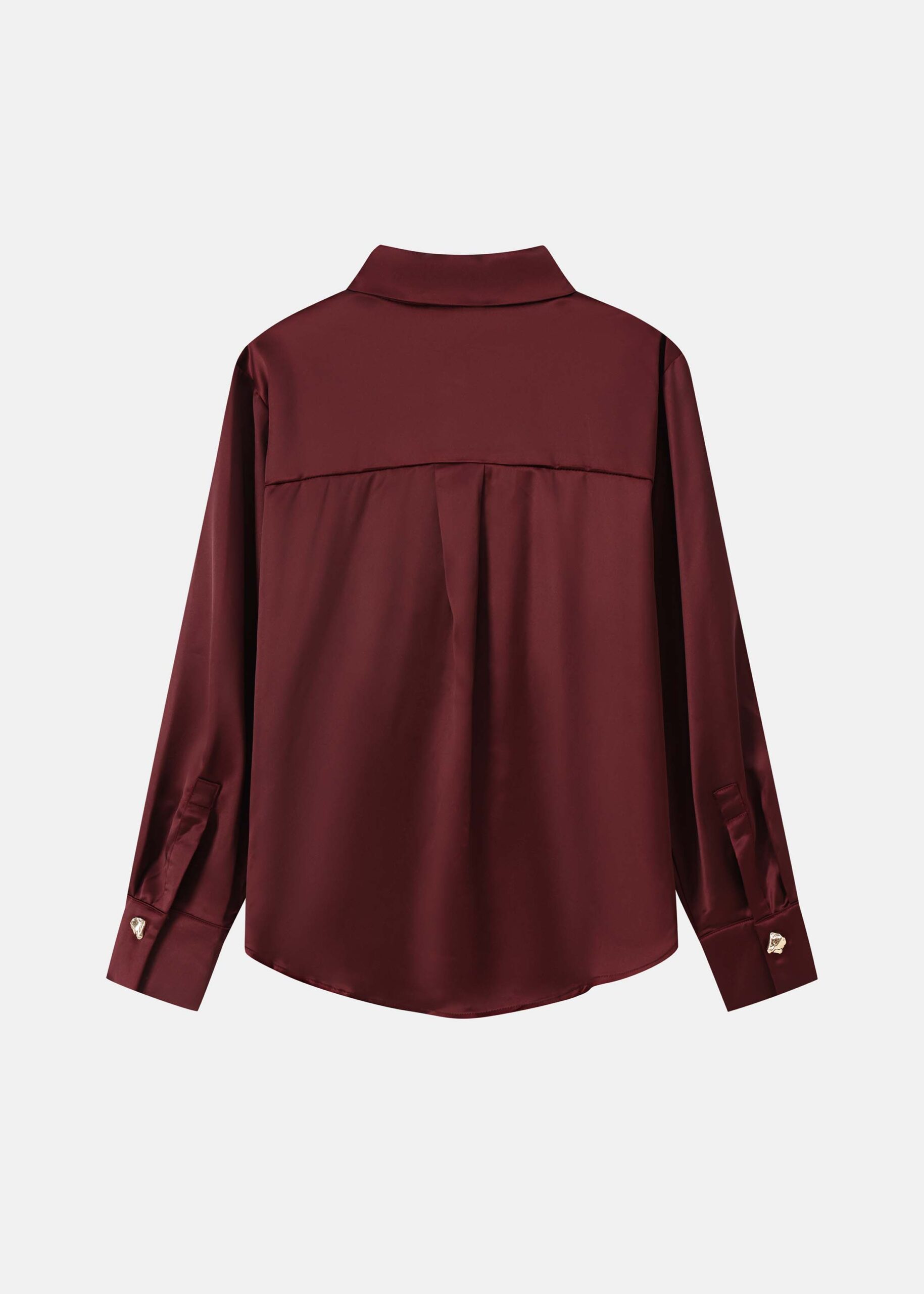 Women shirt, satin, plain, rolled collar with front button, long sleeves, tight cuff with buttons, front buttons to close, unique and practical