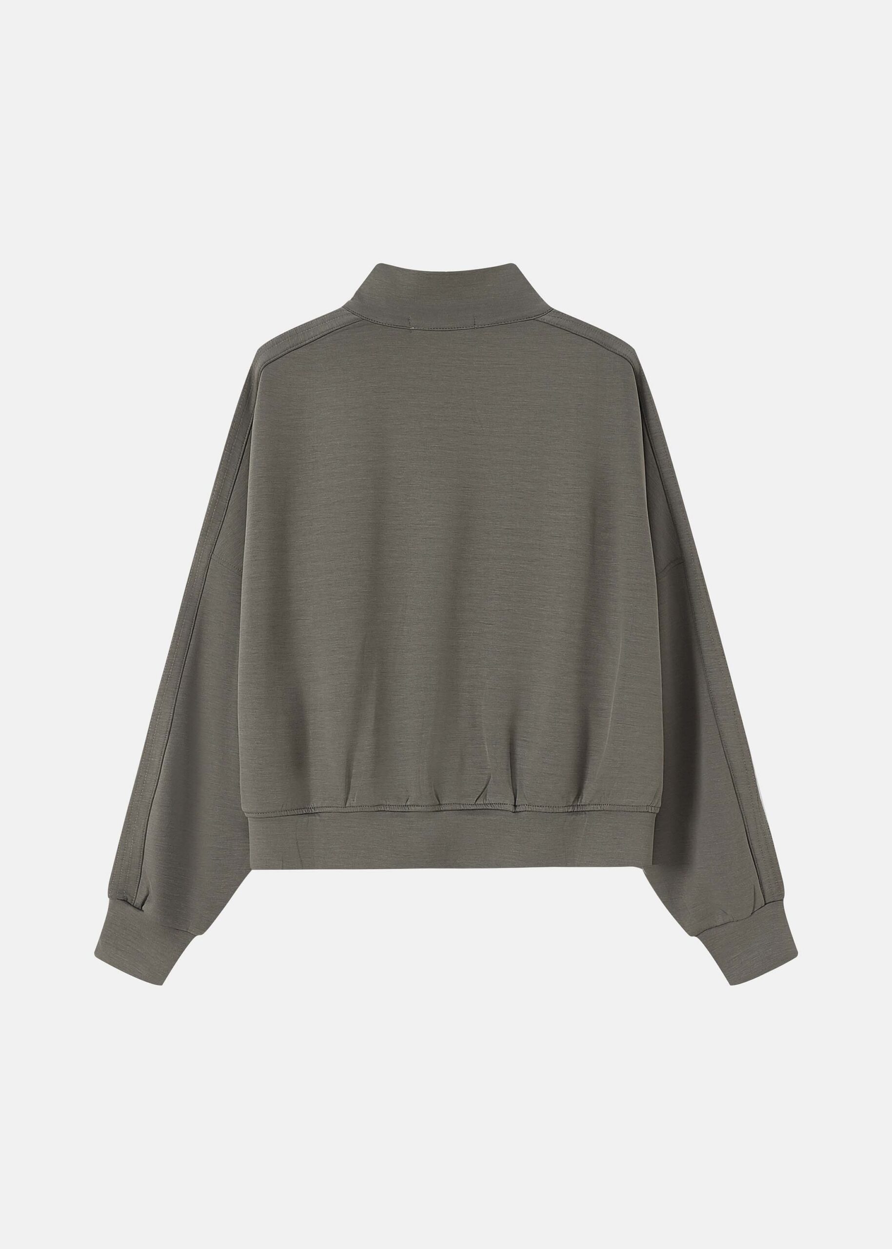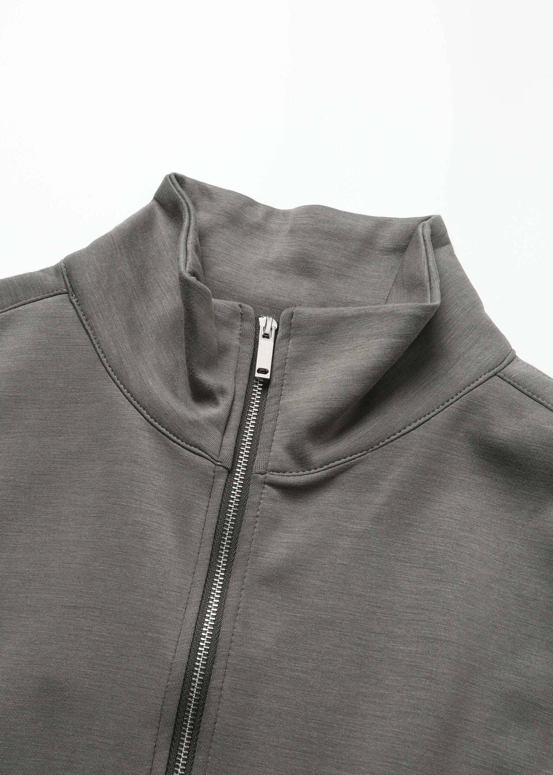 Women track jacket, scuba fabric, plain, stand collar, front zipper closure, long sleeves with tight cuff, front pockets, unique and practical