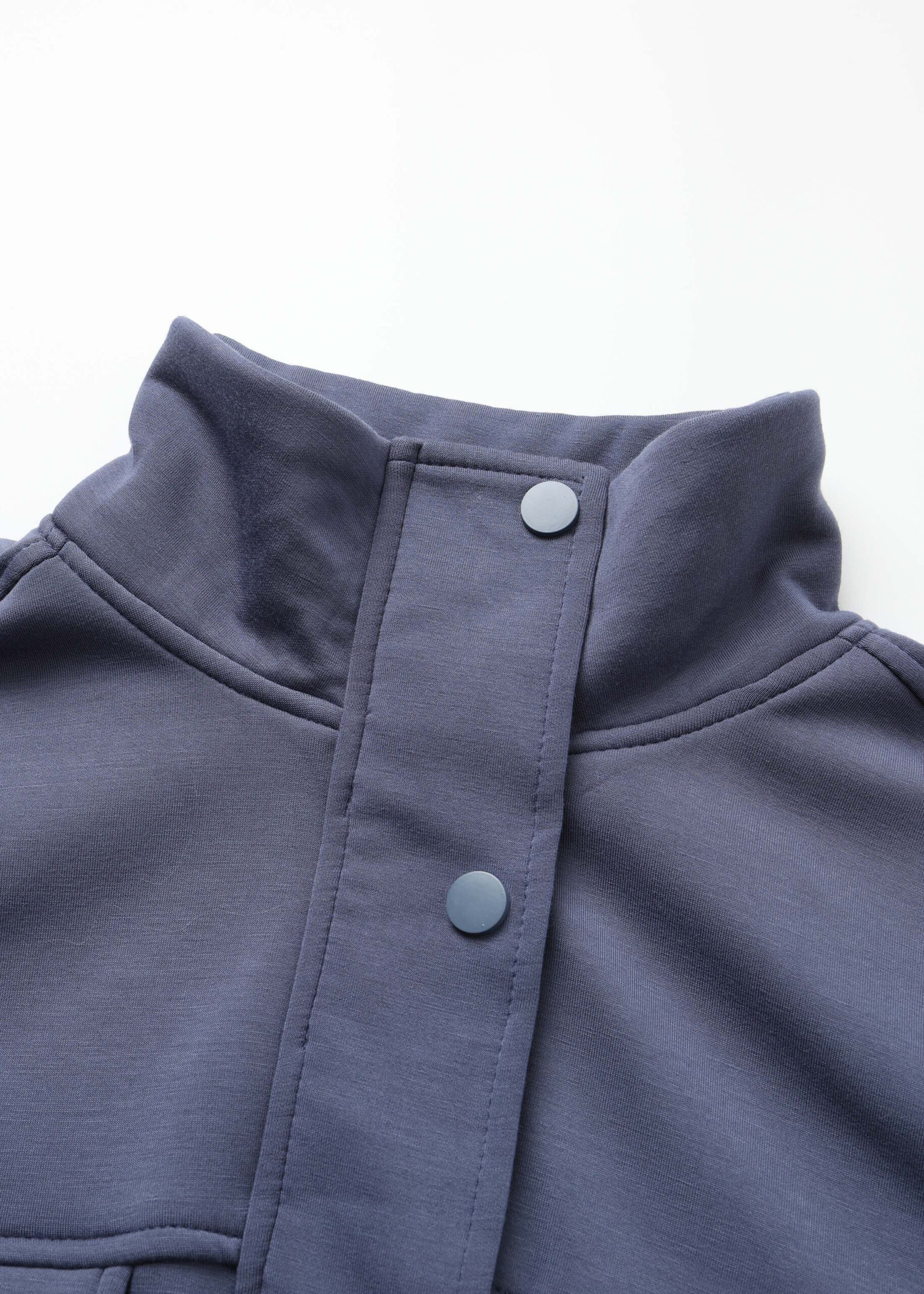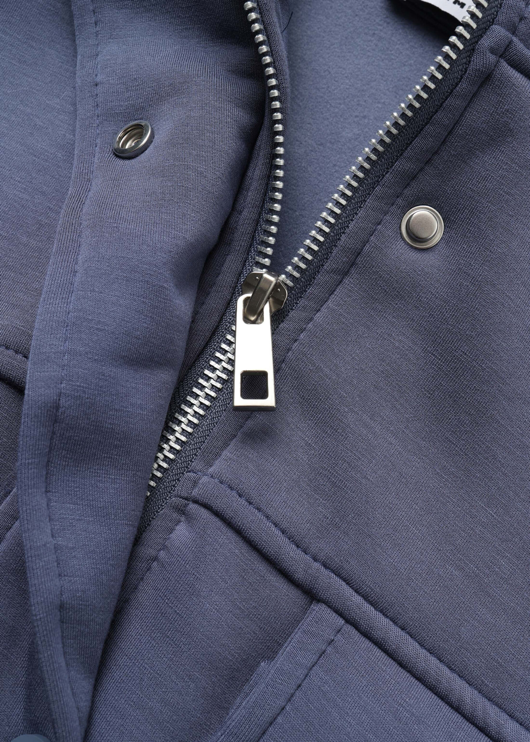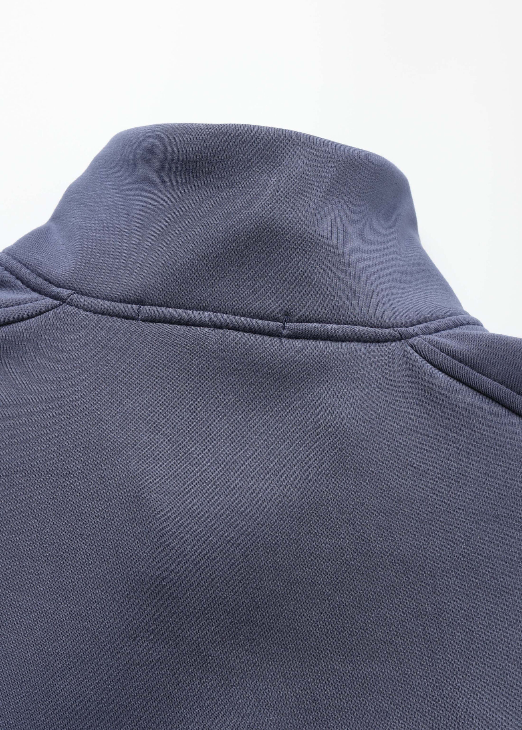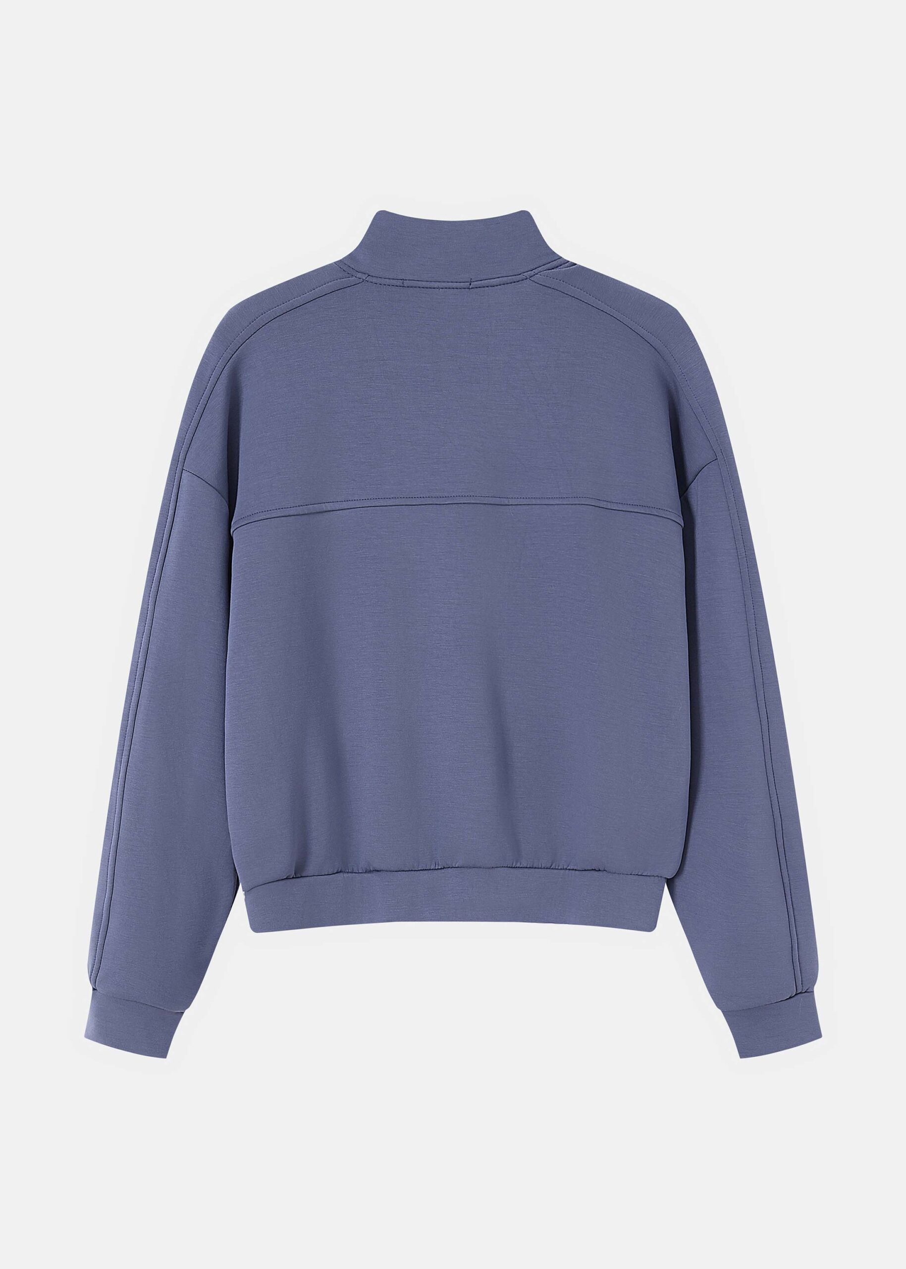 Women track jacket, scuba fabric, plain, stand collar, zipper closure with snap buttons from the front, long sleeves with tight cuff, front pockets, practical and comfortable