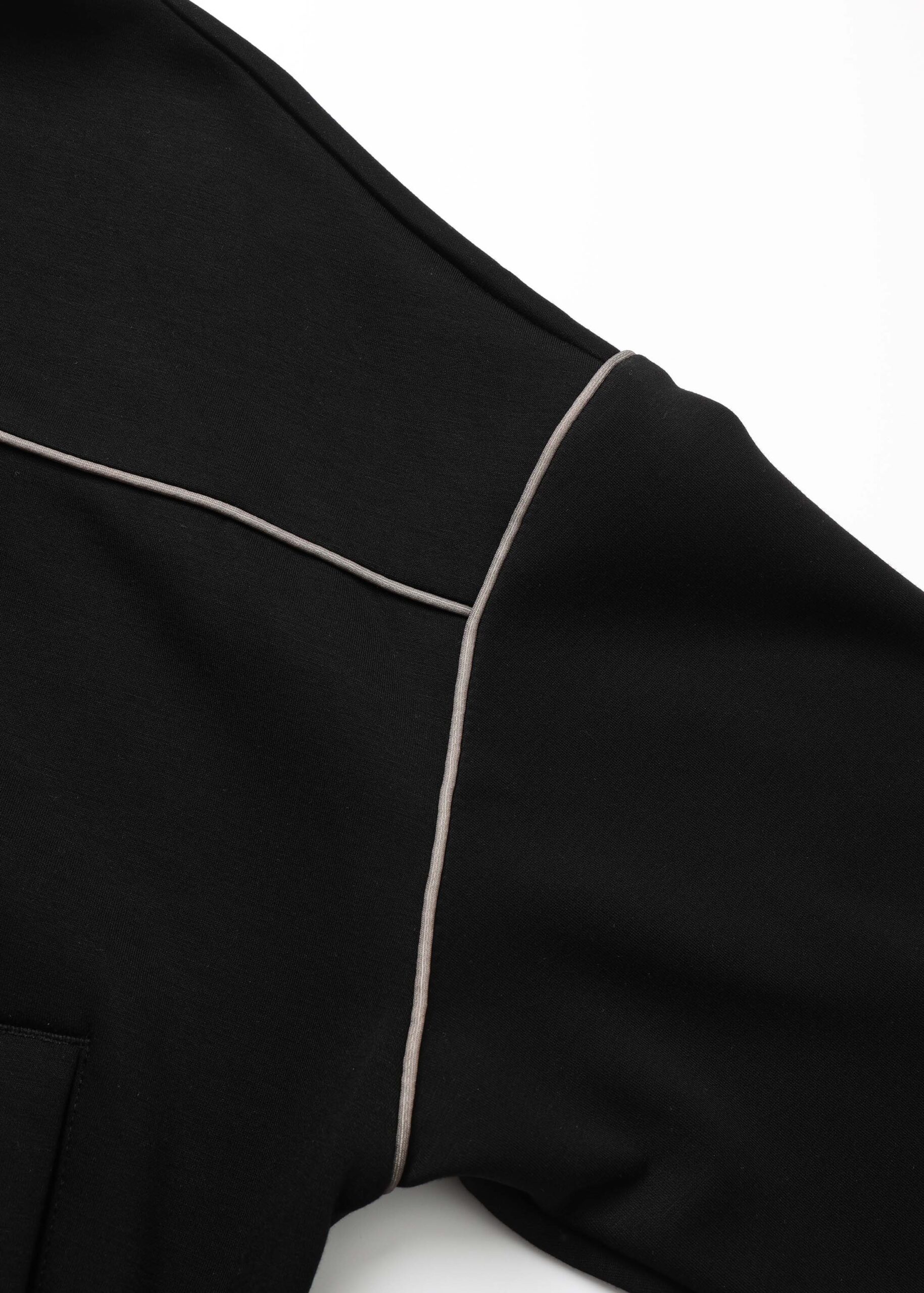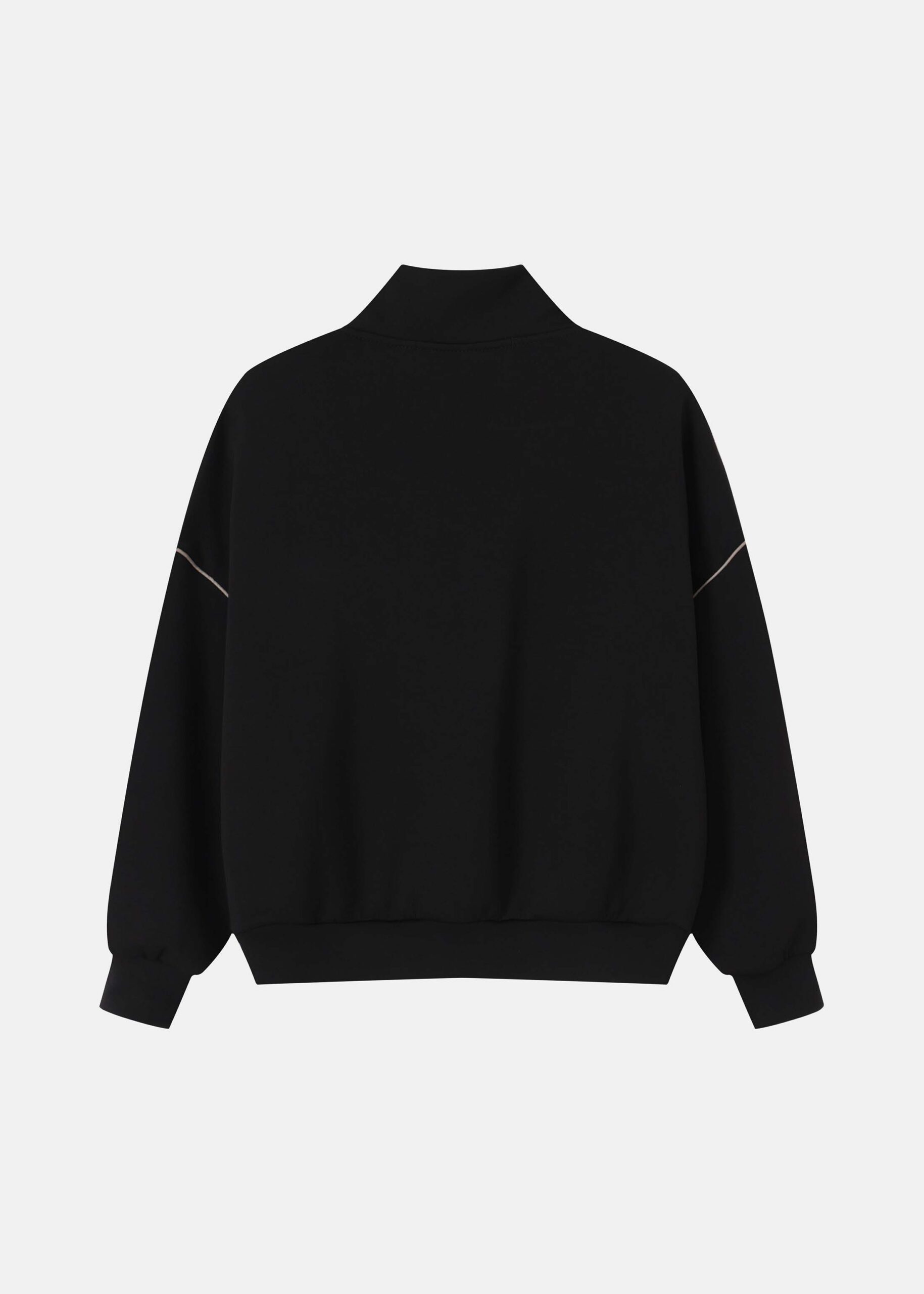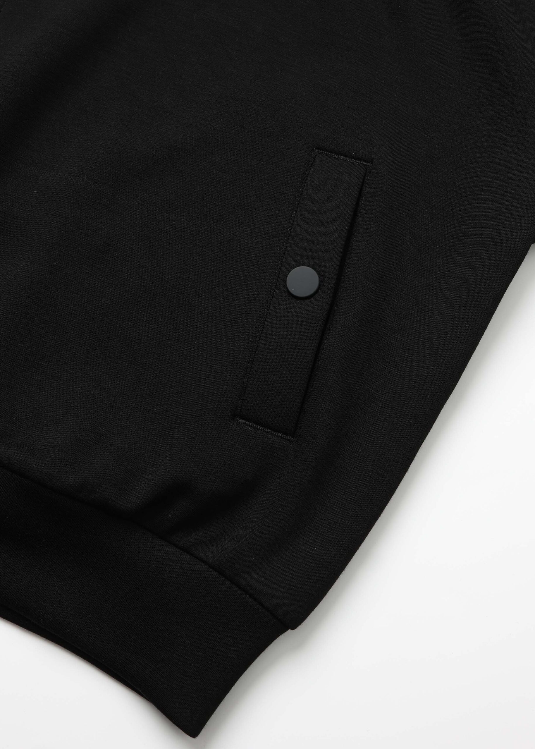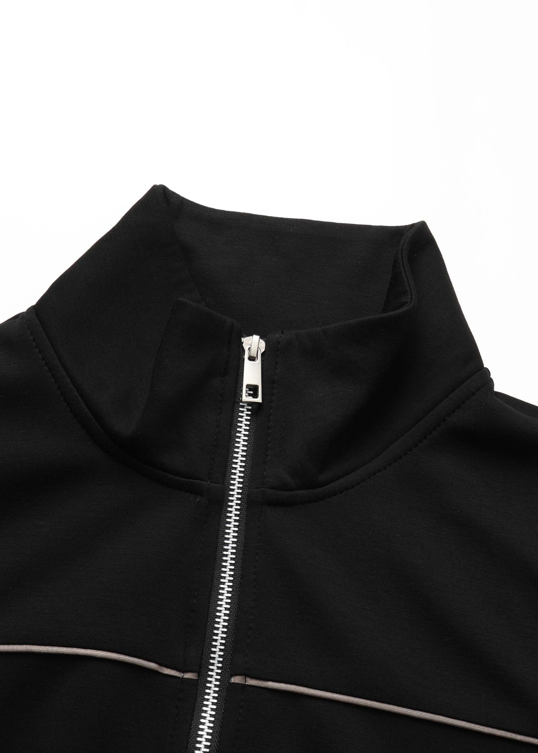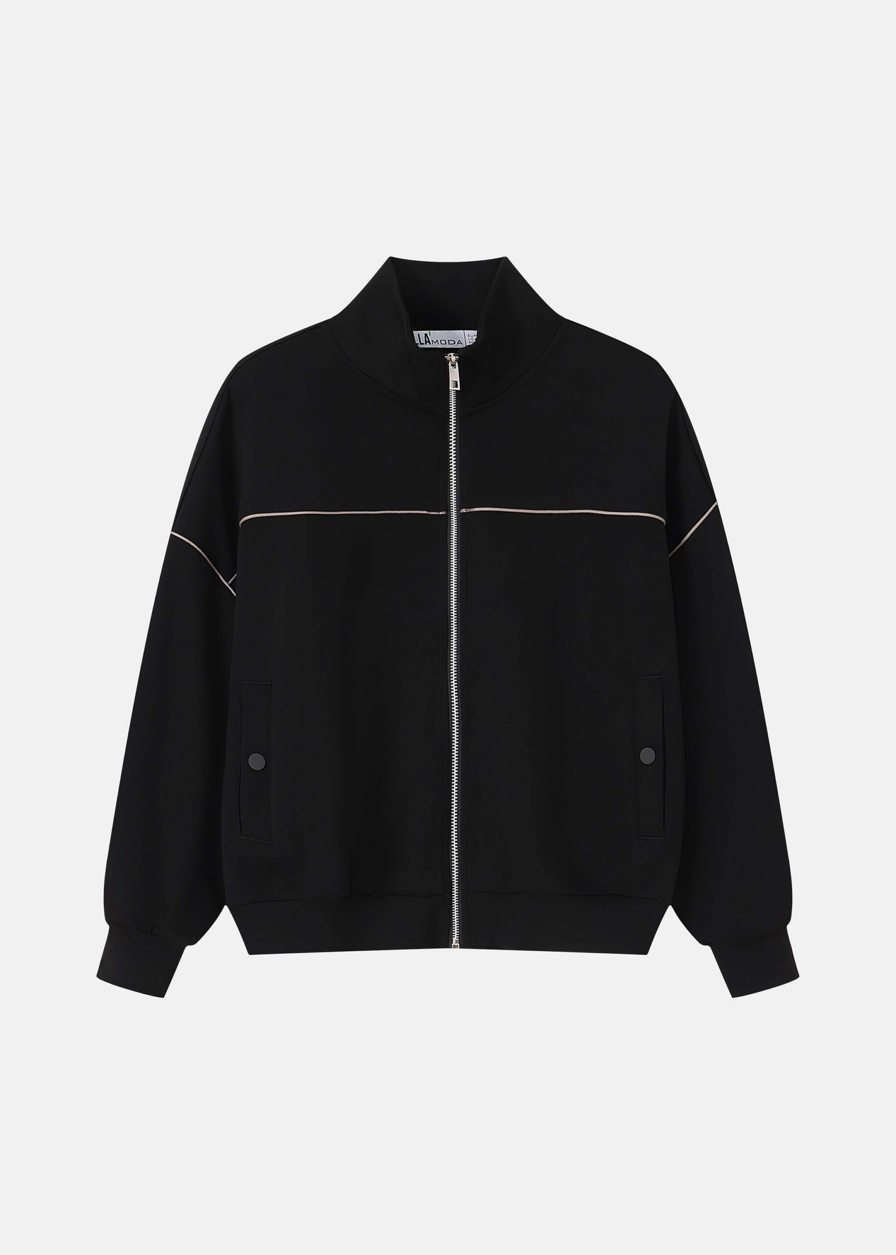 Women track jacket, scuba fabric, plain, stand collar, zipper closure, long sleeves with tight cuff, front buttons with snap buttons, unique and practical