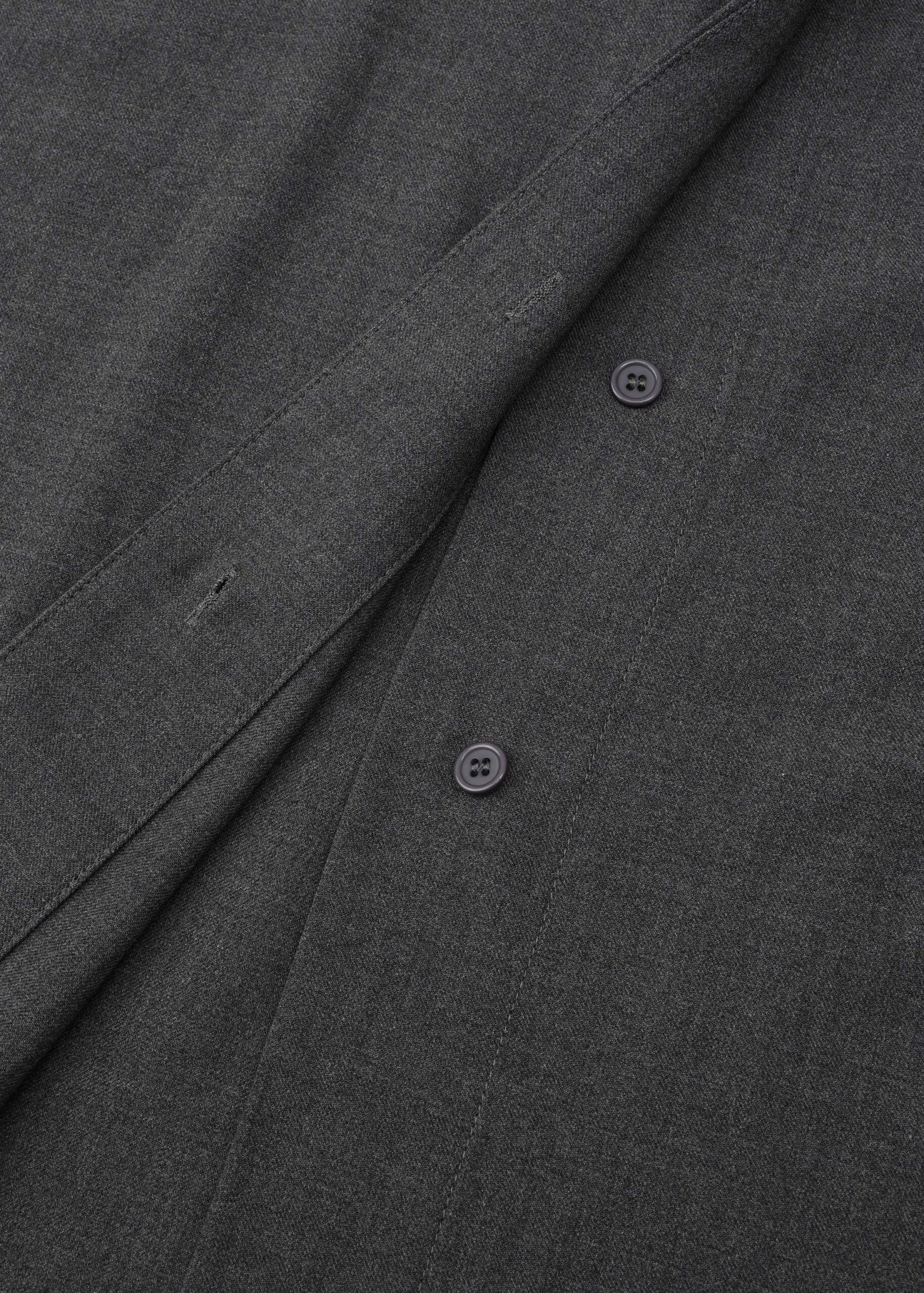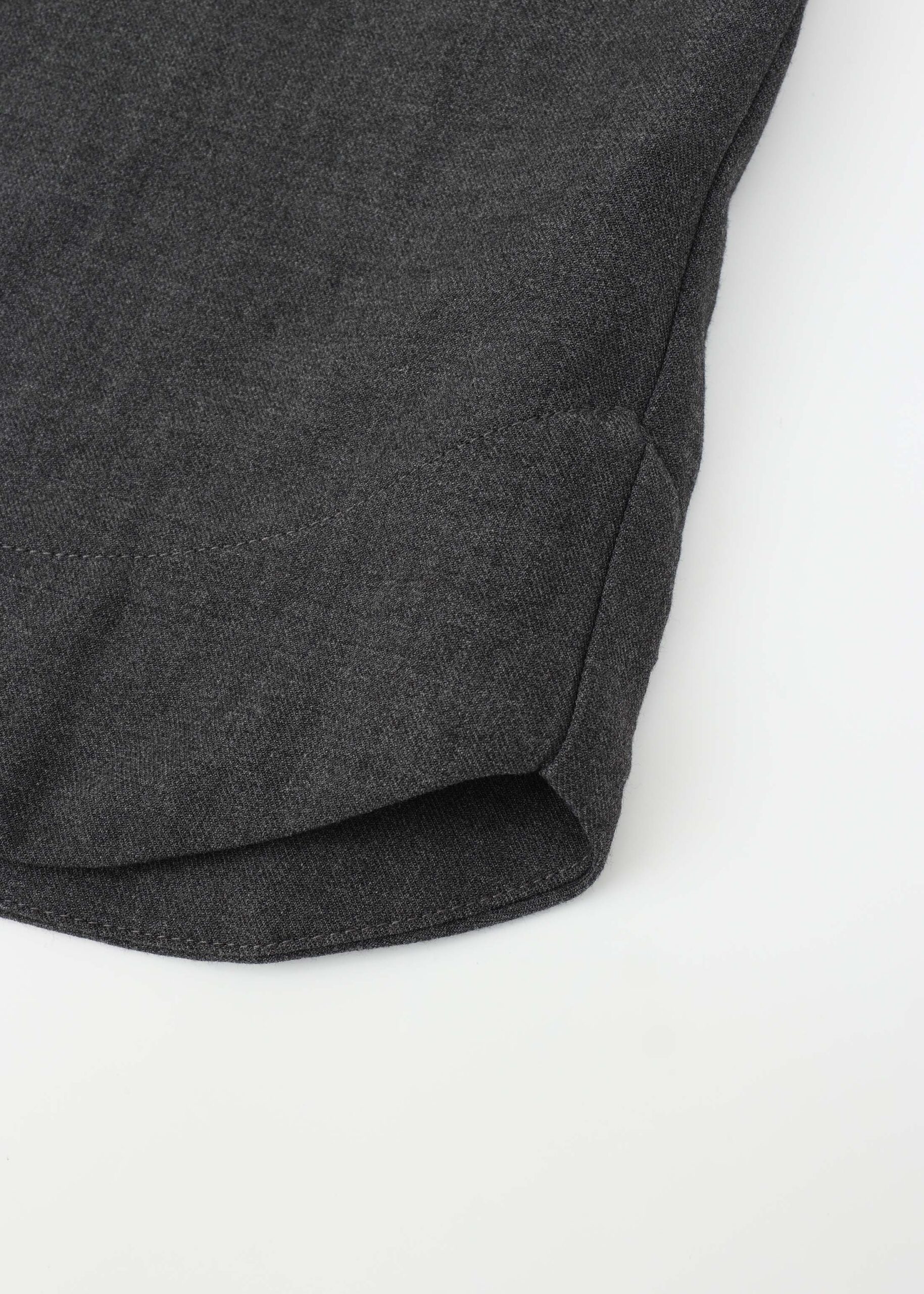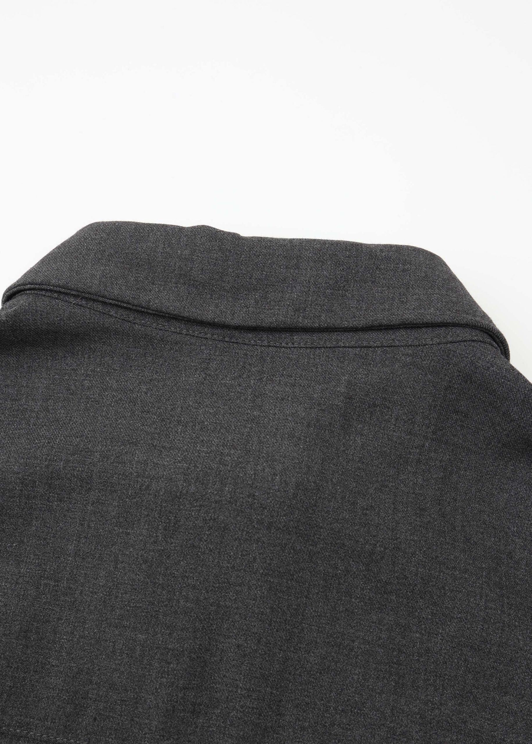 Women shirt, plain, rolled collar with front buttons, asymmetrically cut with front buttons to close, long sleeves, tight cuff with buttons, unique and practical