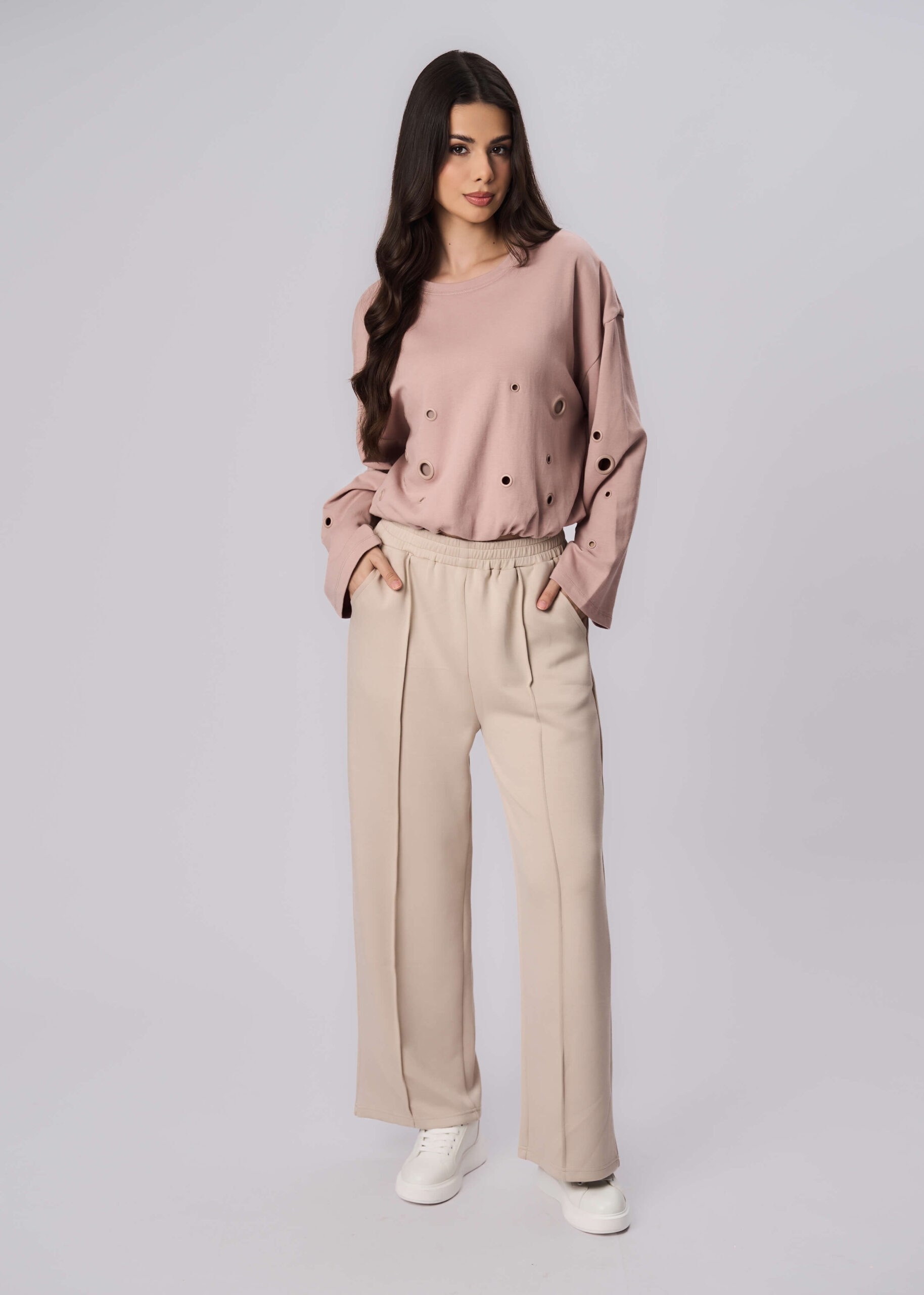Women trouser, plain, flow, elastic waist, front pockets, comfortable and practical
